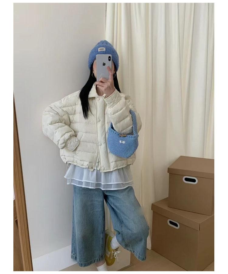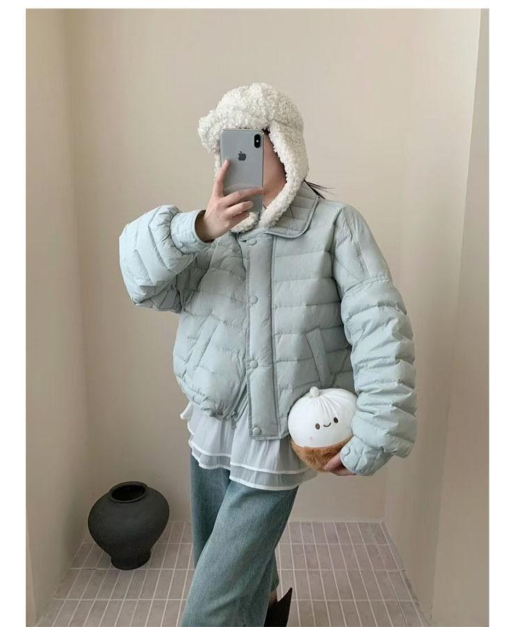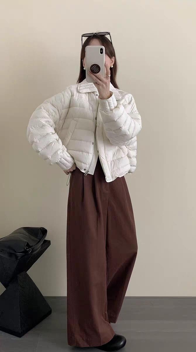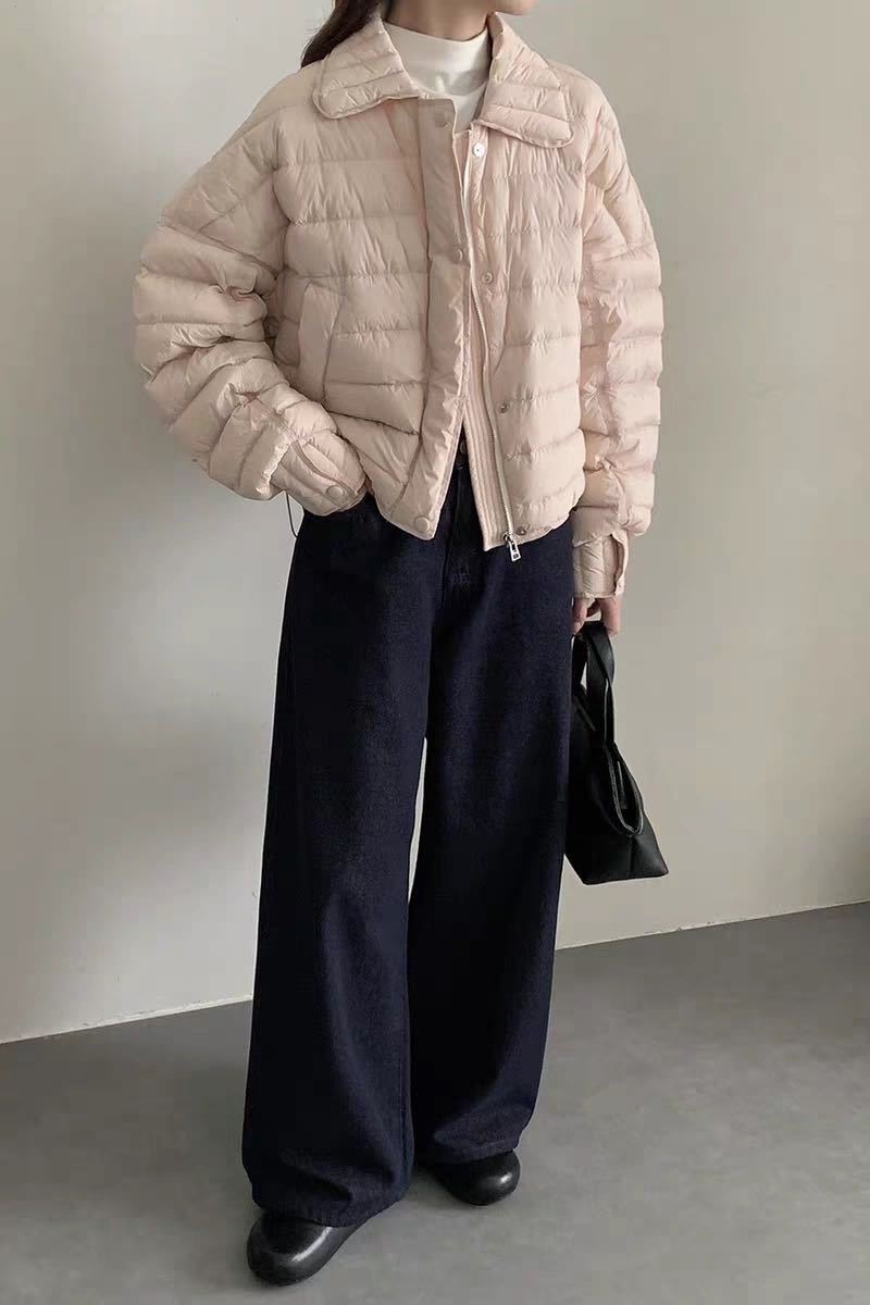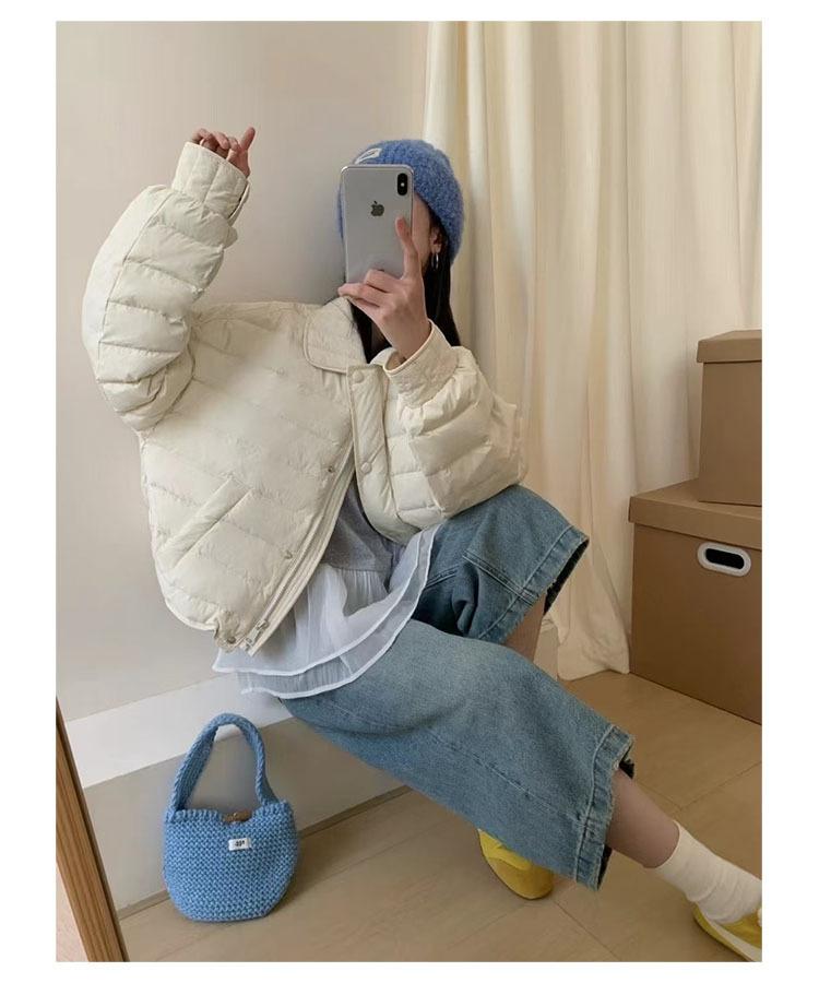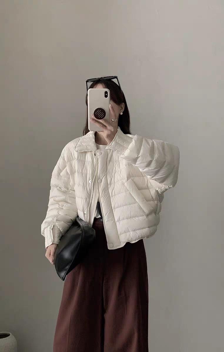 Cuello camisero 90 plumón de pato blanco chaqueta acolchada estilo camisa para mujer 2025 invierno nuevo diseño ligero y cálido sentido de la moda top casual