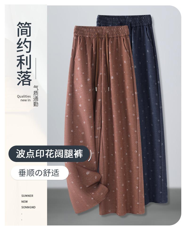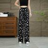 Pantalones Florales de Pierna Ancha Mujer 2025 Otoño Nuevo Cintura Alta Drapeados Sueltos Adelgazantes Estampado de Lunares Pantalones Casuales Pierna Recta