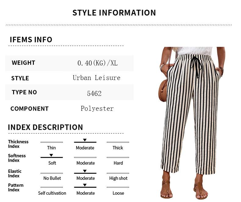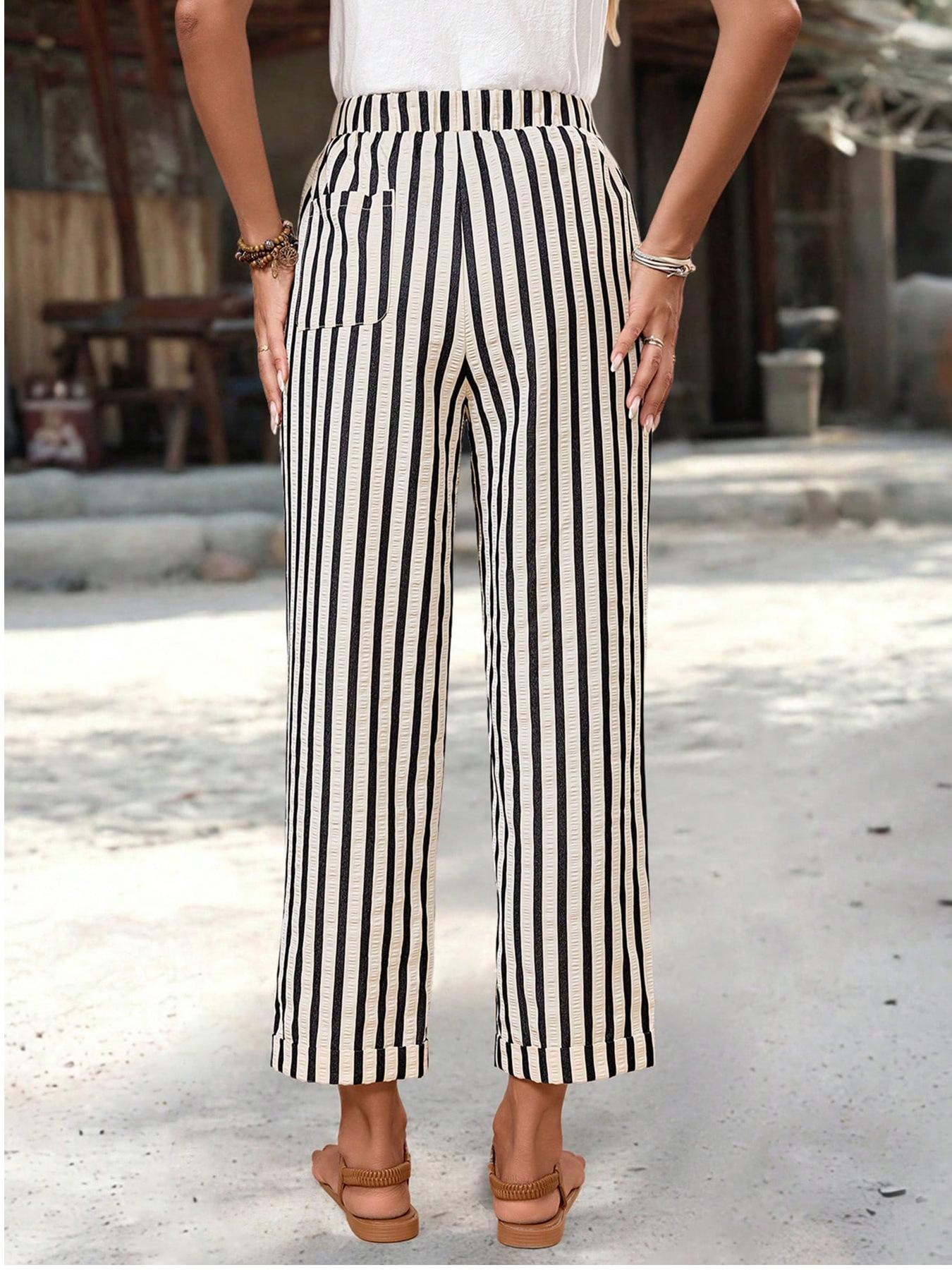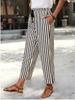 Pantalones Casuales para Mujer 2025 Nuevos Pantalones de Pierna Recta Versátiles Adelgazantes Plisados Bloque de Color Rayados Cintura Elástica Pantalones Recortados