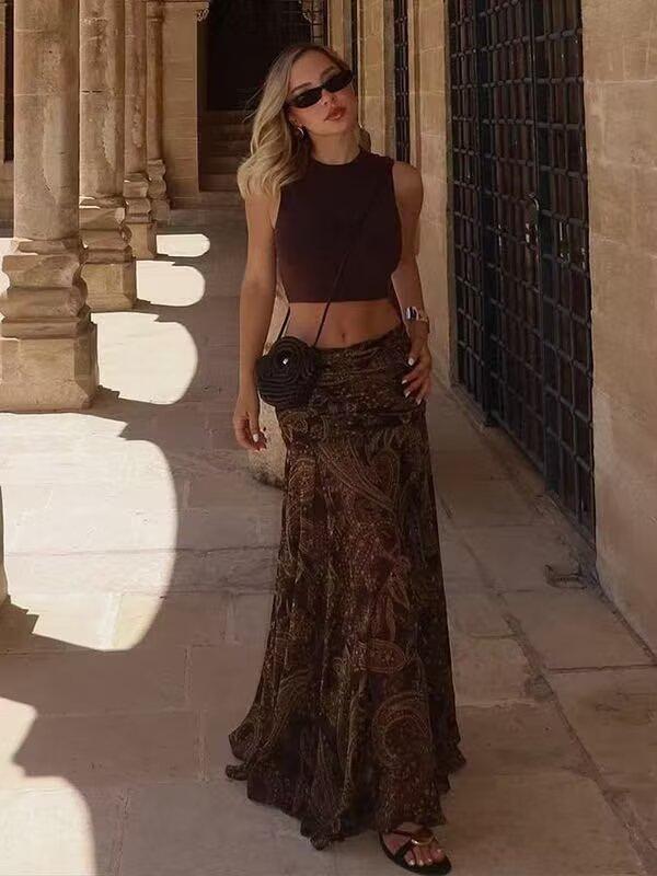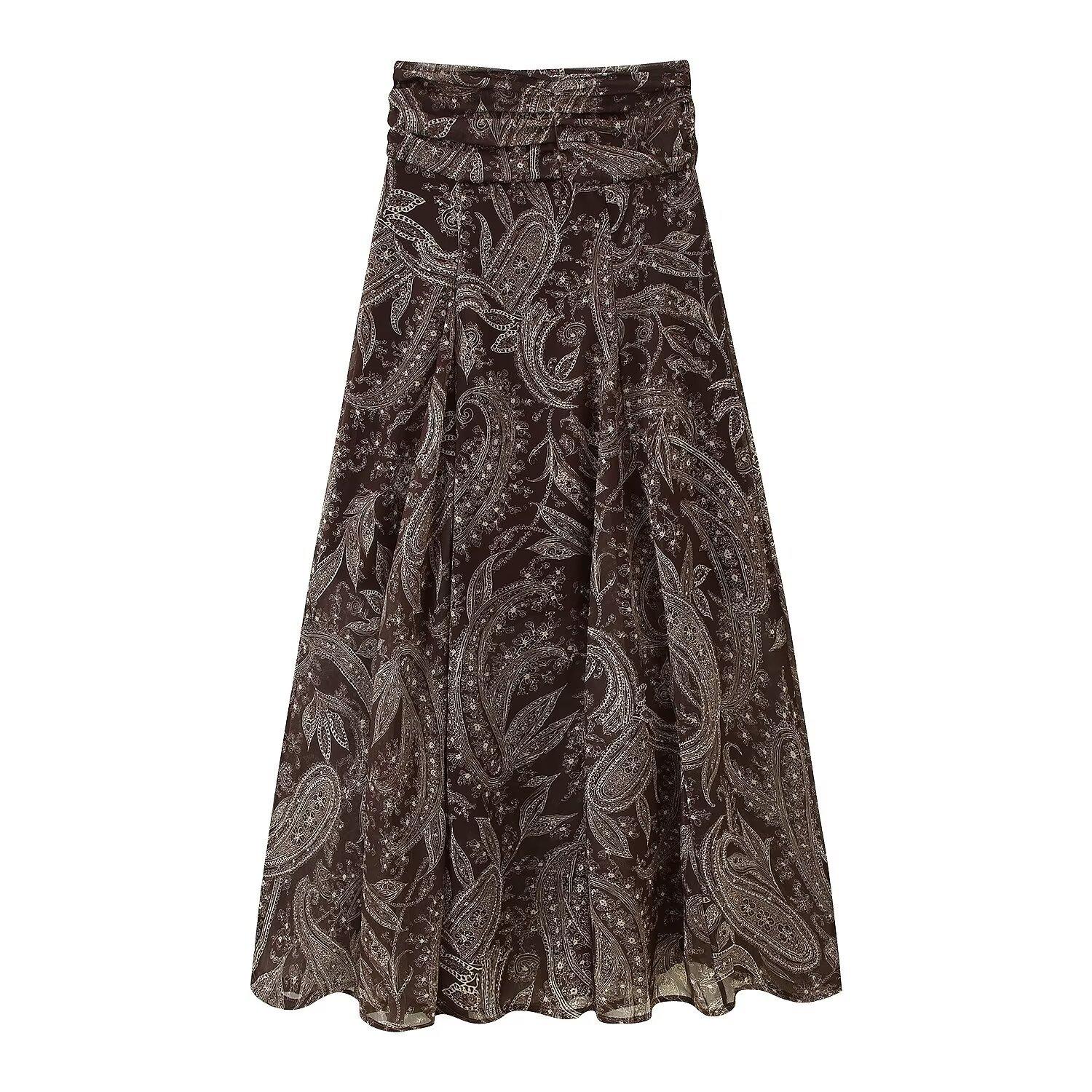 Moda femenina europea y americana transfronteriza AliExpress INS estilo caliente temperamento retro falda midi estampada ajustada de cintura alta