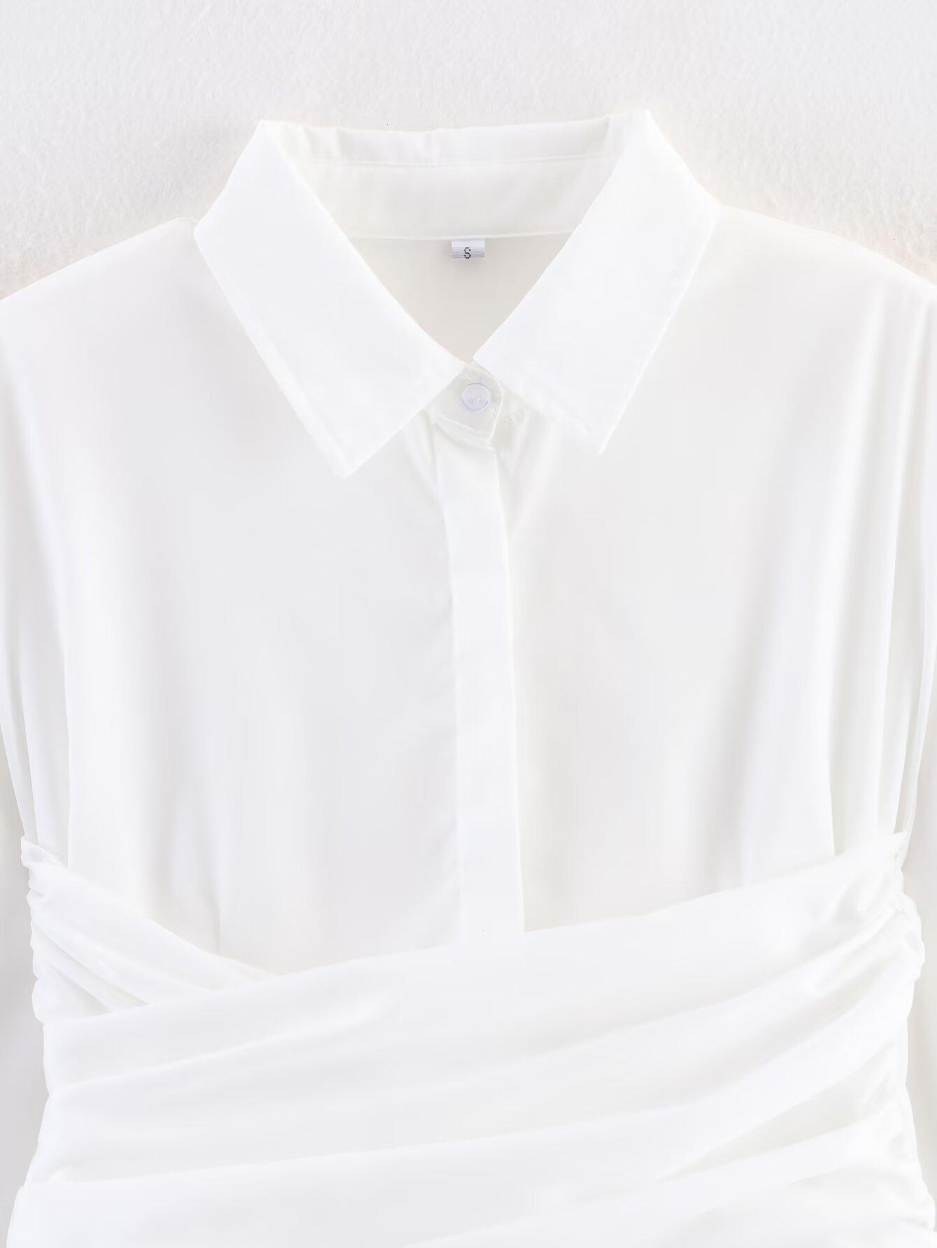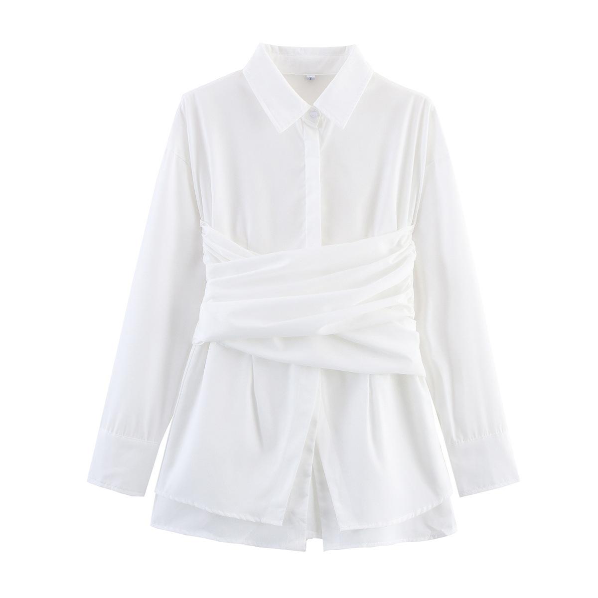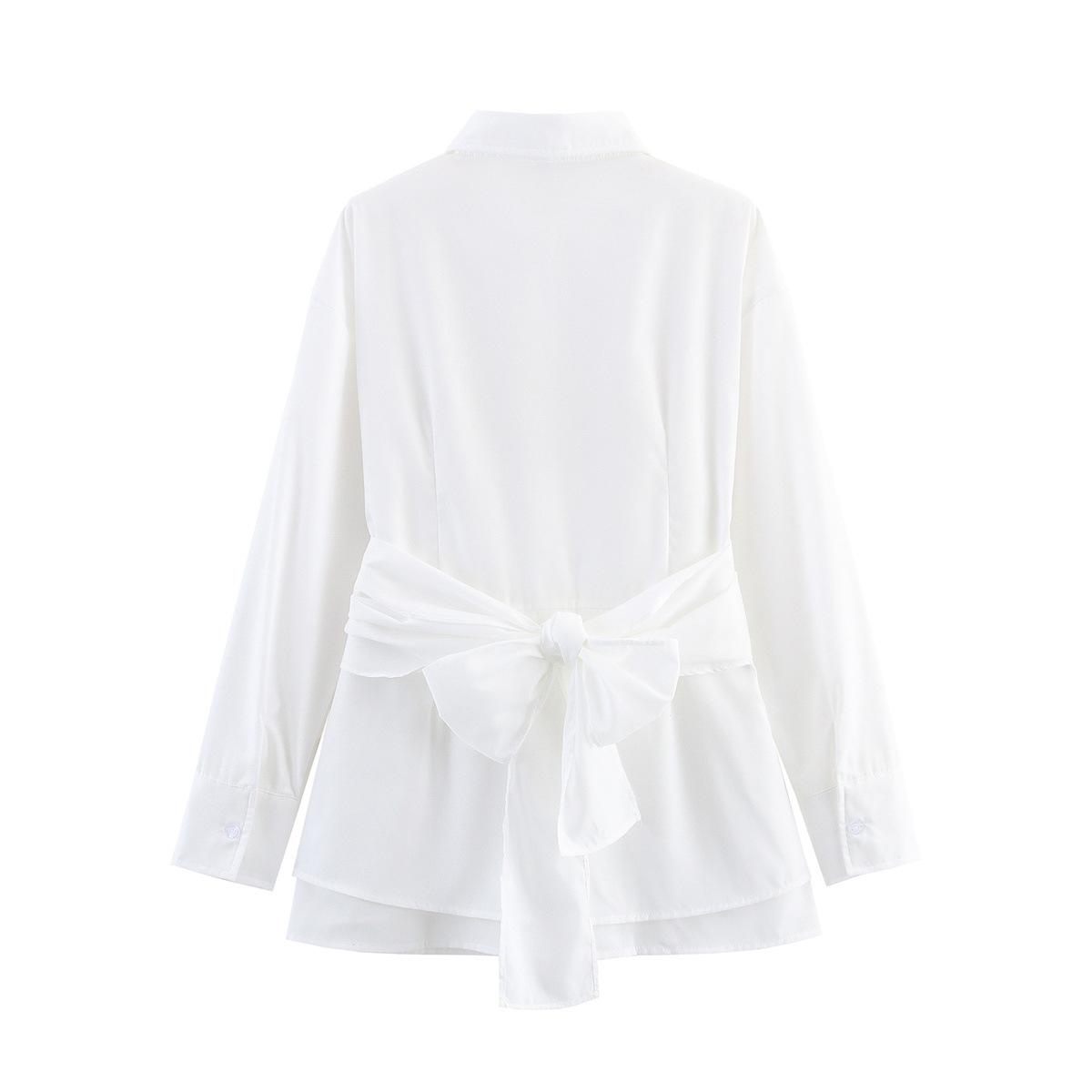 Z Estilo Europeo y Americano Transfronterizo 2025 Nueva Moda Temperamento Mujeres Venta al por Mayor Camisa Fruncida con Cordones de Color Sólido Camisa Falsa de Dos Piezas