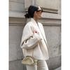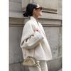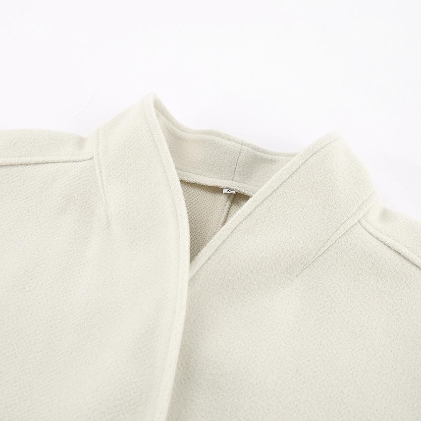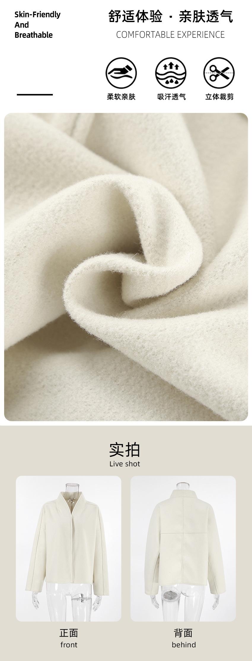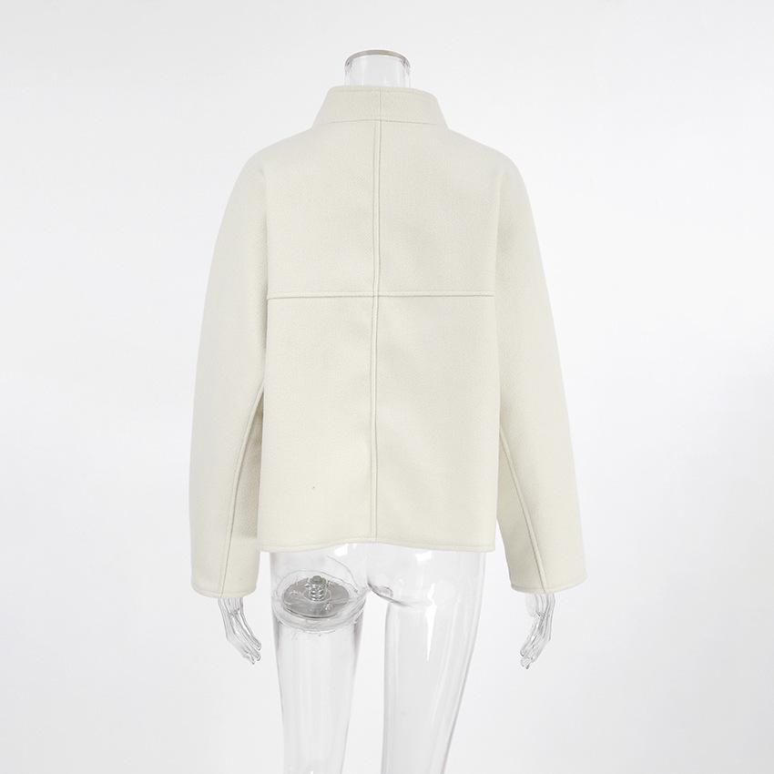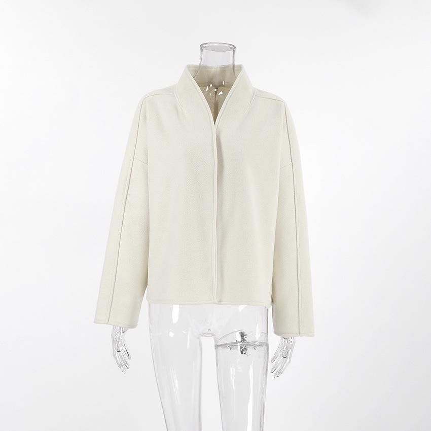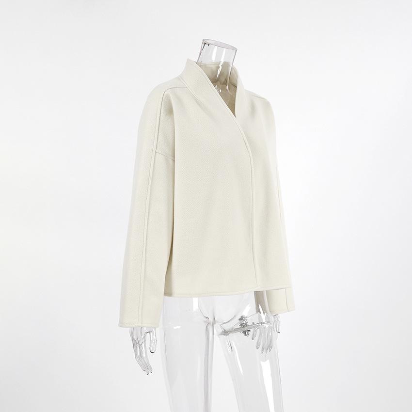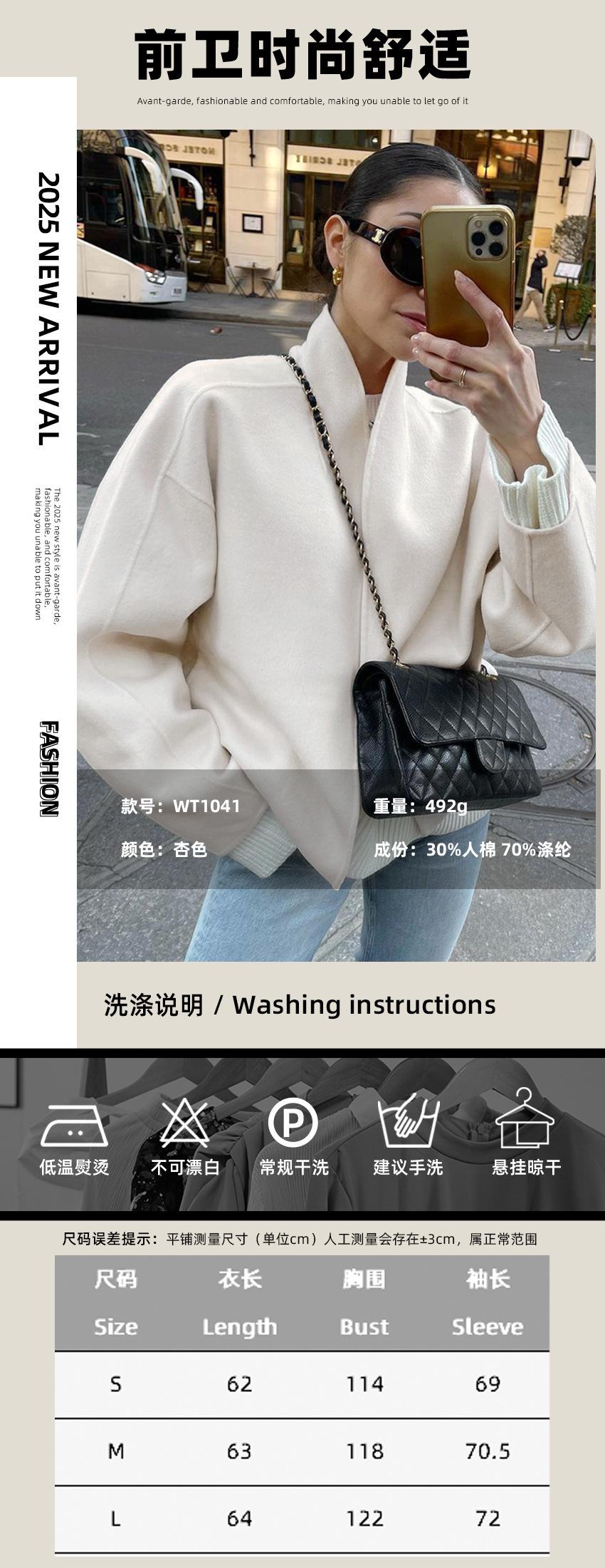 Abrigo de lana albaricoque de moda europea y americana transfronteriza para mujer 2025 otoño e invierno chaqueta holgada con cuello en V top ropa de mujer al por mayor