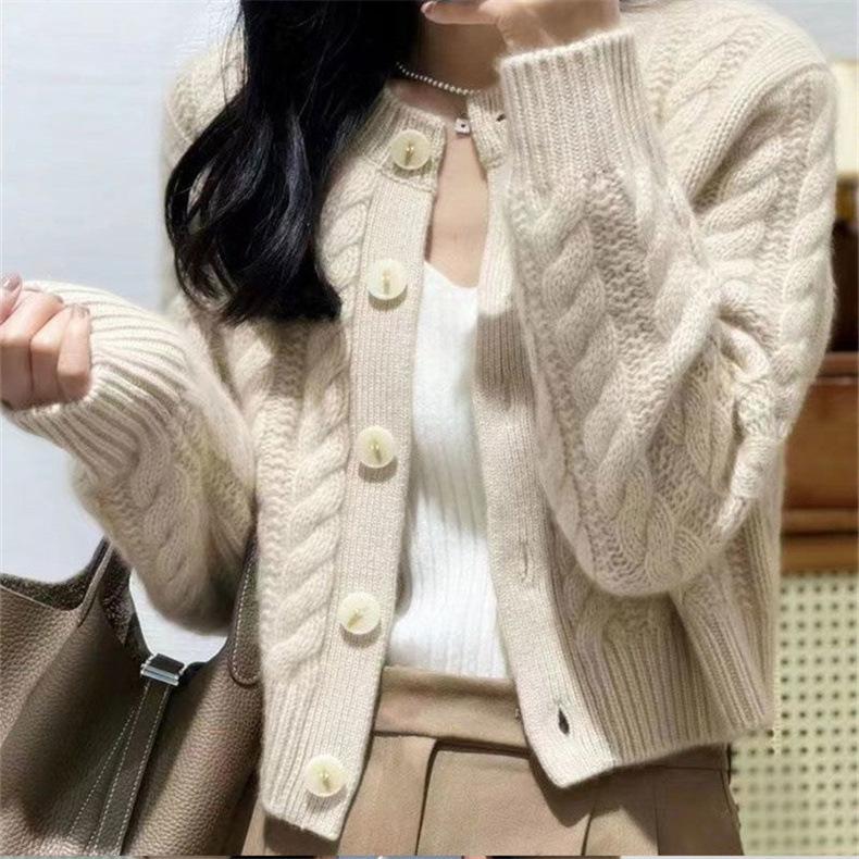 Abrigo Cárdigan Corto Holgazán Mujer Invierno Retro Nuevo Diseño Trenzado Suave Dama Cálido Suéter Tejido