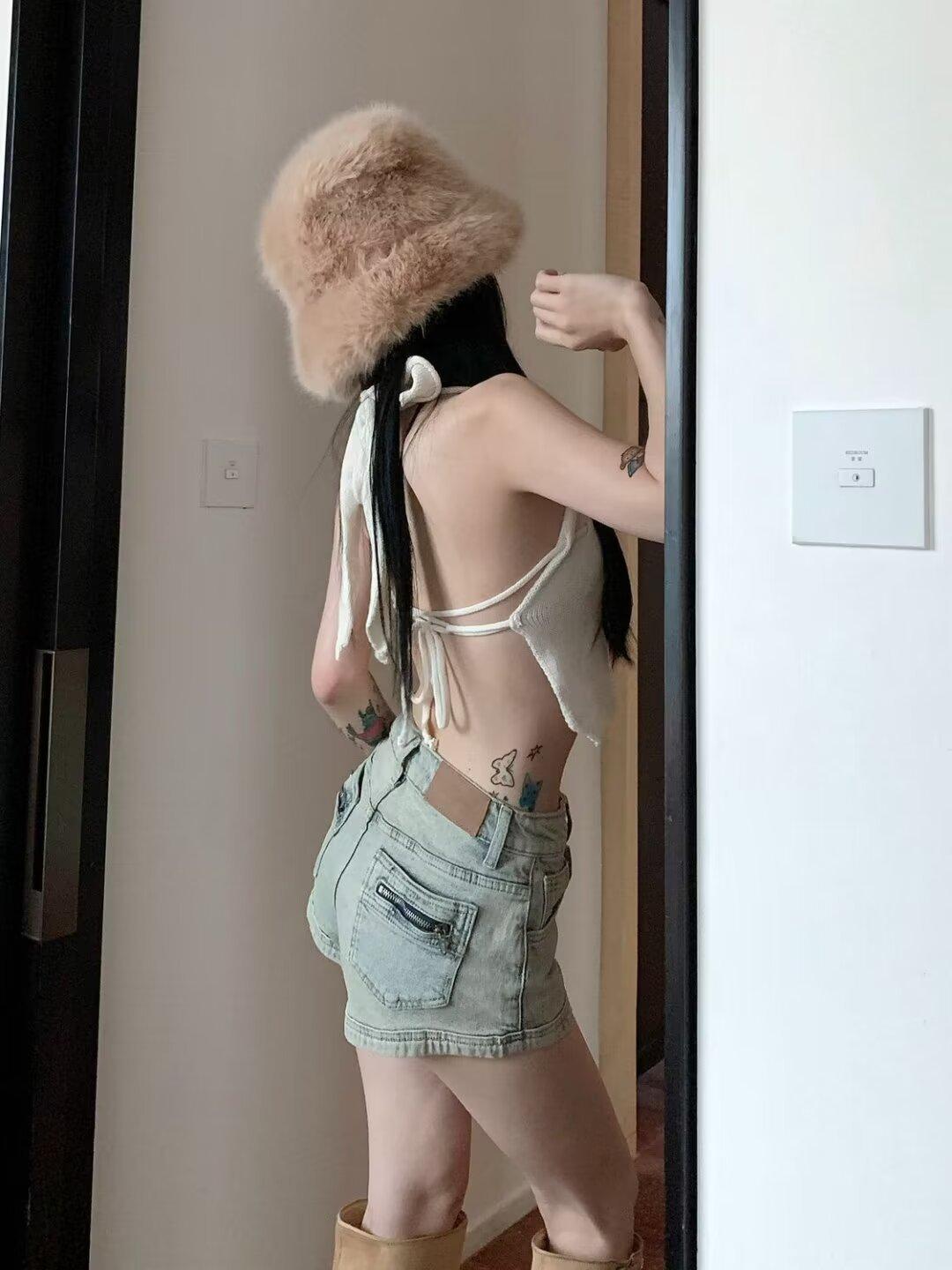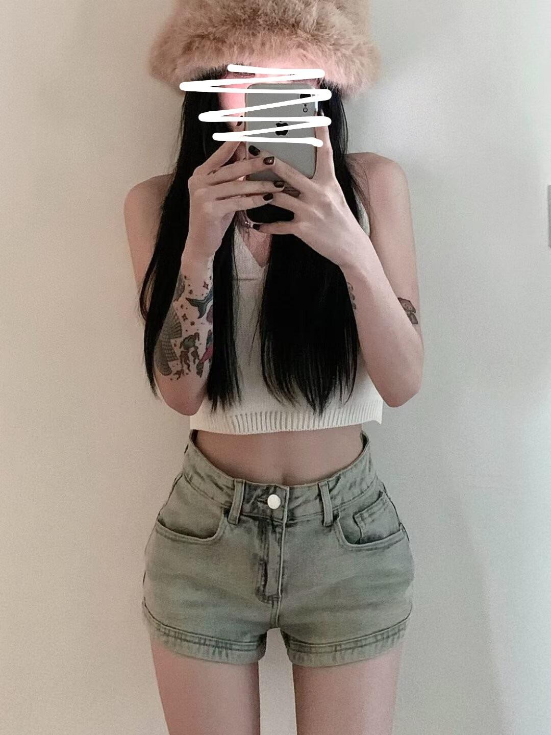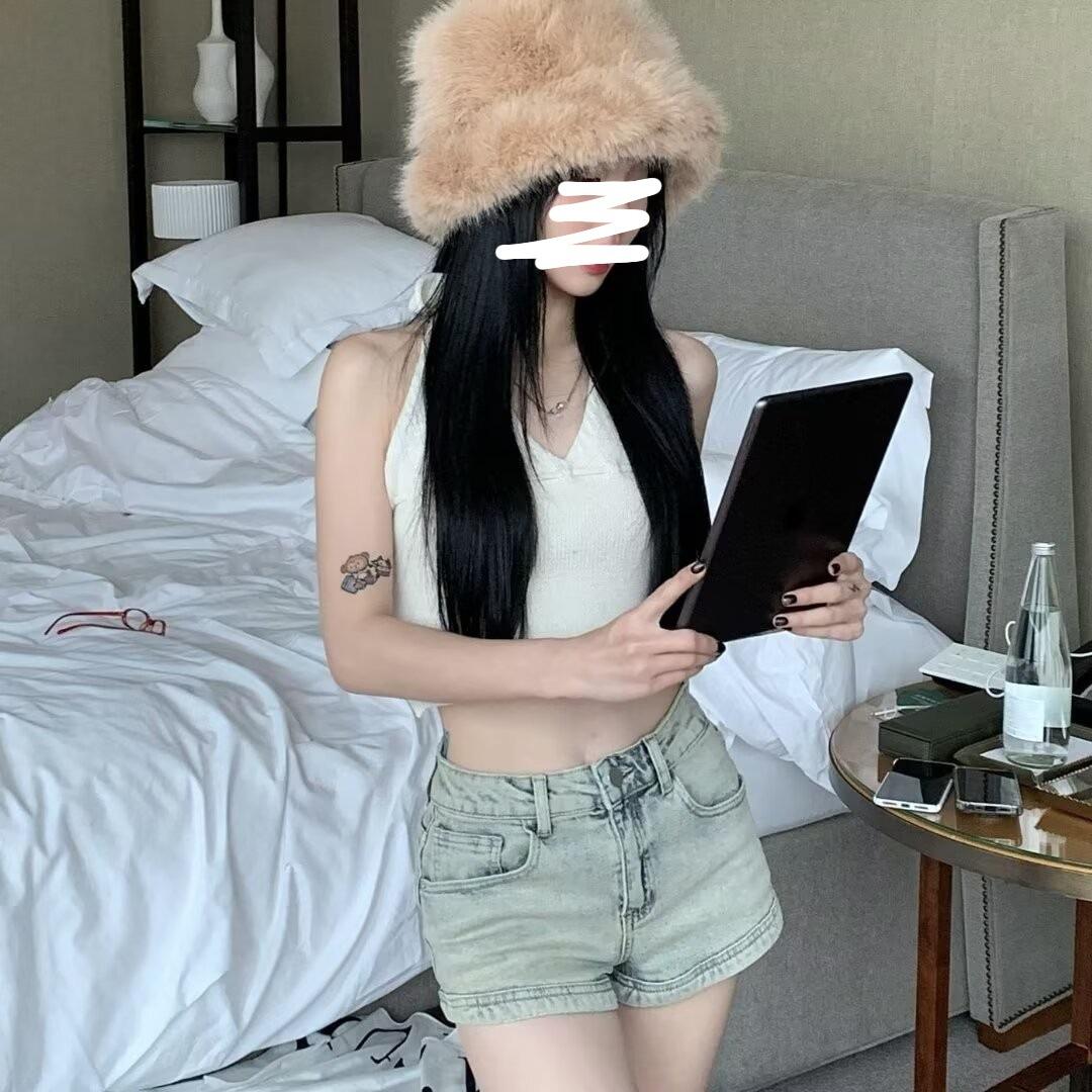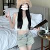 Shorts de mezclilla de línea A adelgazantes de cintura alta estilo retro americano color barro amarillo para mujer, verano, delgados, pantalones cortos calientes con estiramiento caliente en el brazo