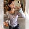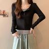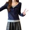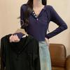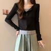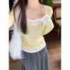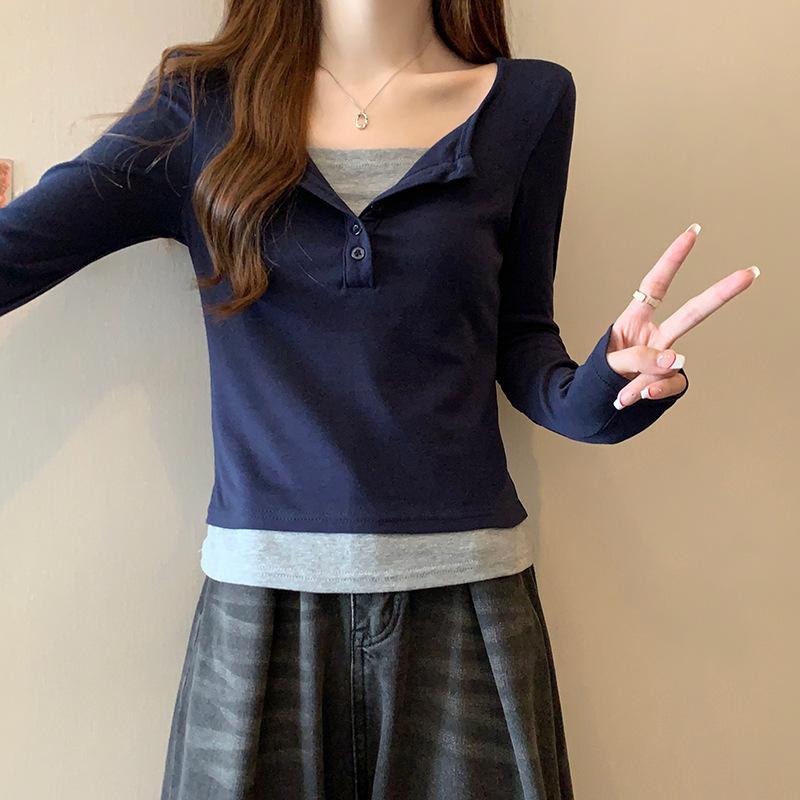 Camiseta de manga larga de dos piezas falsas para mujer principios de otoño 2025 nuevo estilo camisa base interior ajuste ceñido absolutamente hermosa top corto dulce y picante