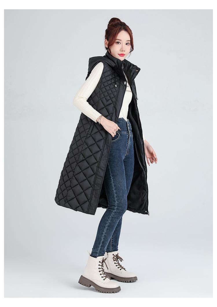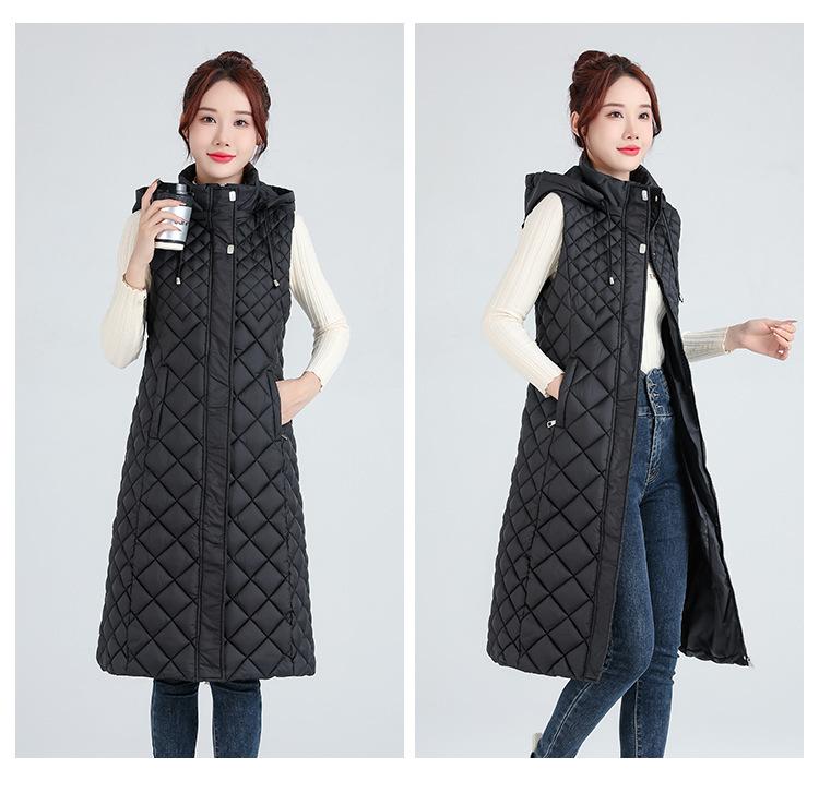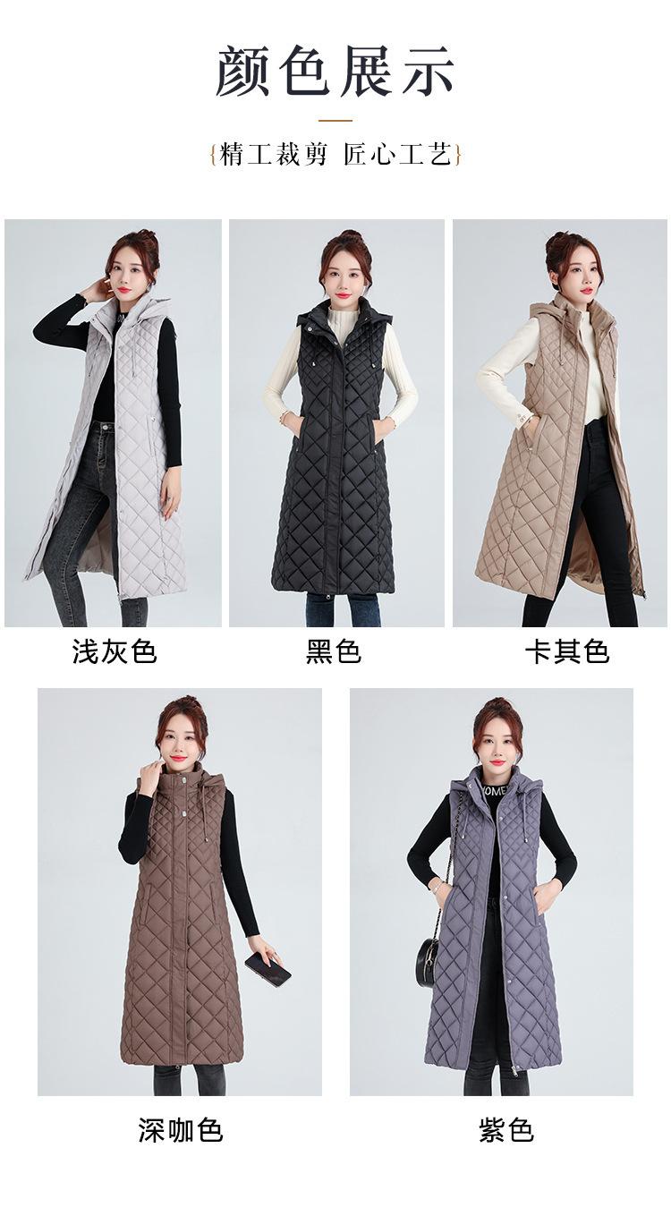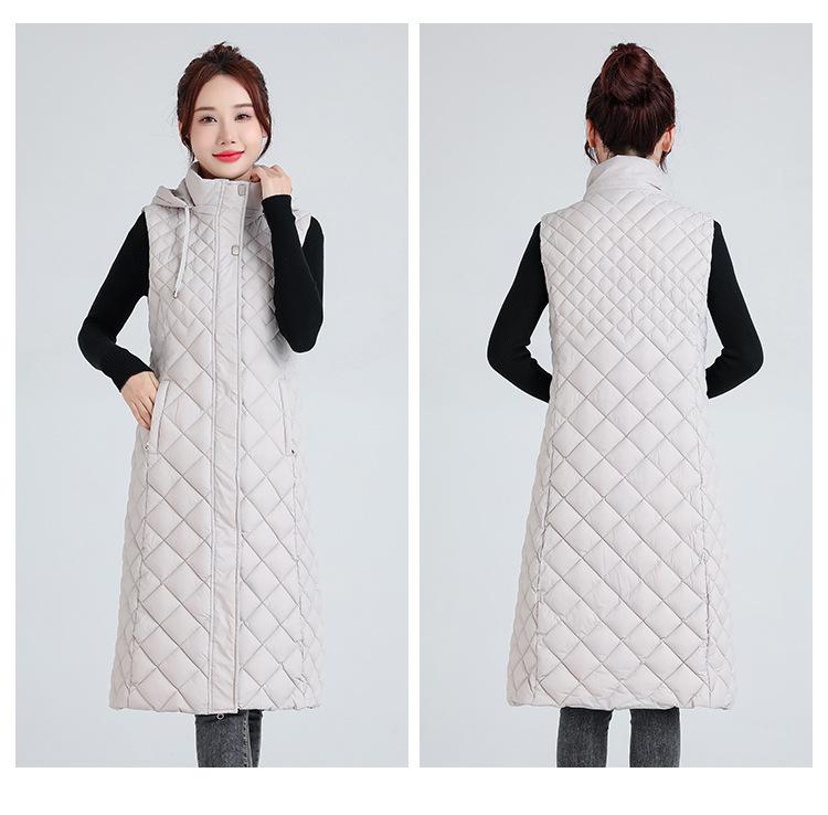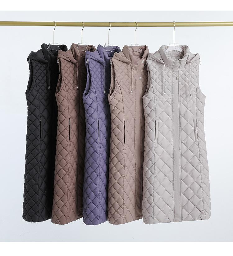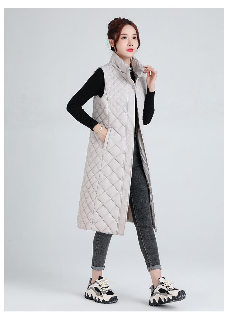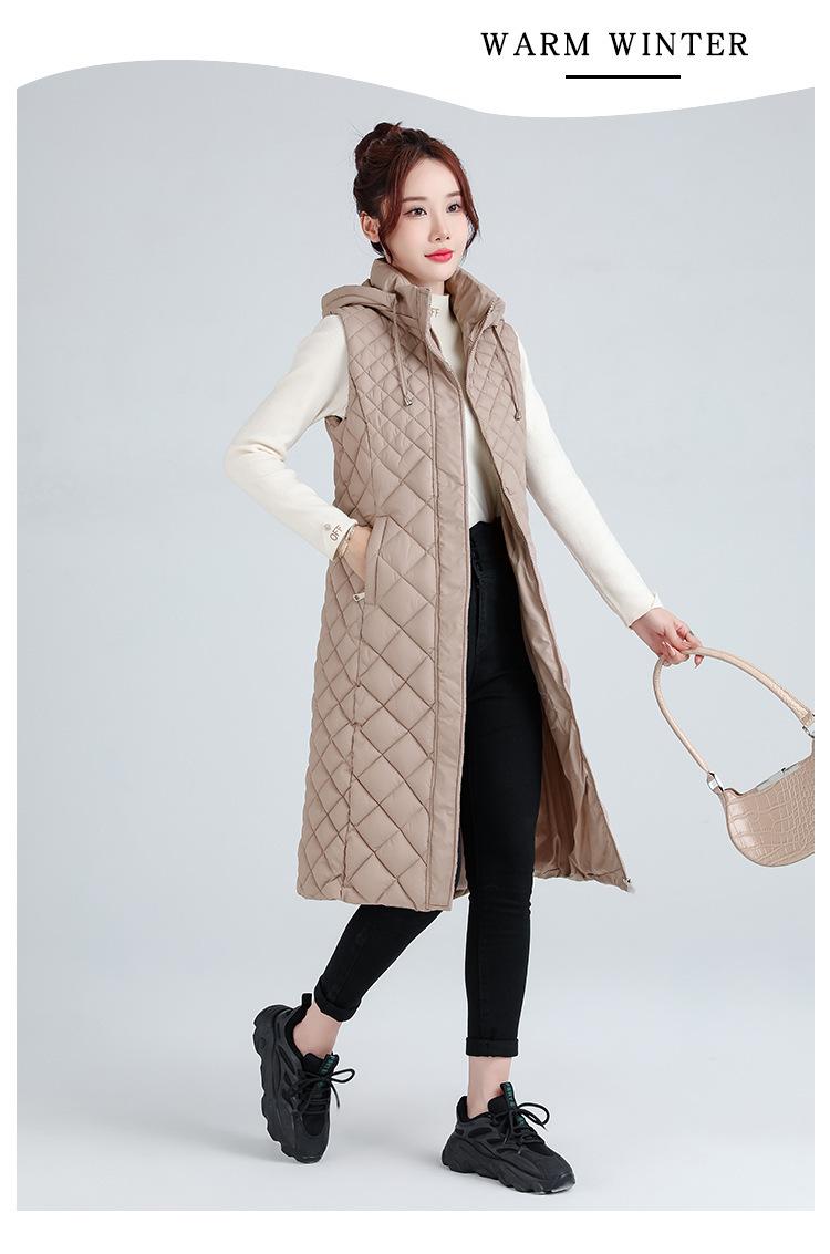 2024 Nueva Moda Versátil Chaleco de Algodón Acolchado Chaleco Largo de Algodón Ajustado Ropa Exterior Chaleco de Algodón sin Mangas