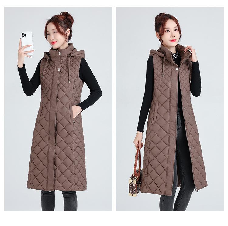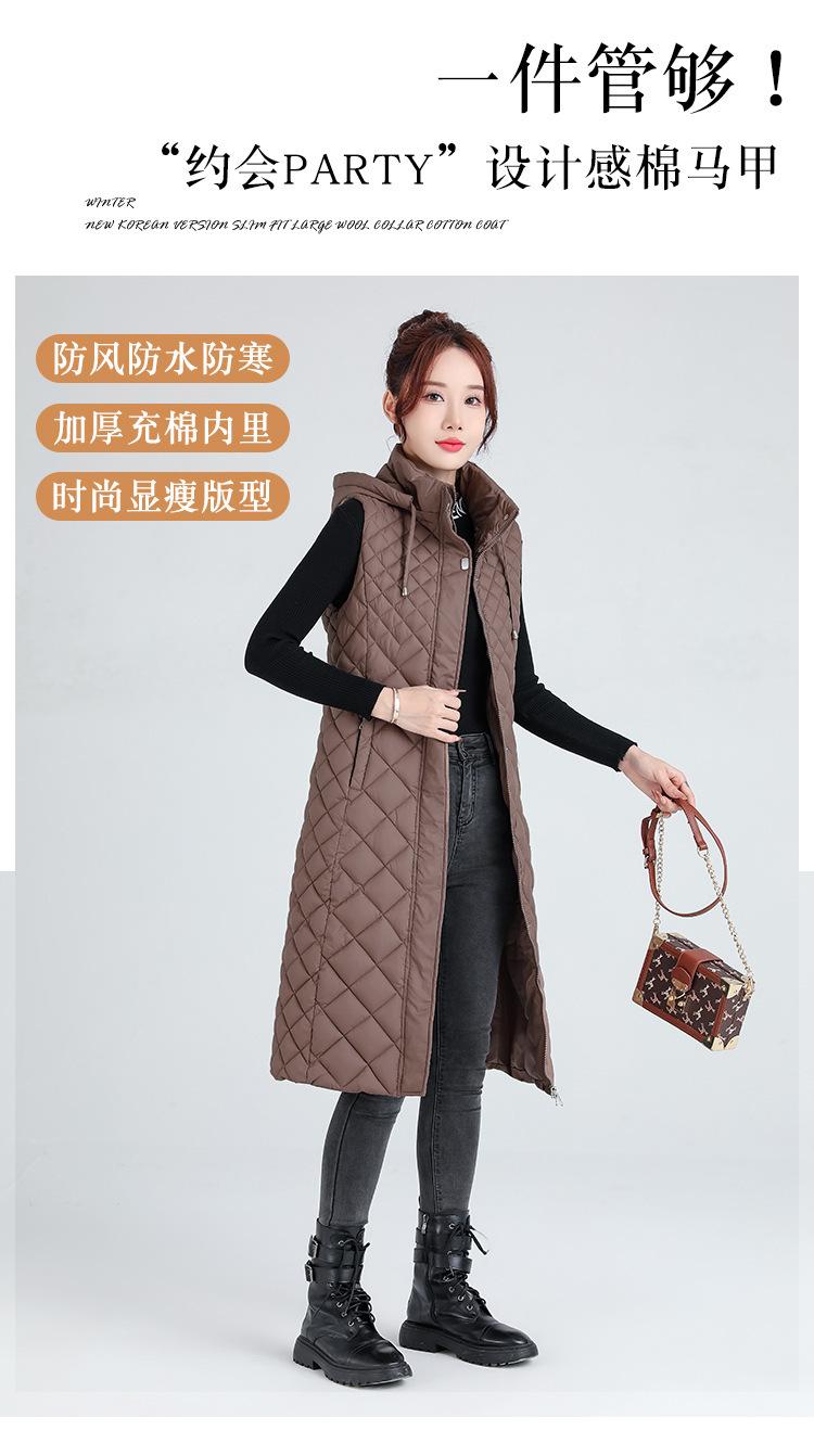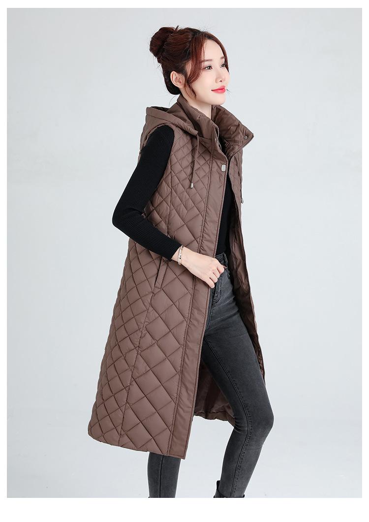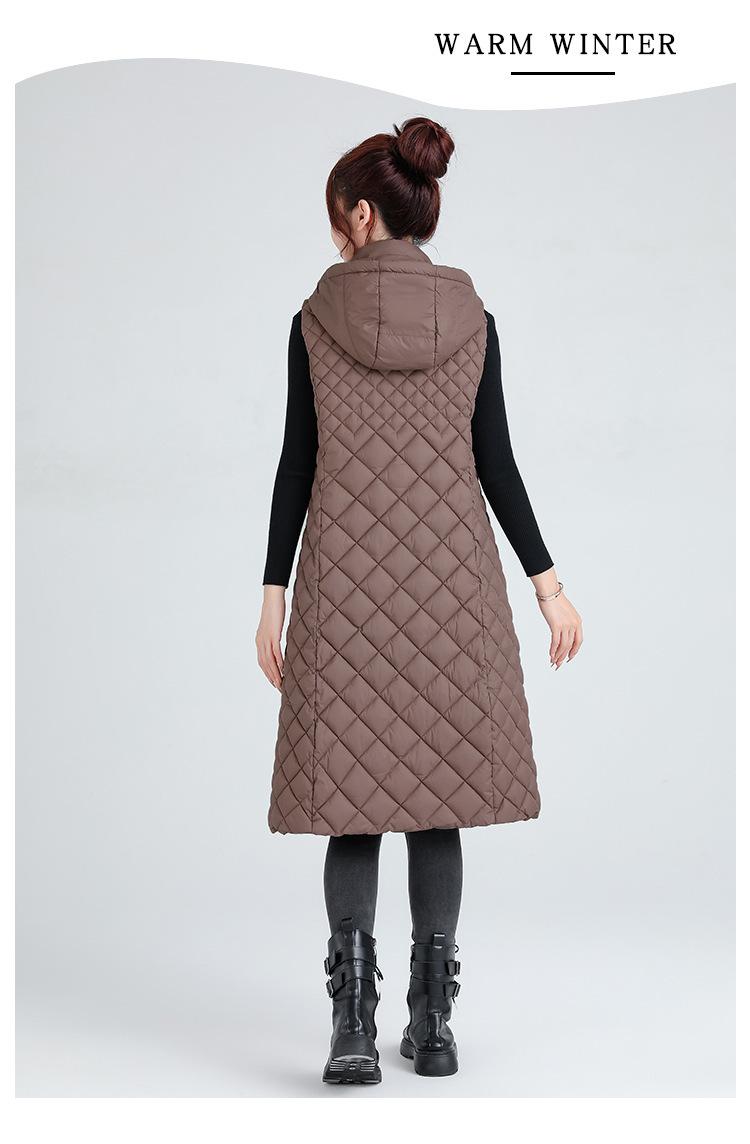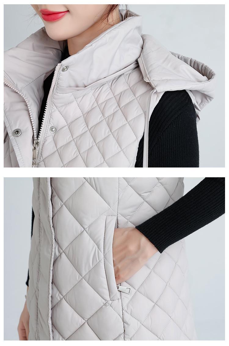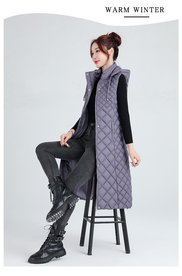 2024 Nueva Moda Versátil Chaleco de Algodón Acolchado Chaleco Largo de Algodón Ajustado Ropa Exterior Chaleco de Algodón sin Mangas