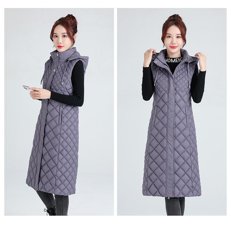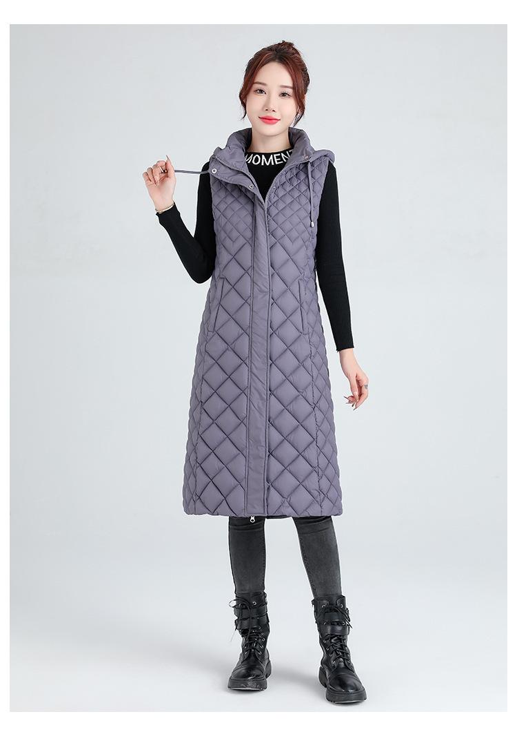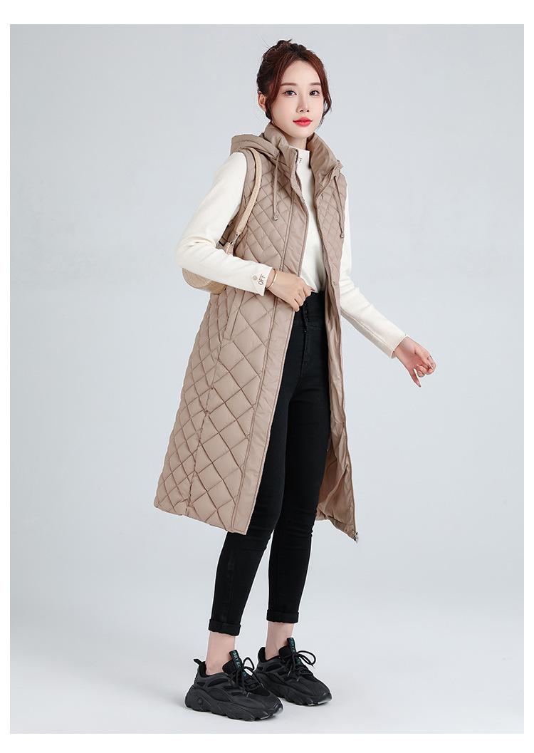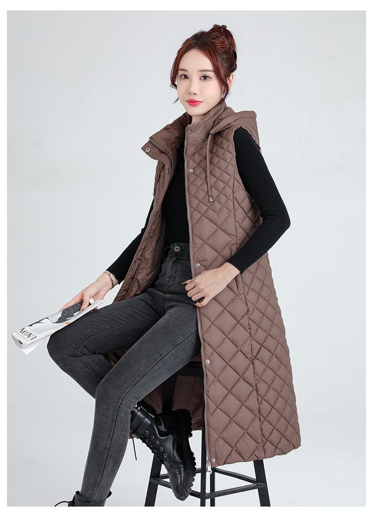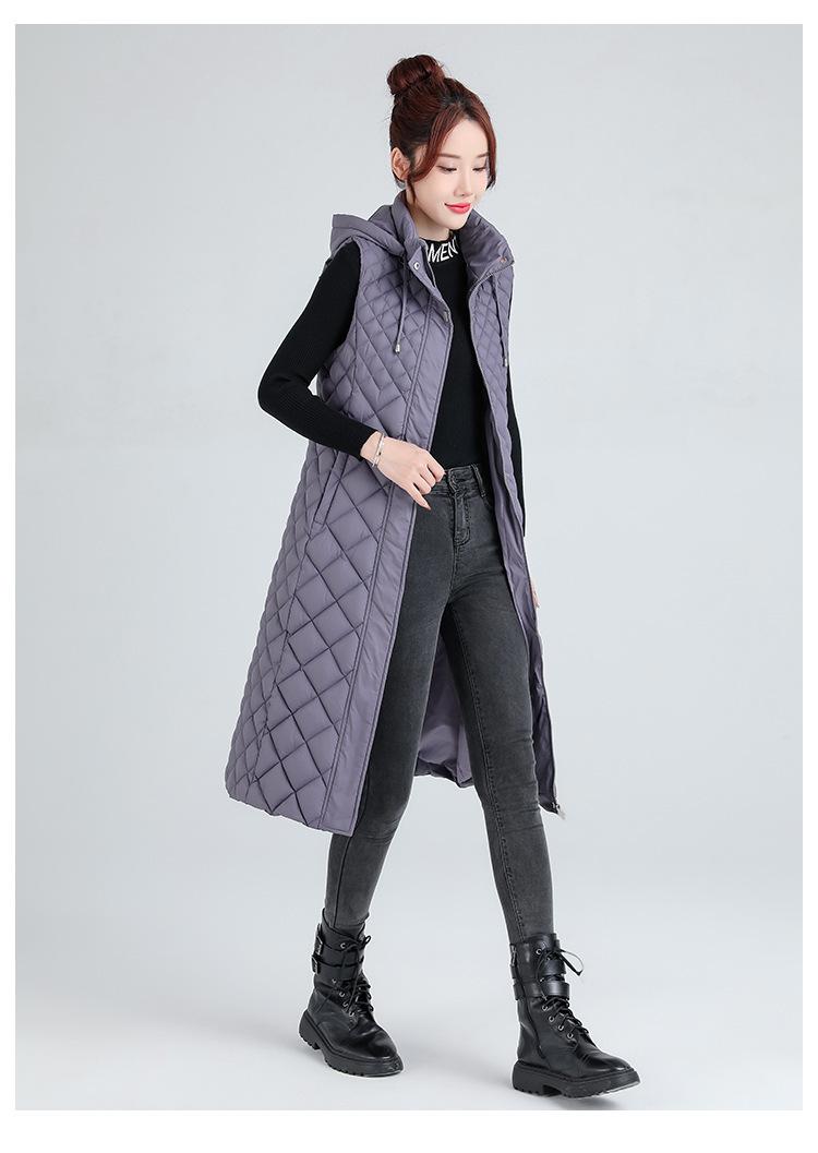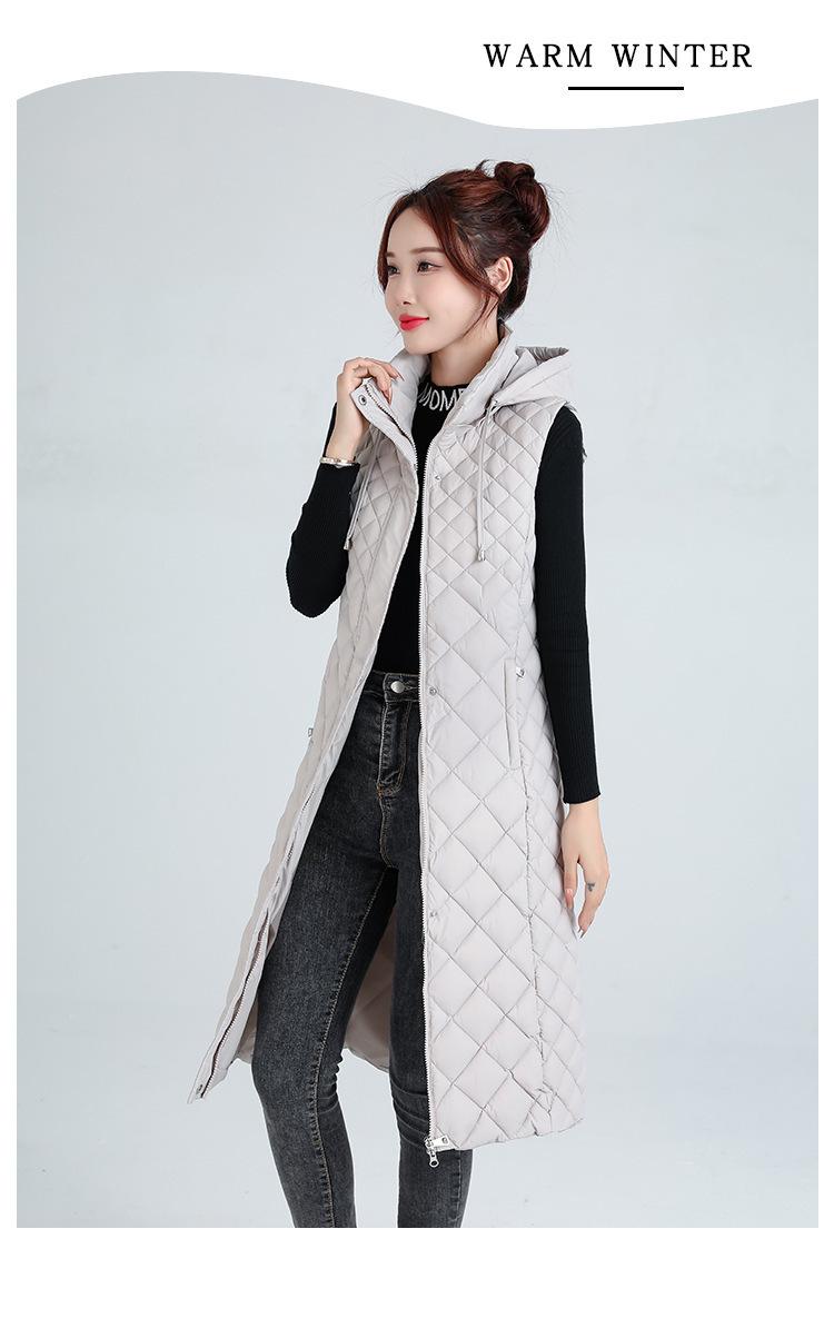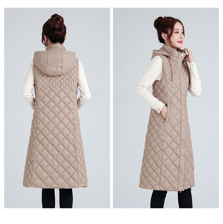 2024 Nueva Moda Versátil Chaleco de Algodón Acolchado Chaleco Largo de Algodón Ajustado Ropa Exterior Chaleco de Algodón sin Mangas
