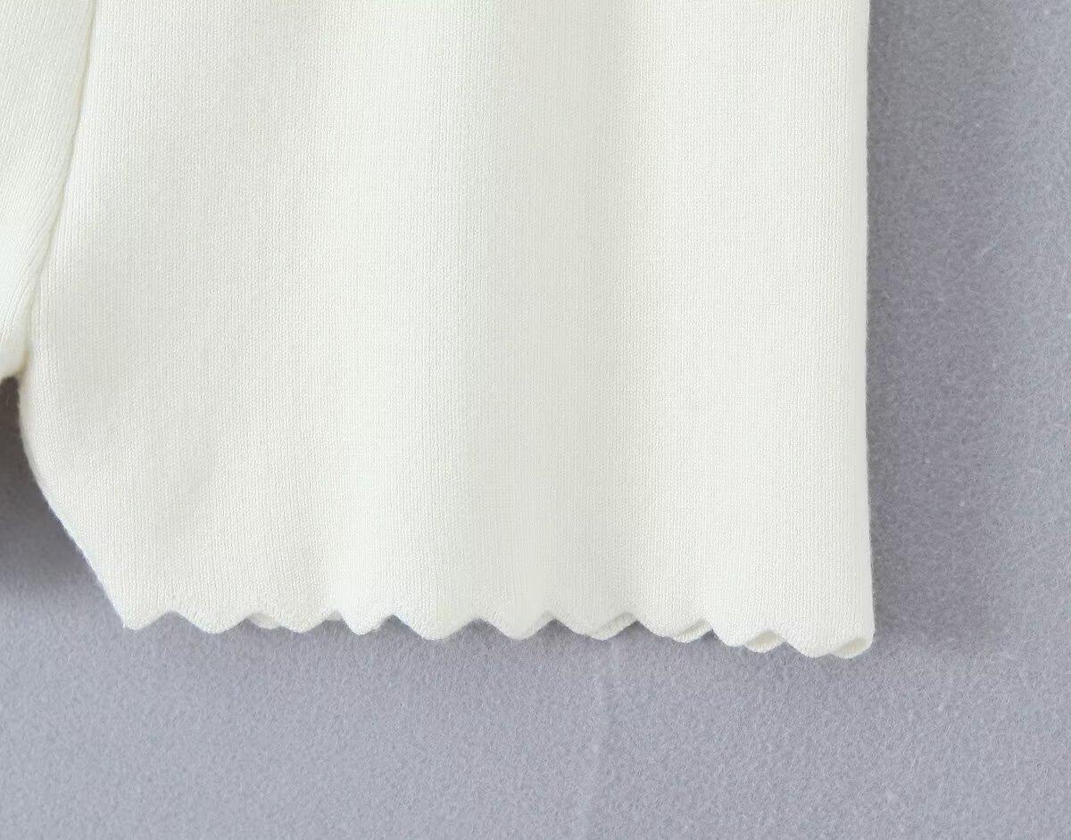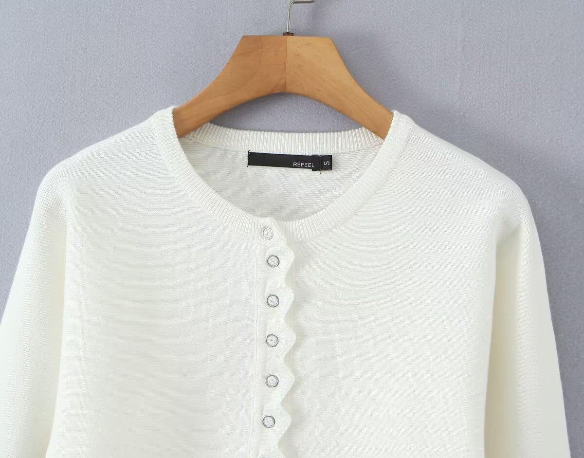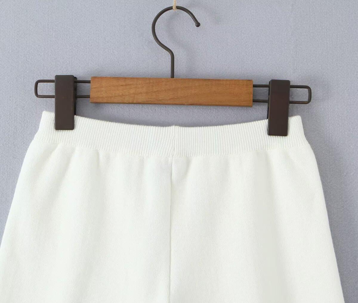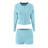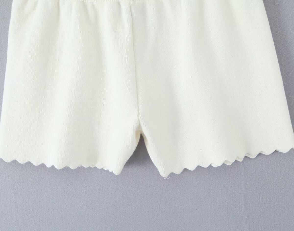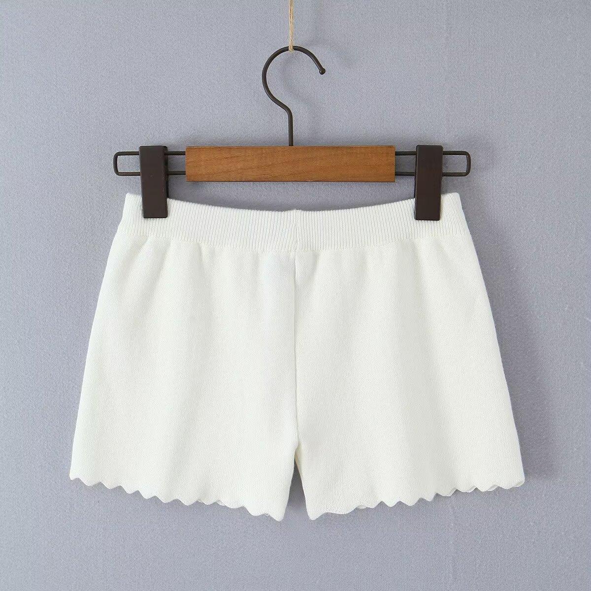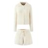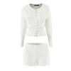 Ropa de Mujer de Comercio Exterior Otoño 2025 Estilo Europeo y Americano Cárdigan de Punto con Borde Ondulado + Set de Shorts Ajustados a la Cadera para Mujer M11696/7F
