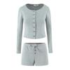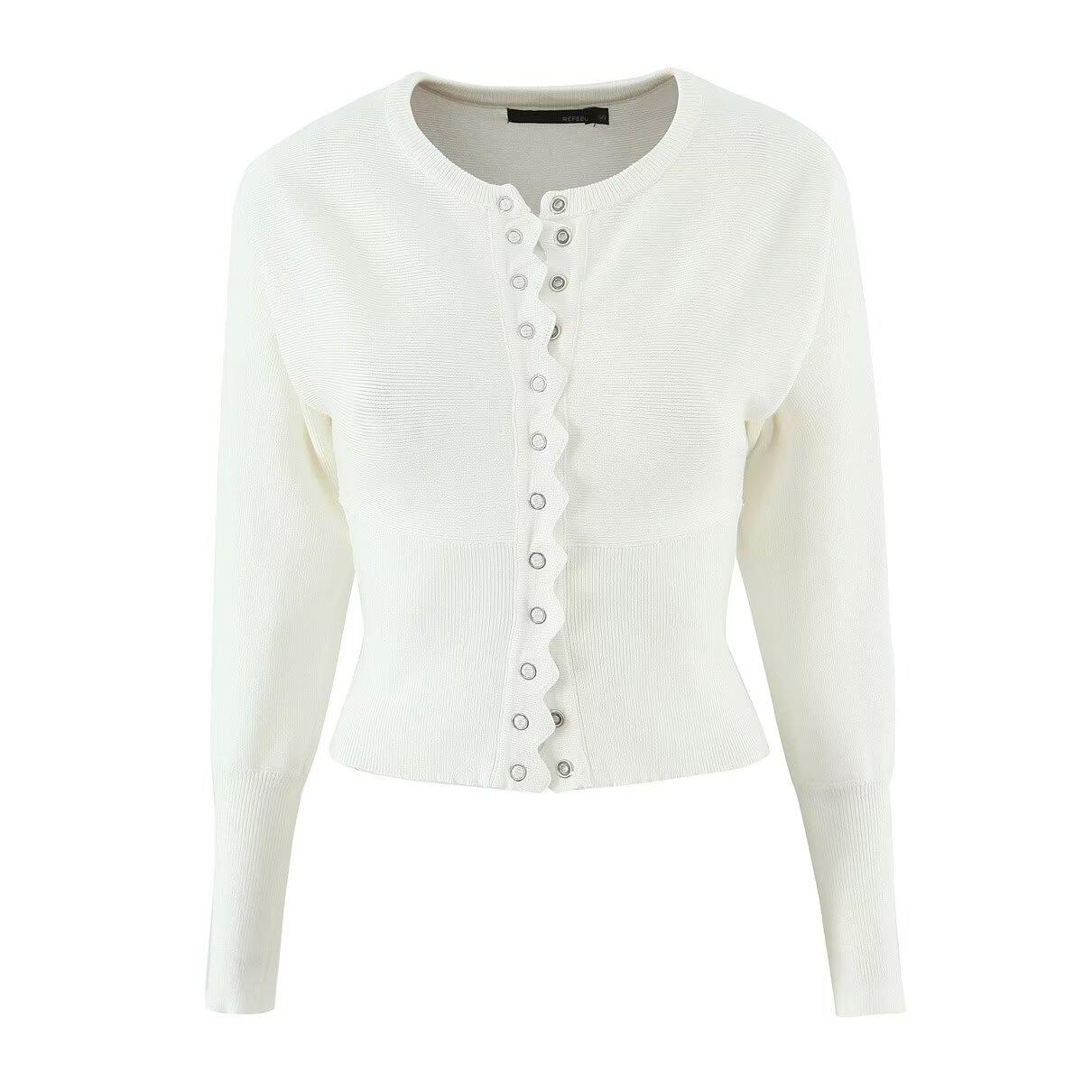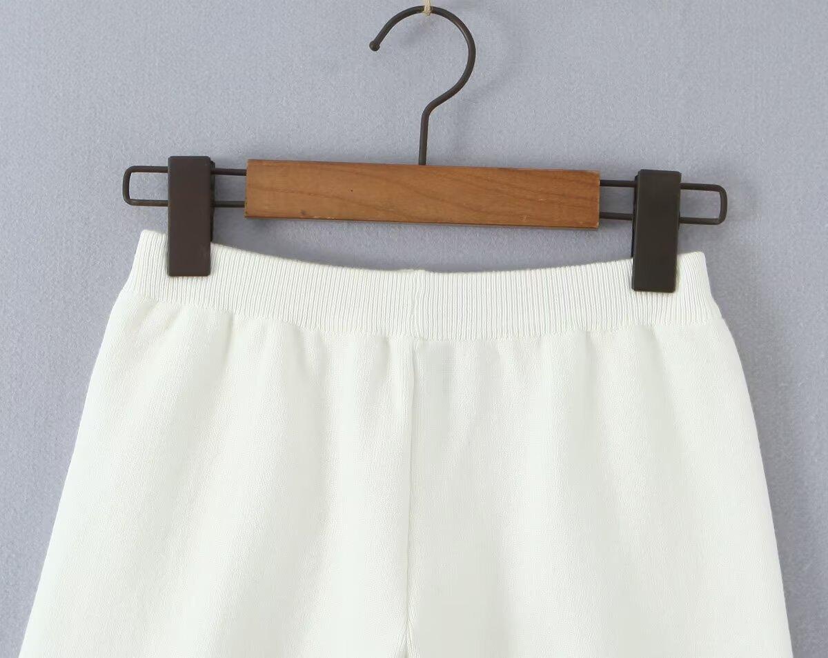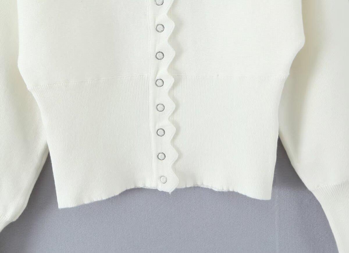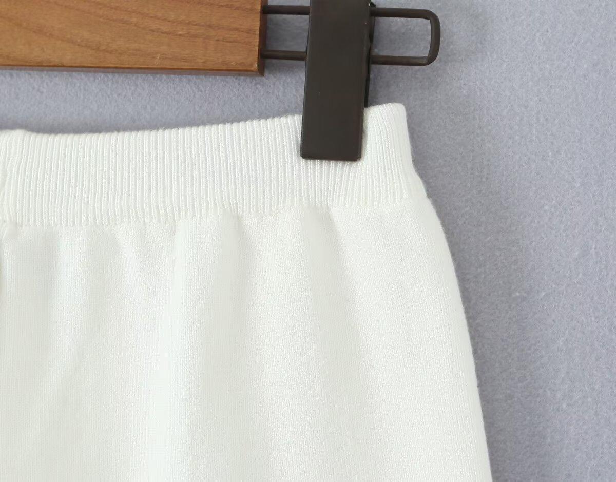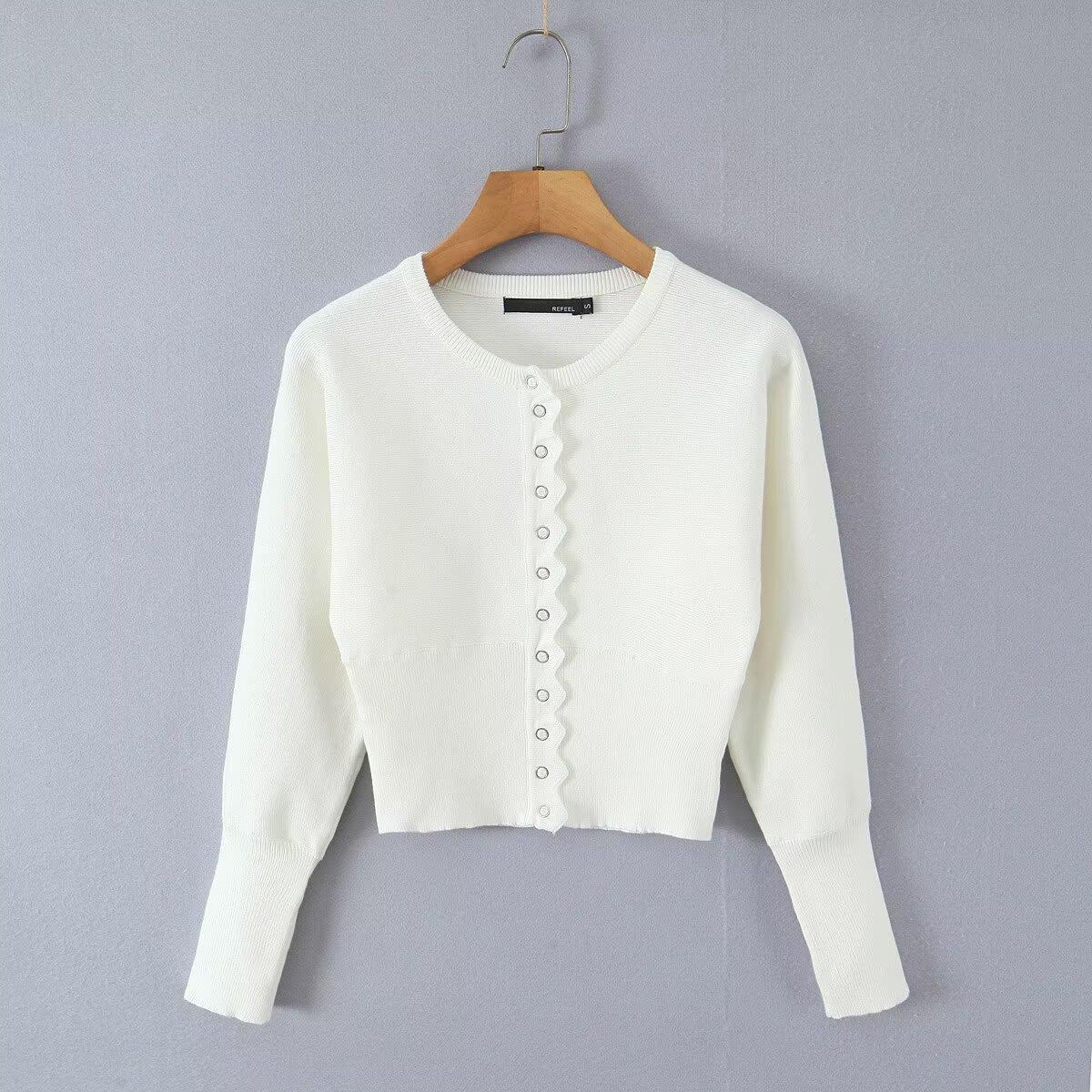 Ropa de Mujer de Comercio Exterior Otoño 2025 Estilo Europeo y Americano Cárdigan de Punto con Borde Ondulado + Set de Shorts Ajustados a la Cadera para Mujer M11696/7F