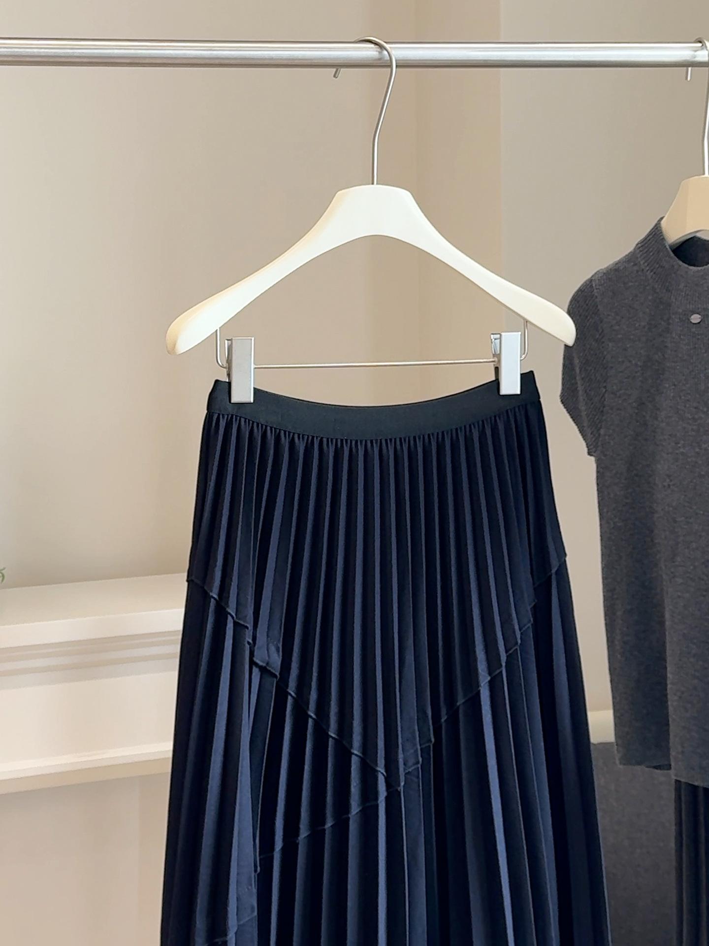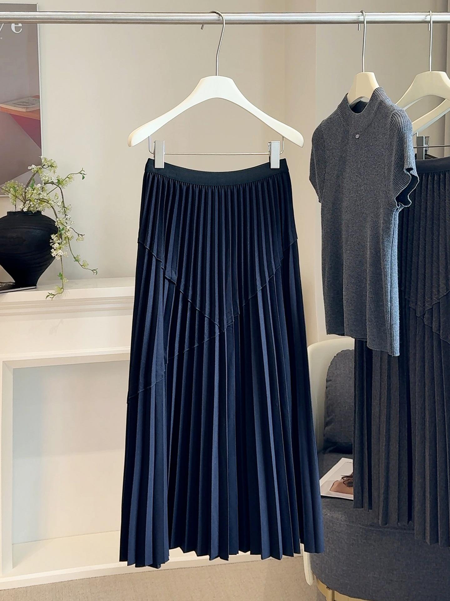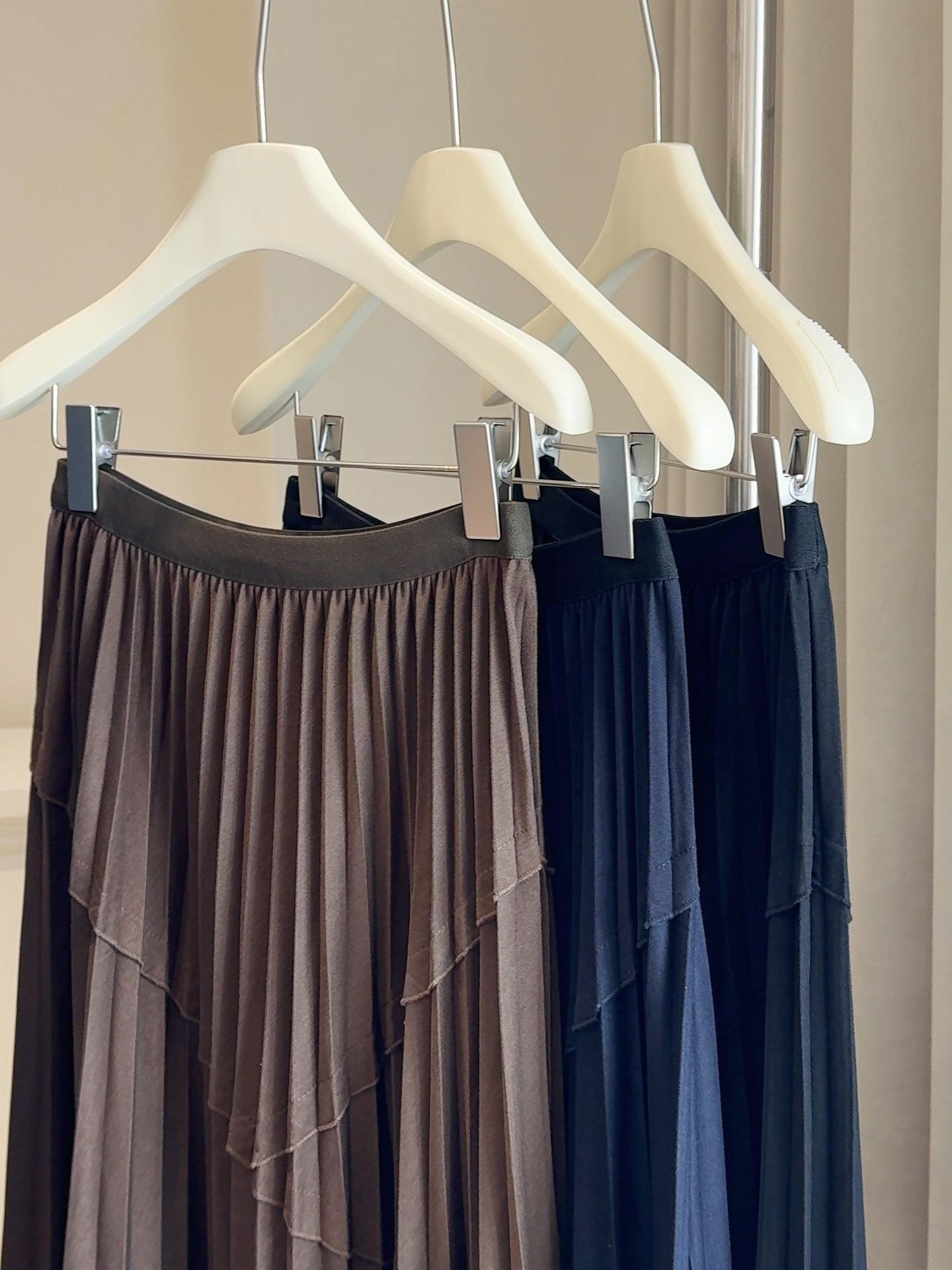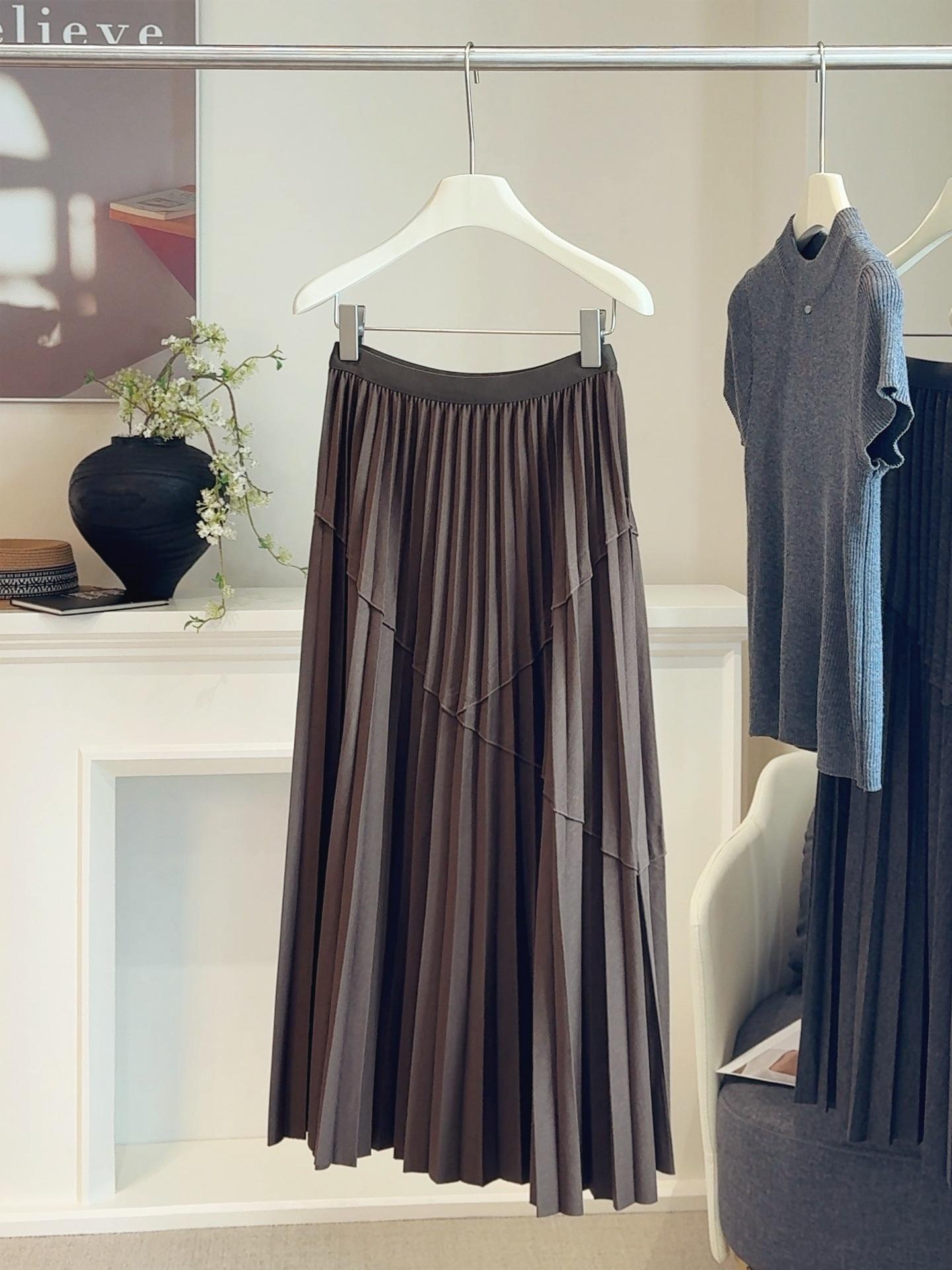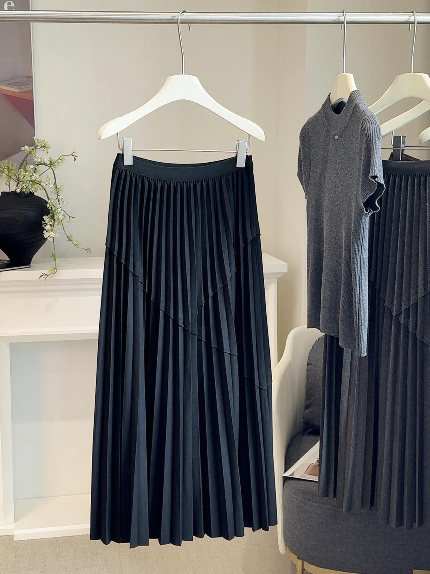 Falda Midi Drapeada Plisada de Alta Gama Mujer 2025 Otoño Nuevo Cintura Alta Adelgazante Temperamento Versátil Falda A-line A6296