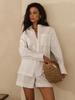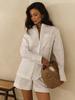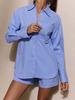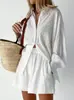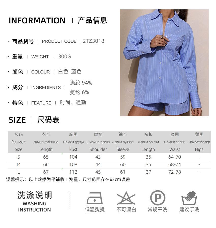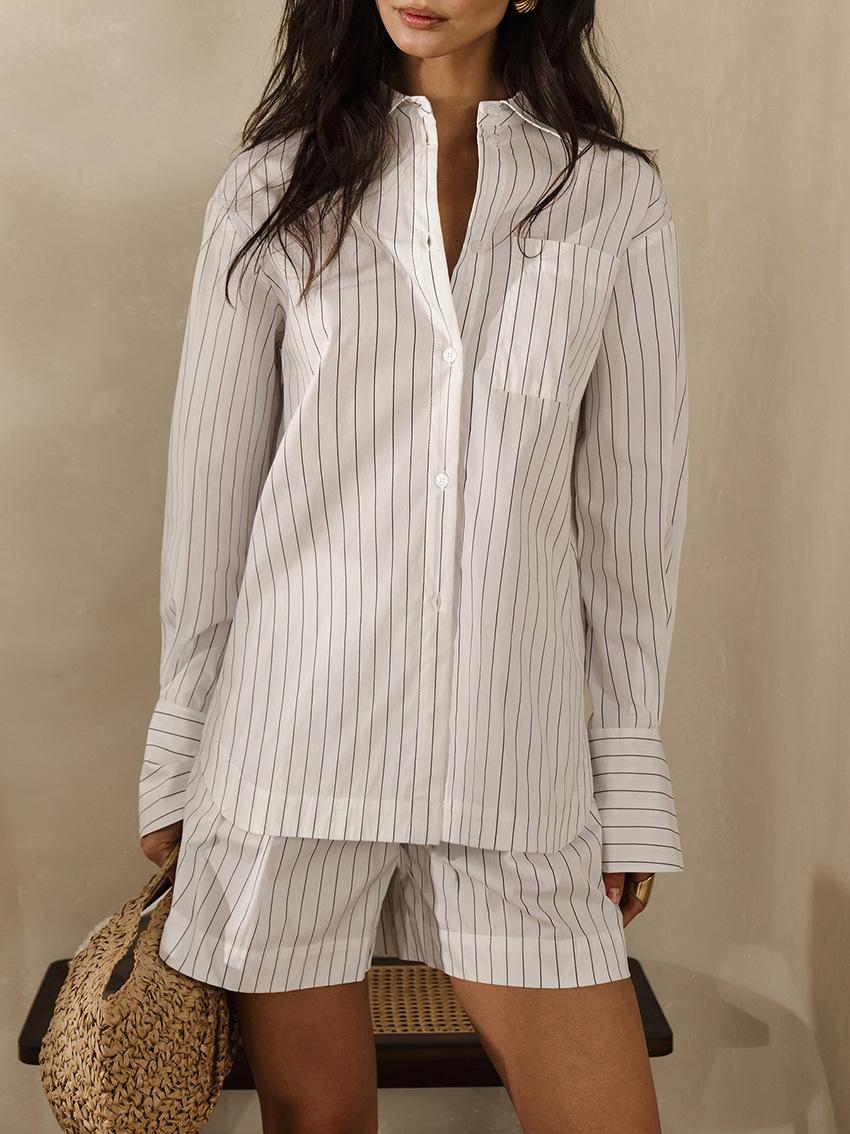 2025 Nuevo Otoño Suelto Rayado Camisa Manga Larga Shorts Pierna Ancha Conjunto de Dos Piezas con Diseño y Elegante para Desplazamiento Transfronterizo