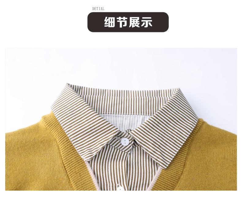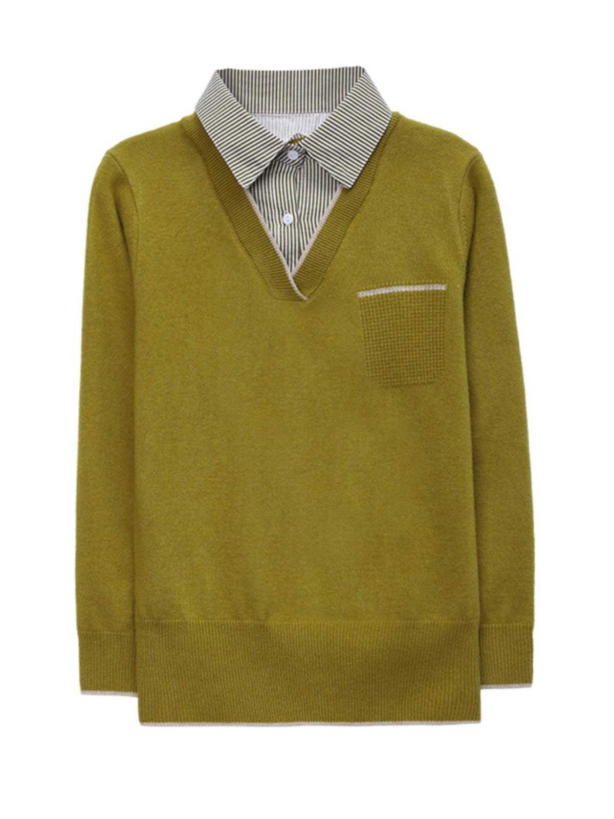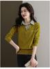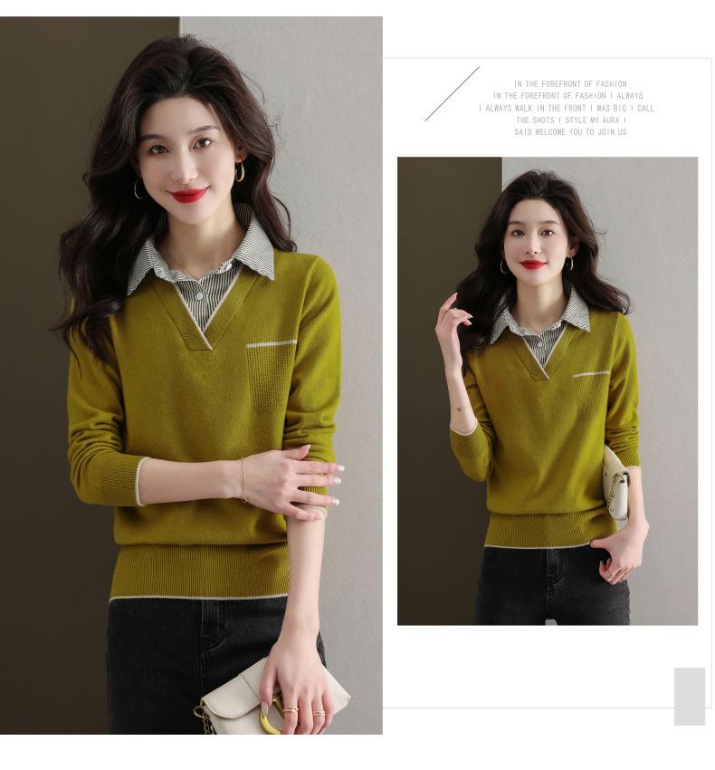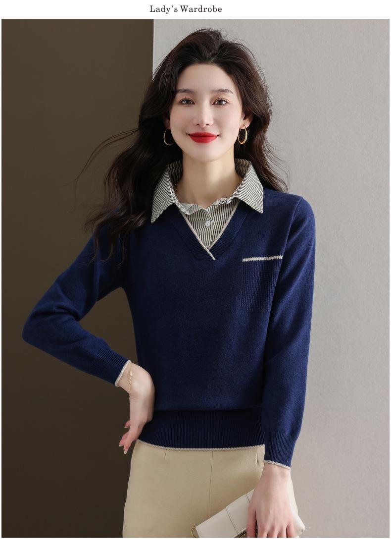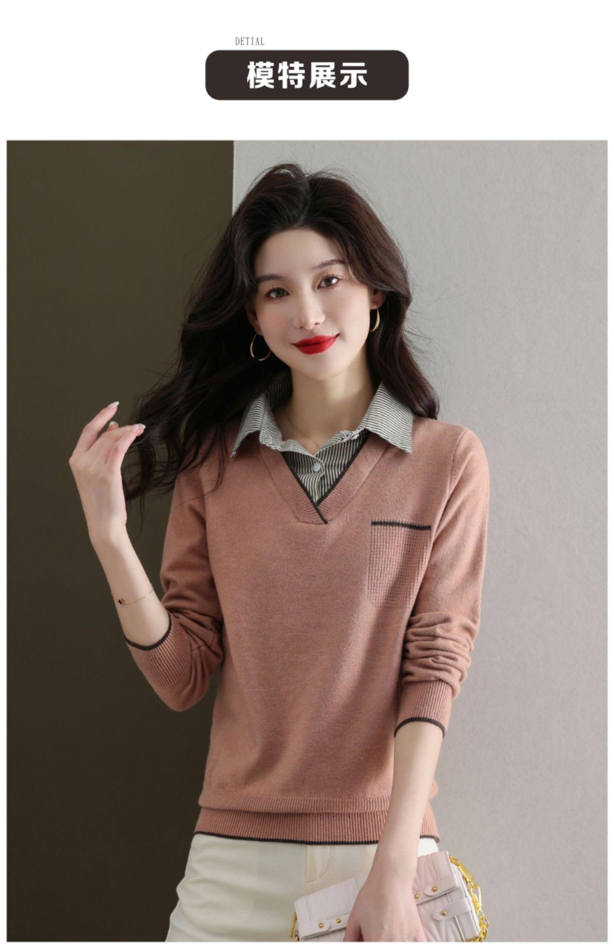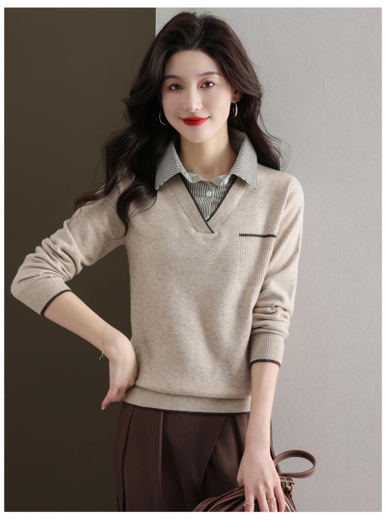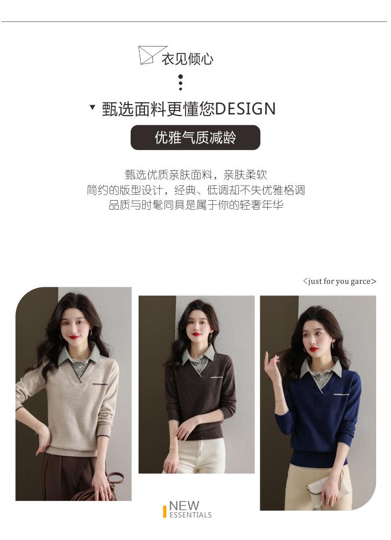 Tejido de punto falso de dos piezas para mujer, nuevo de primavera, suéter de manga larga con cuello de camisa, sentido básico, jersey, top patchwork para mujer
