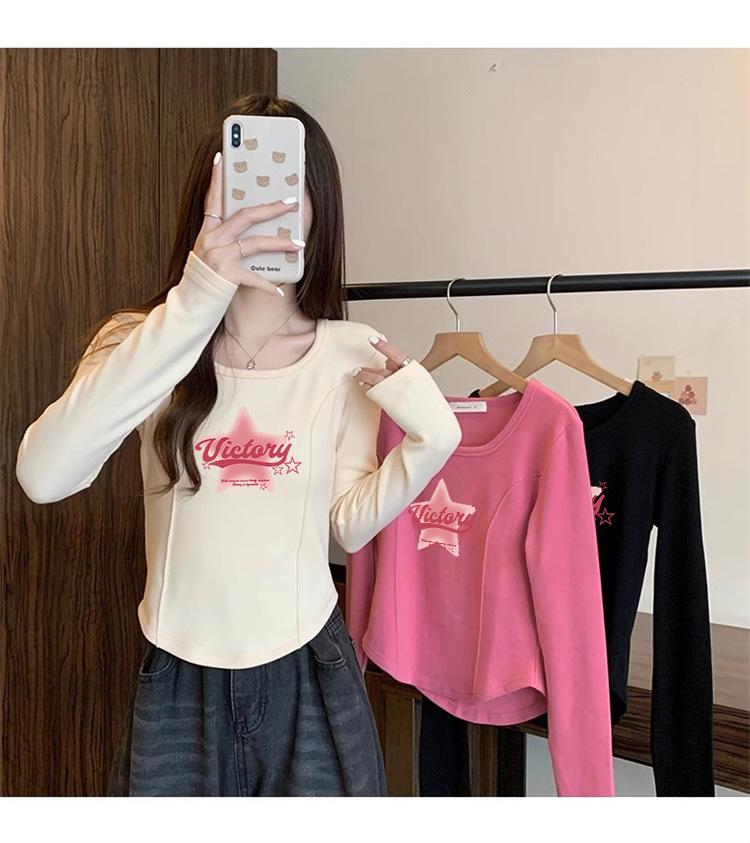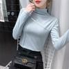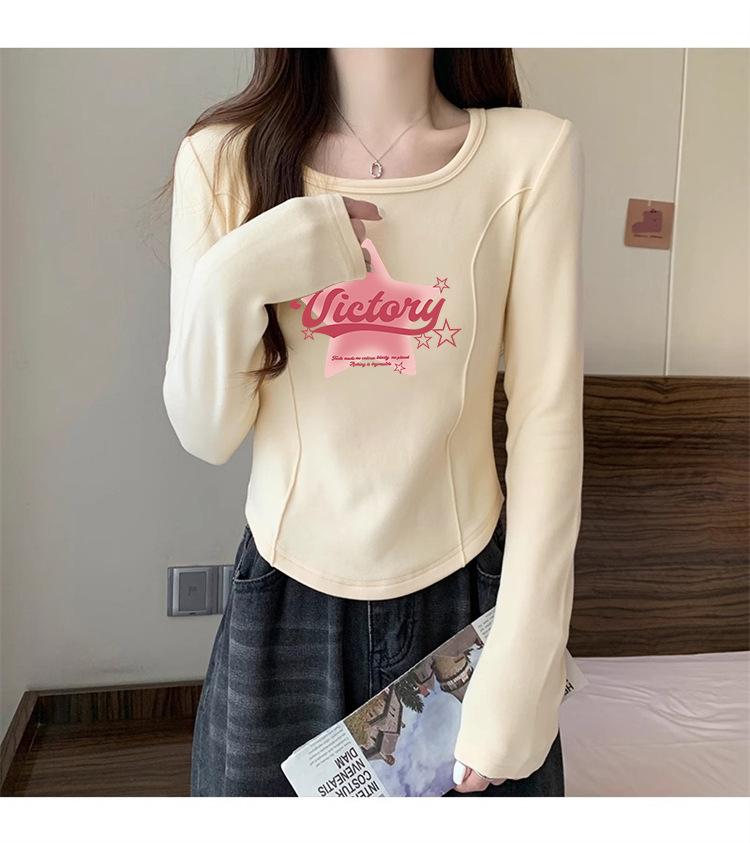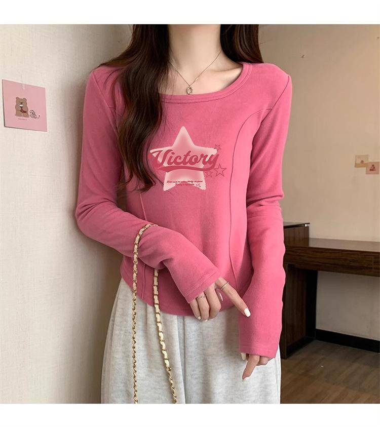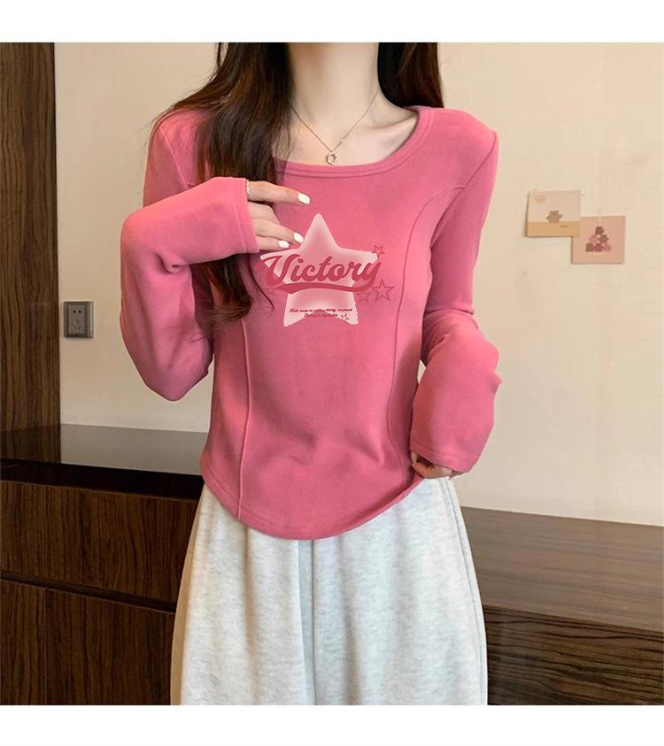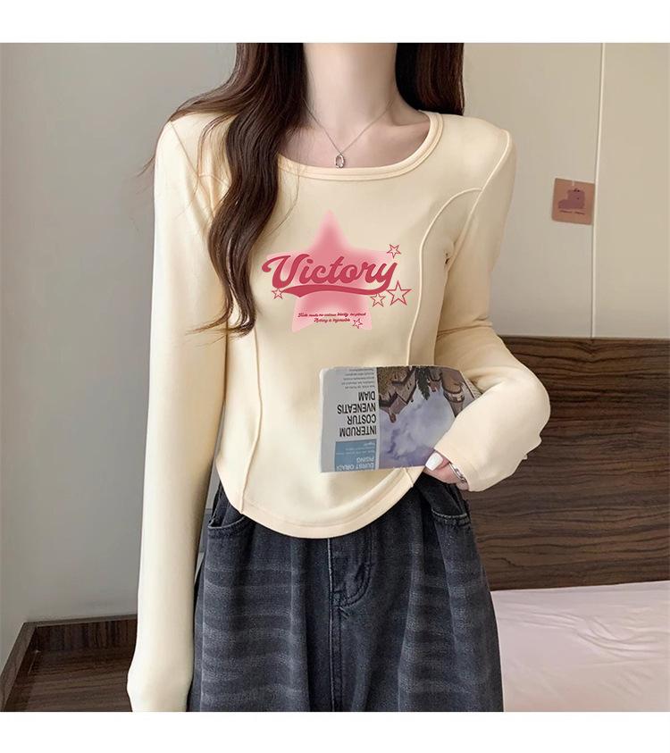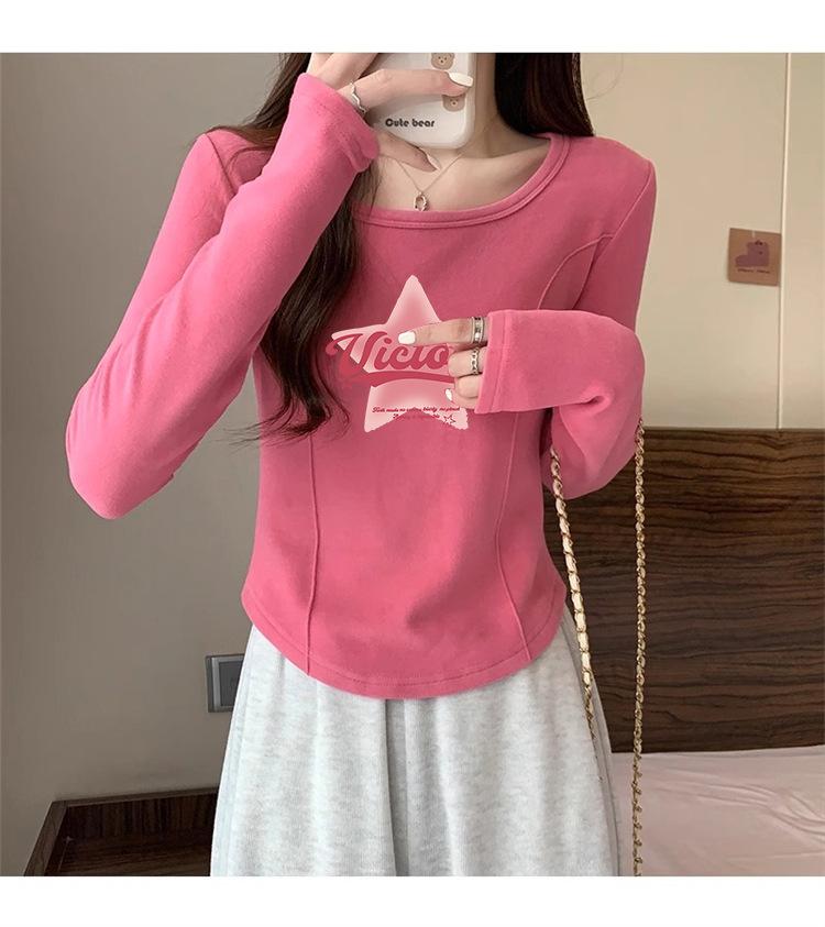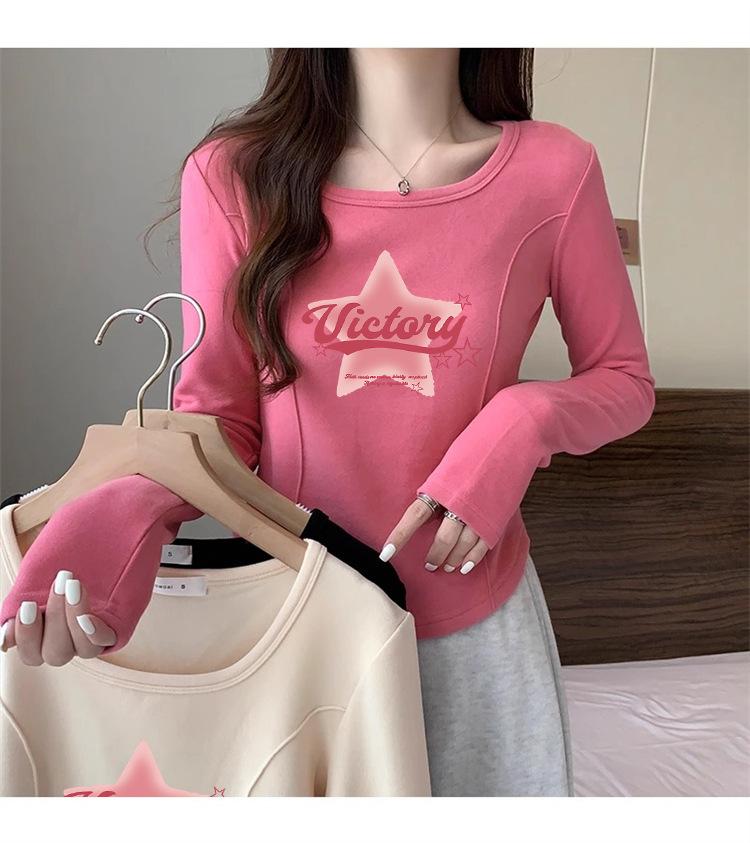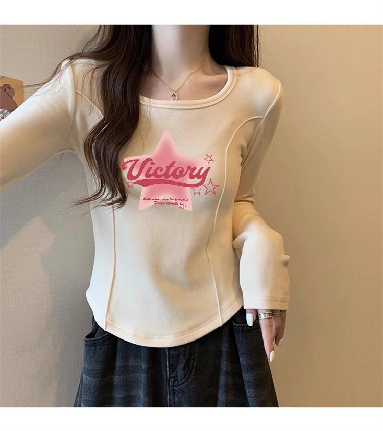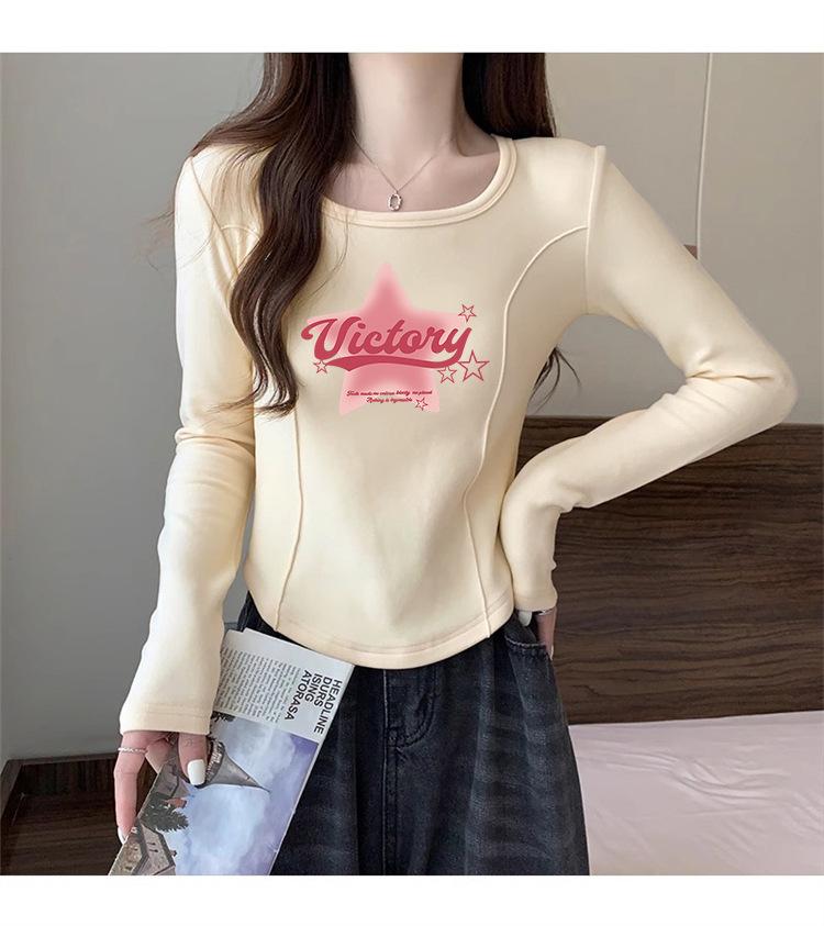 Capa base interior de terciopelo alemán de doble cara para mujer, diseño de otoño/invierno, camiseta pequeña con ballenas, gruesa, cepillada, cálida, camiseta de manga larga para mujer