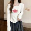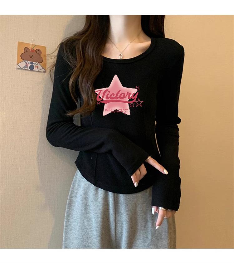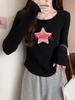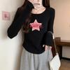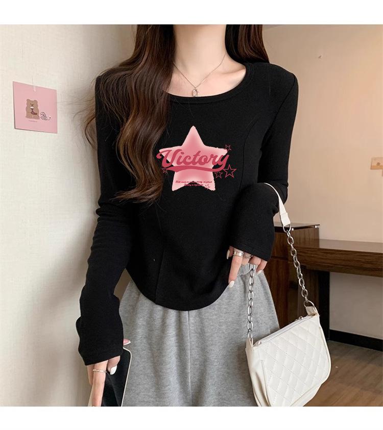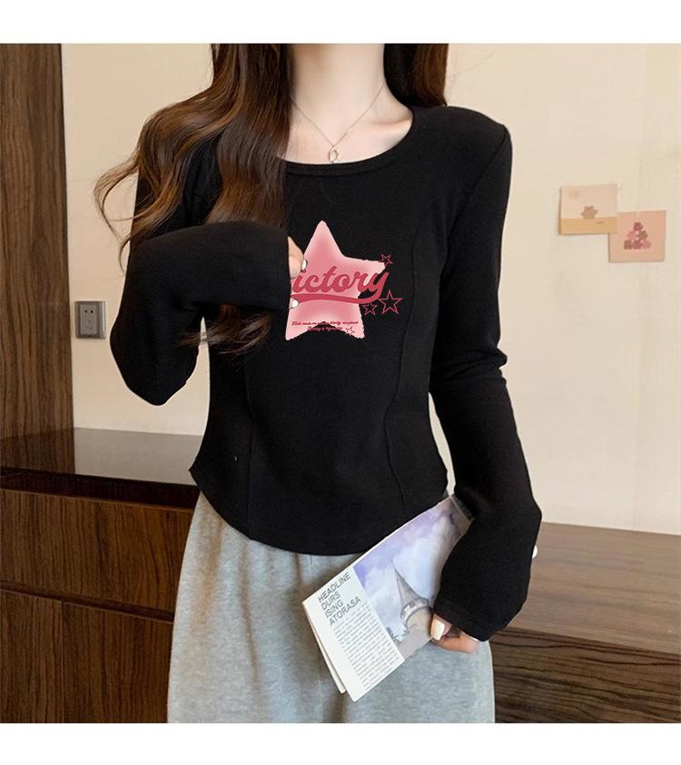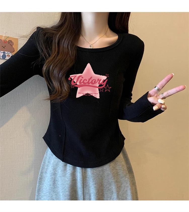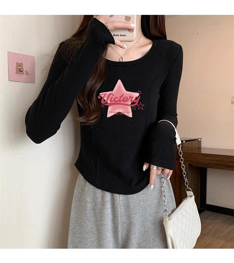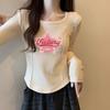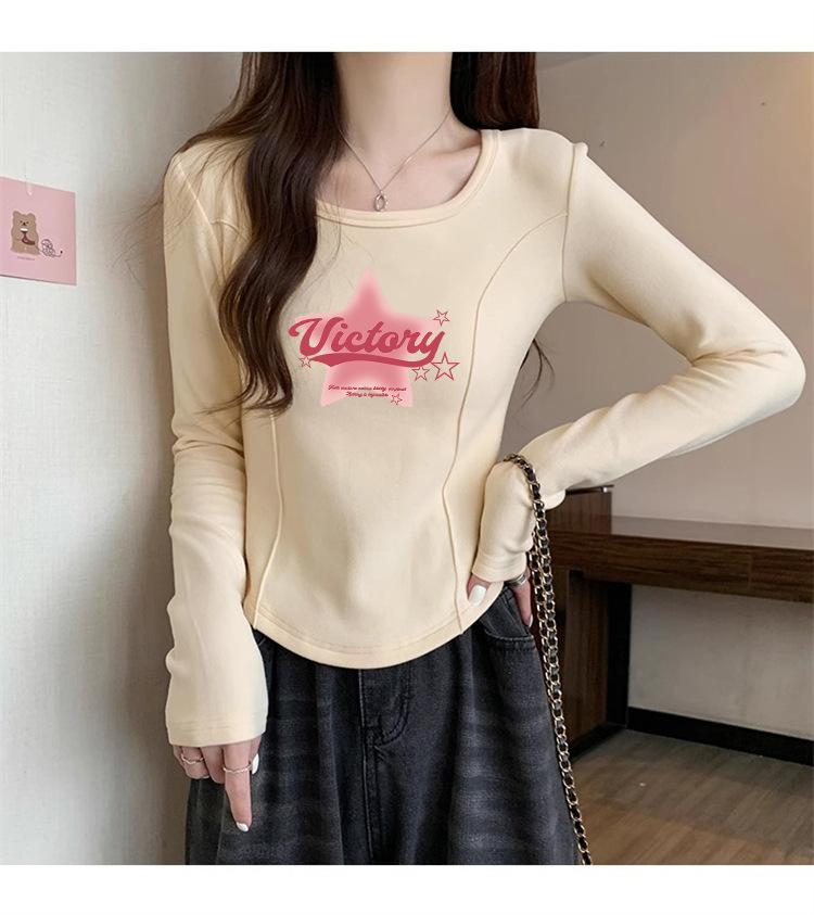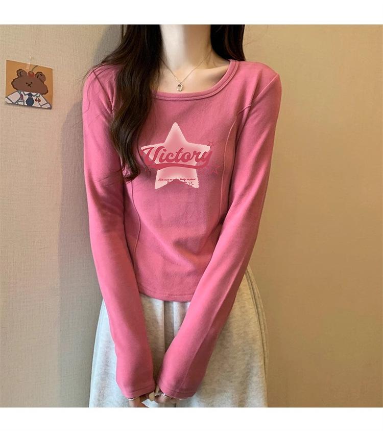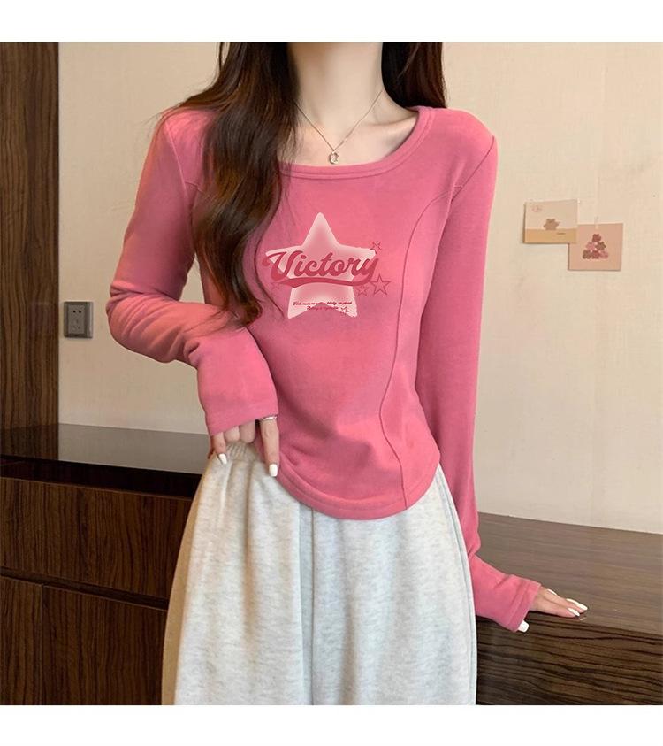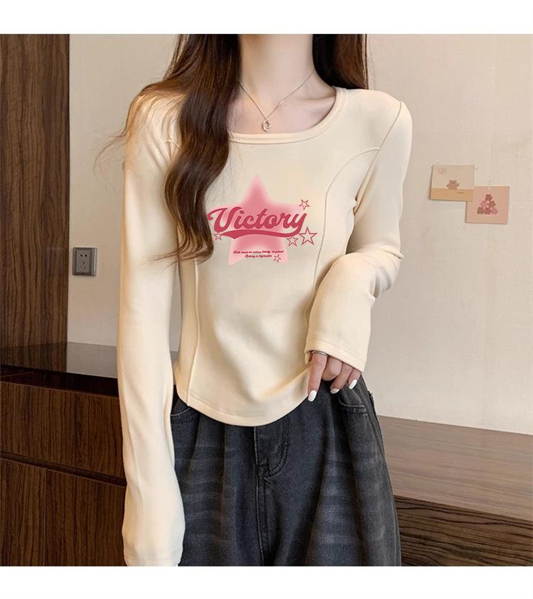 Capa base interior de terciopelo alemán de doble cara para mujer, diseño de otoño/invierno, camiseta pequeña con ballenas, gruesa, cepillada, cálida, camiseta de manga larga para mujer