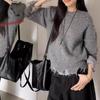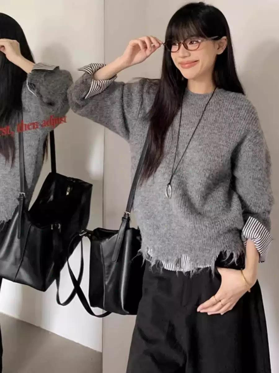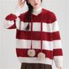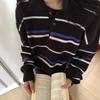 Suéter coreano de diseño con parches de rayas en los puños para mujer, otoño e invierno 2025, nuevo, holgado, suave, versátil, tejido