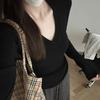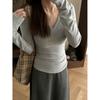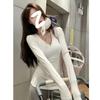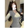 2025 Otoño Nuevo Camiseta de Manga Larga con Un Hombro Descubierto Deseo Puro Moda Versátil Color Sólido Capa Base Niñas Chica Caliente Sexy Top