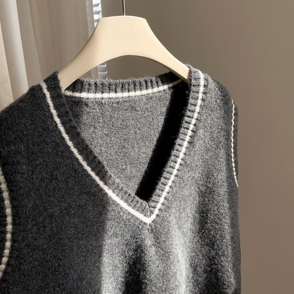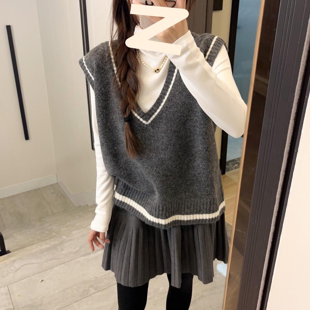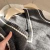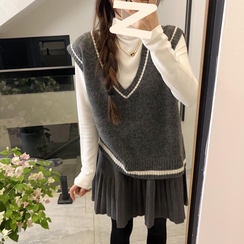 Chaleco pequeño de punto grueso estilo universitario retro literario otoño e invierno gris cuello en V suelto sin mangas suéter en capas mujer