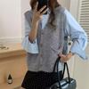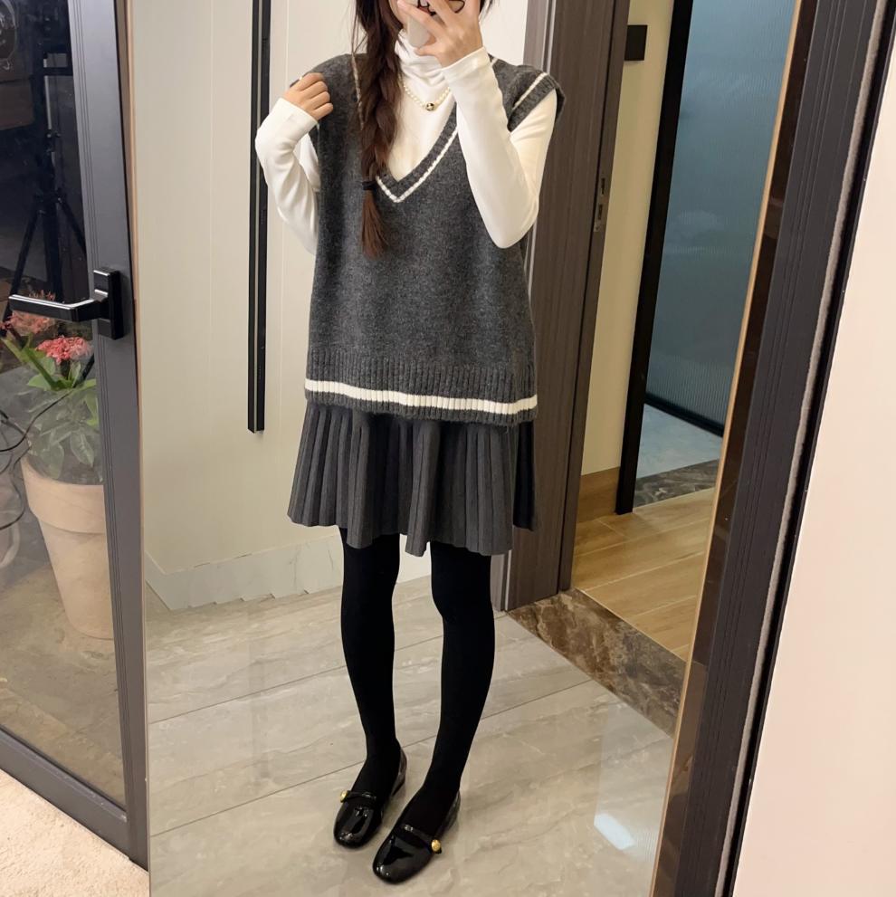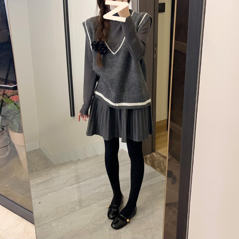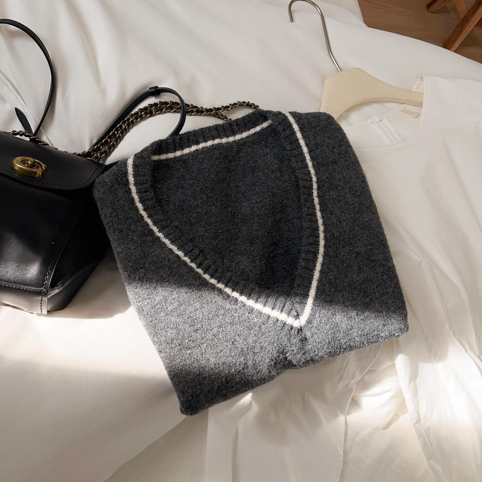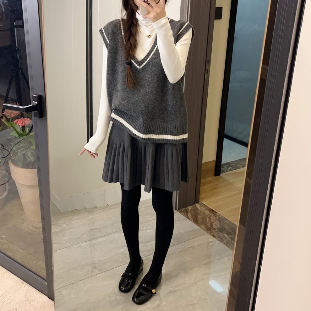 Chaleco pequeño de punto grueso estilo universitario retro literario otoño e invierno gris cuello en V suelto sin mangas suéter en capas mujer