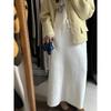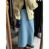 Falda Midi de Punto Grueso Estilo Suave para Mujer Otoño Nuevo Falda Recta de Un Paso Cintura Alta Adelgazante Lana Bodycon Falda Larga