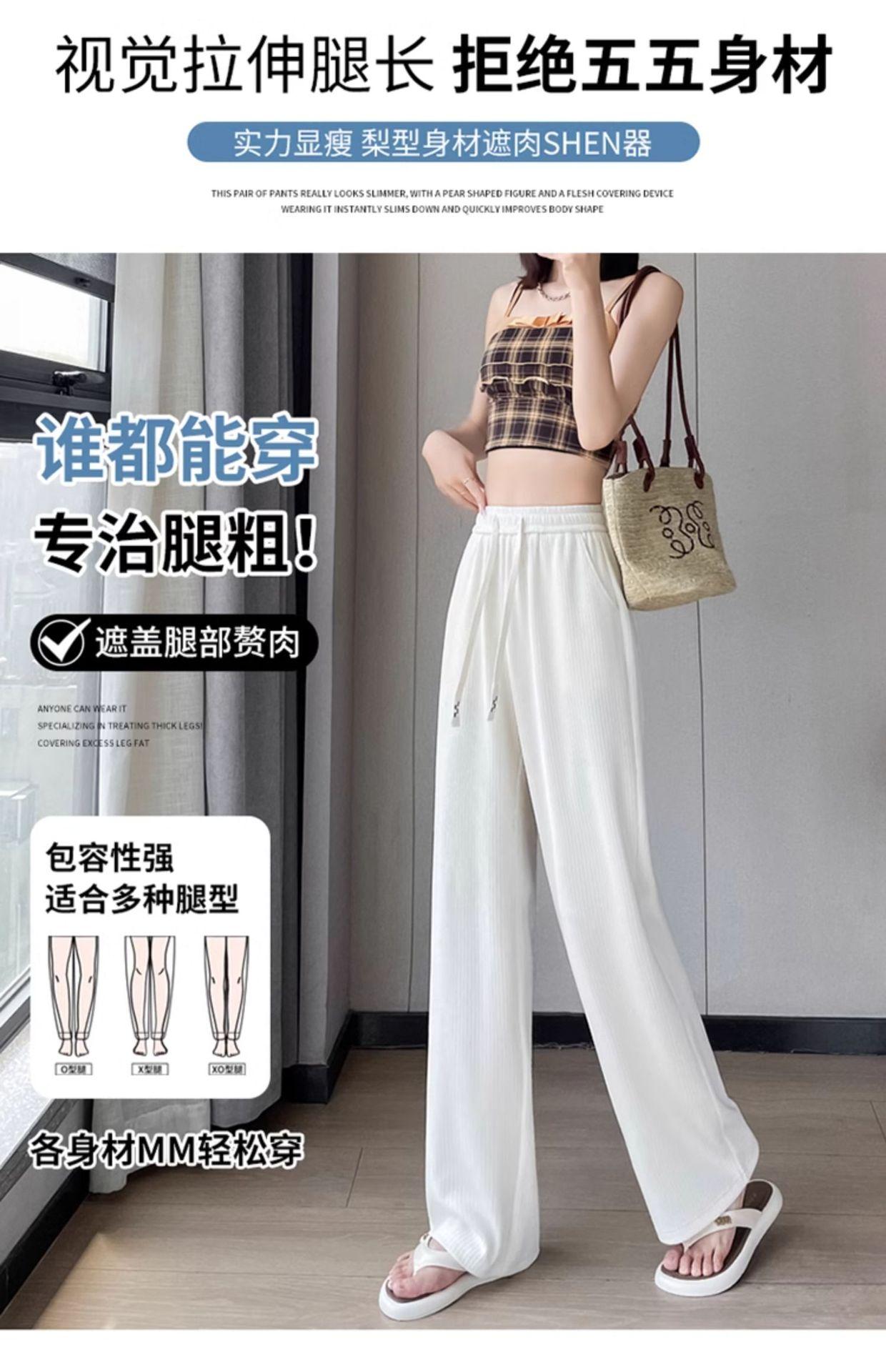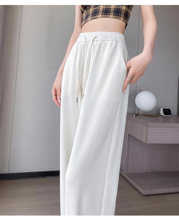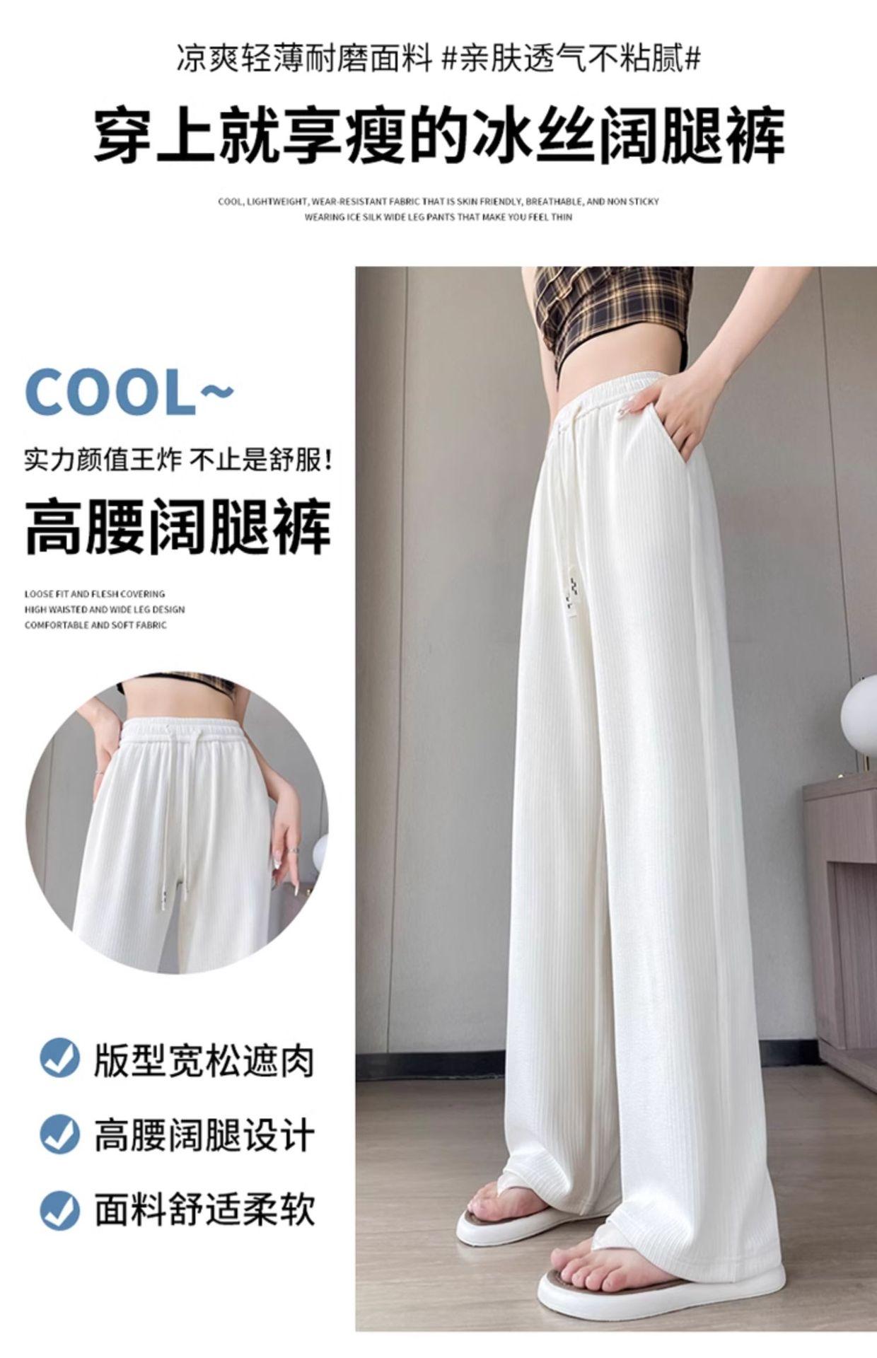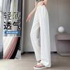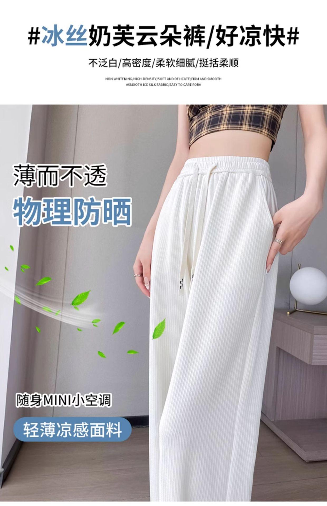 Pantalones Blancos de Seda de Hielo de Pierna Ancha para Mujer 2025 Nuevo Verano Delgados de Pierna Recta Drapeados Frescos Protección Solar Pantalones Casuales A5015