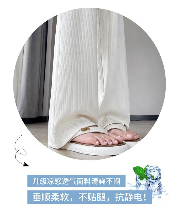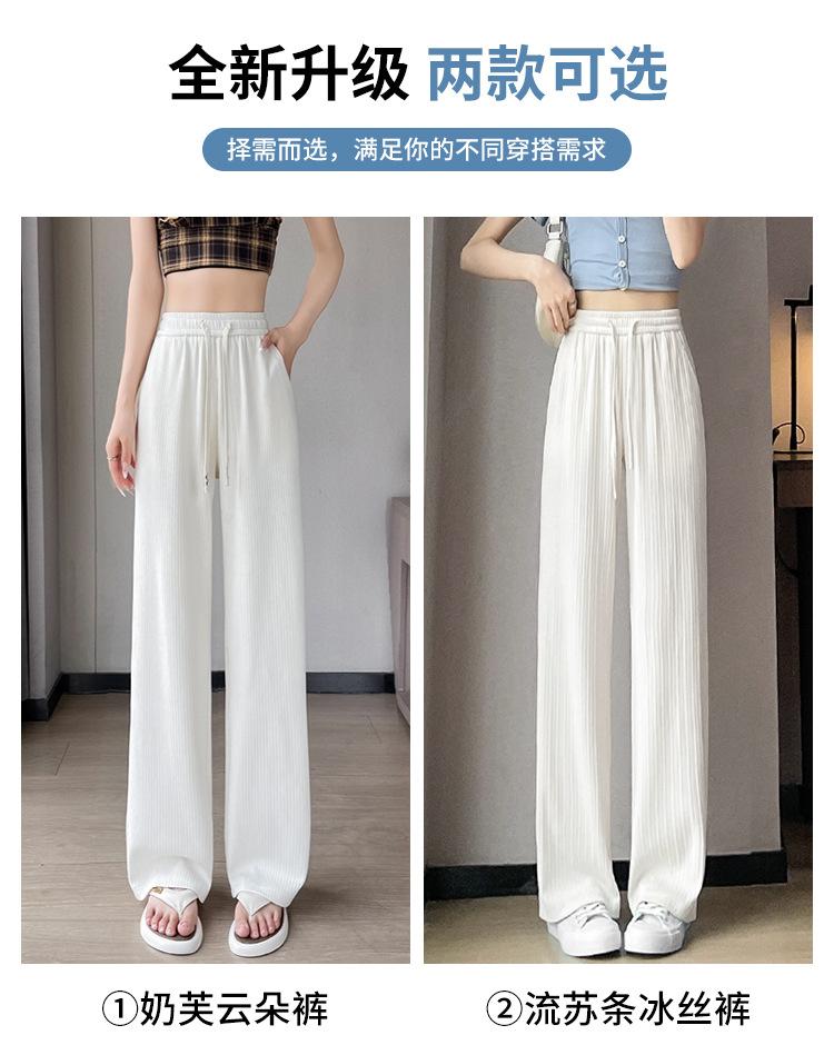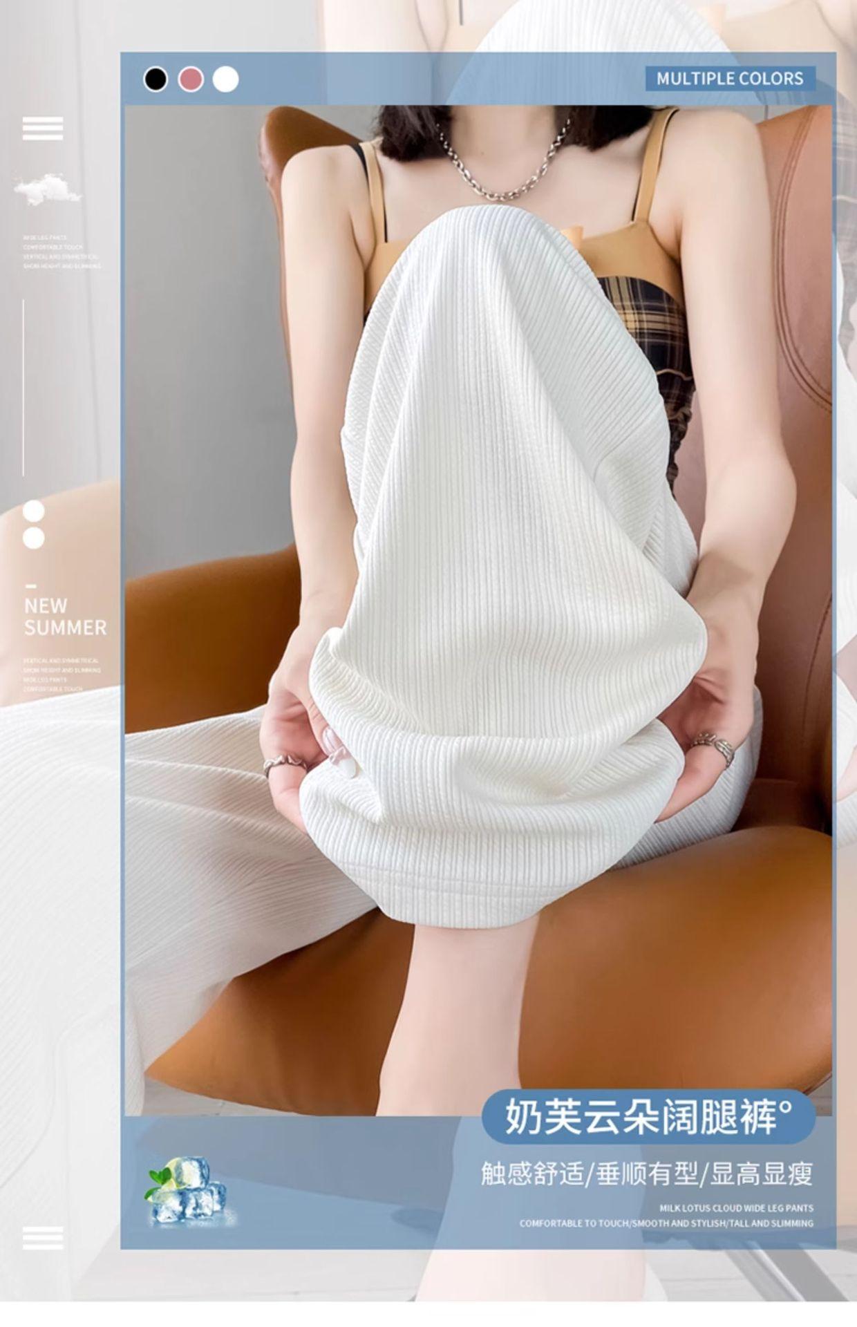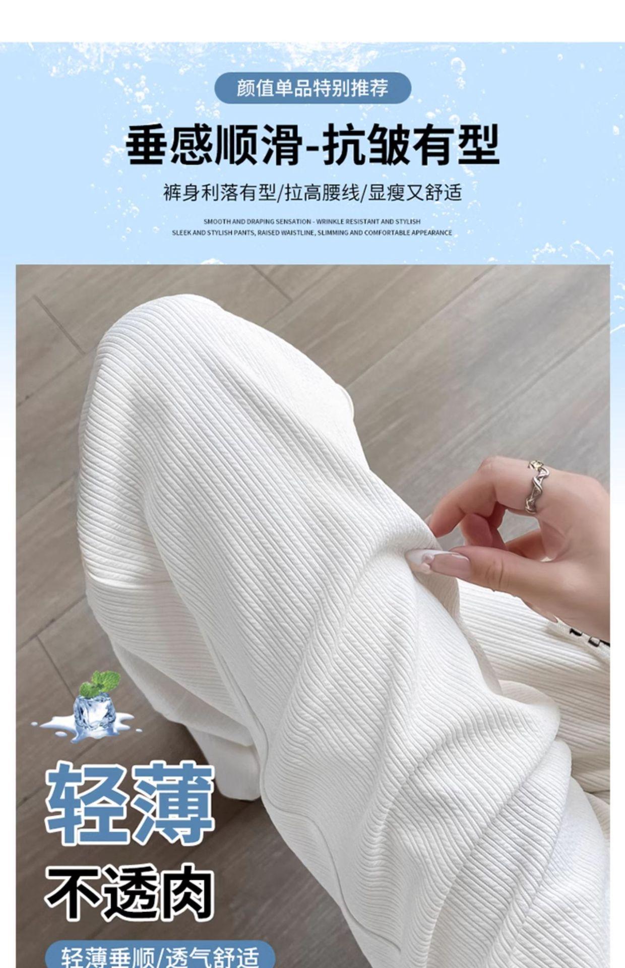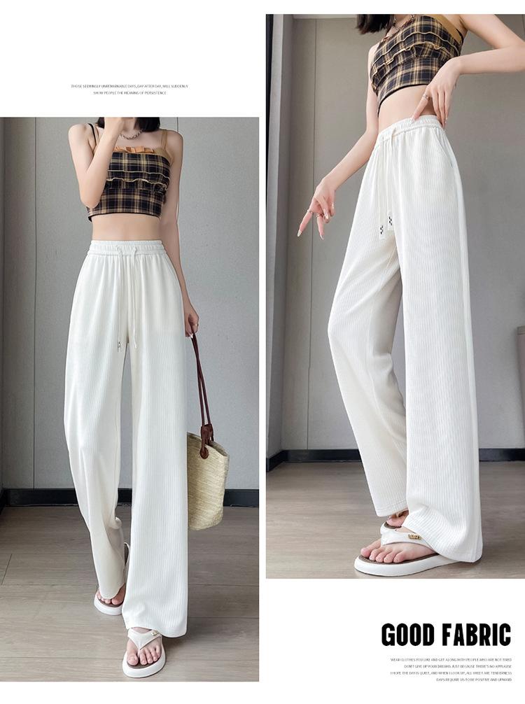 Pantalones Blancos de Seda de Hielo de Pierna Ancha para Mujer 2025 Nuevo Verano Delgados de Pierna Recta Drapeados Frescos Protección Solar Pantalones Casuales A5015