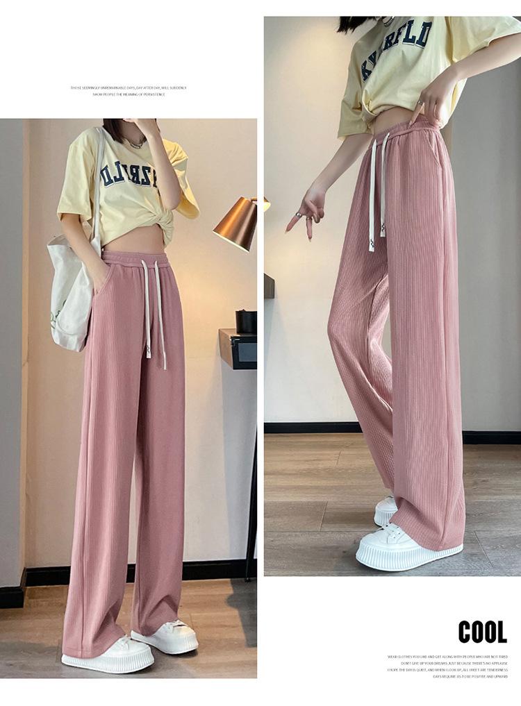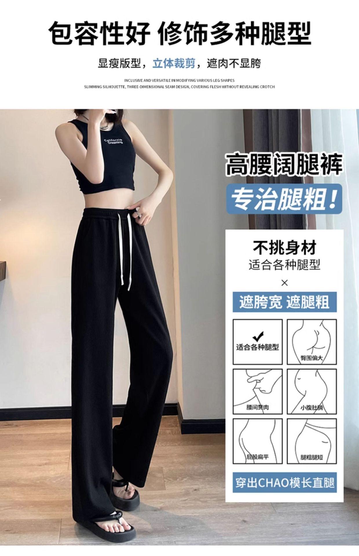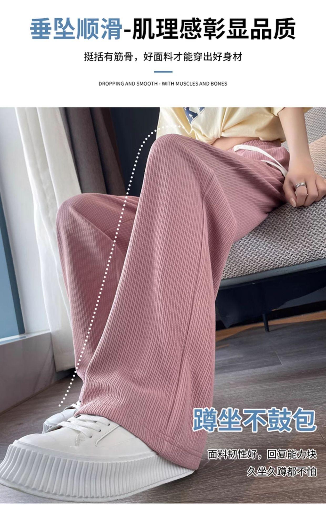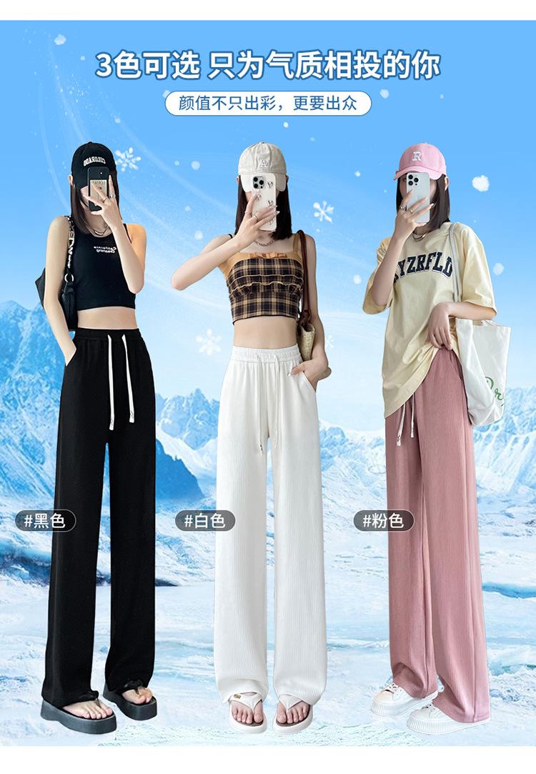 Pantalones Blancos de Seda de Hielo de Pierna Ancha para Mujer 2025 Nuevo Verano Delgados de Pierna Recta Drapeados Frescos Protección Solar Pantalones Casuales A5015