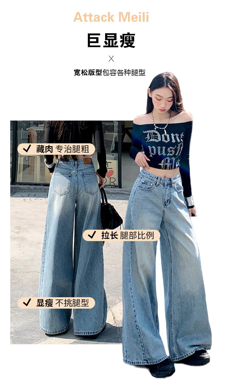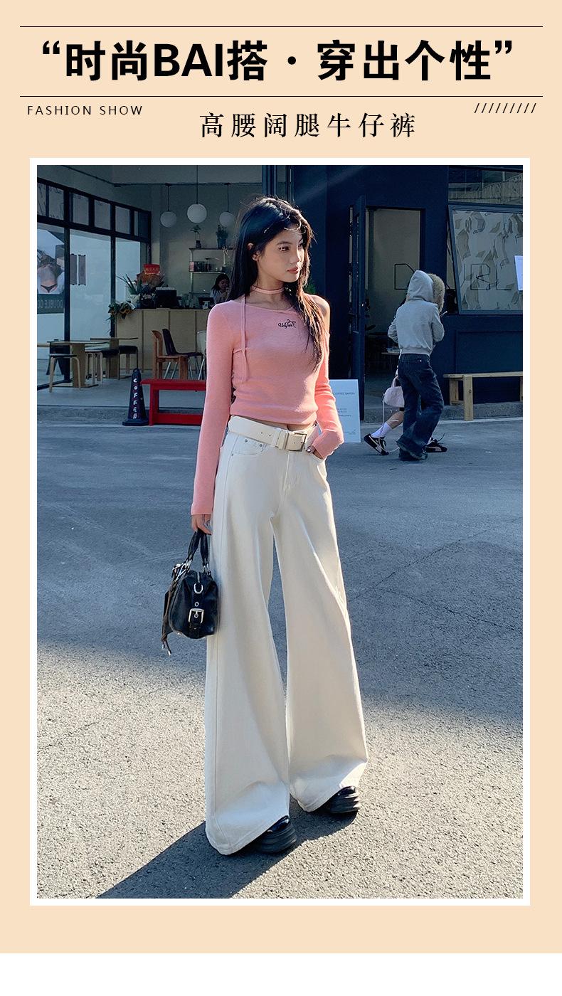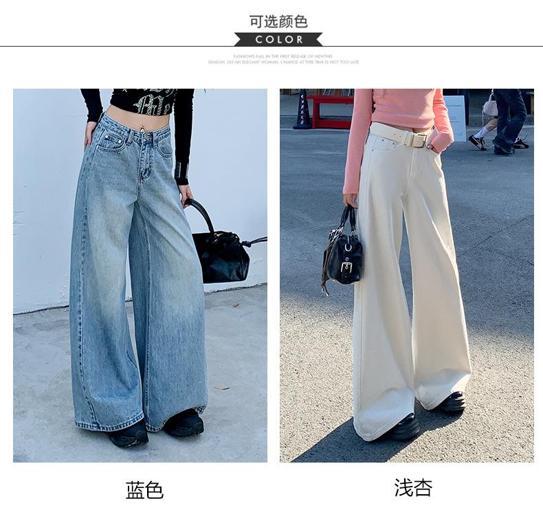 Albaricoque Jeans de Pierna Ancha para Mujer 2025 Primavera Nuevo Cintura Alta Adelgazantes Combinan con Todo Sueltos Rectos Tubo Pantalones Largos