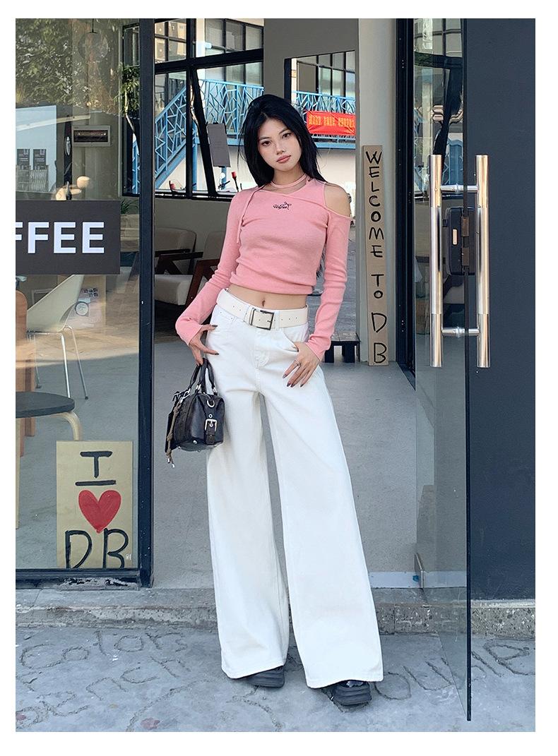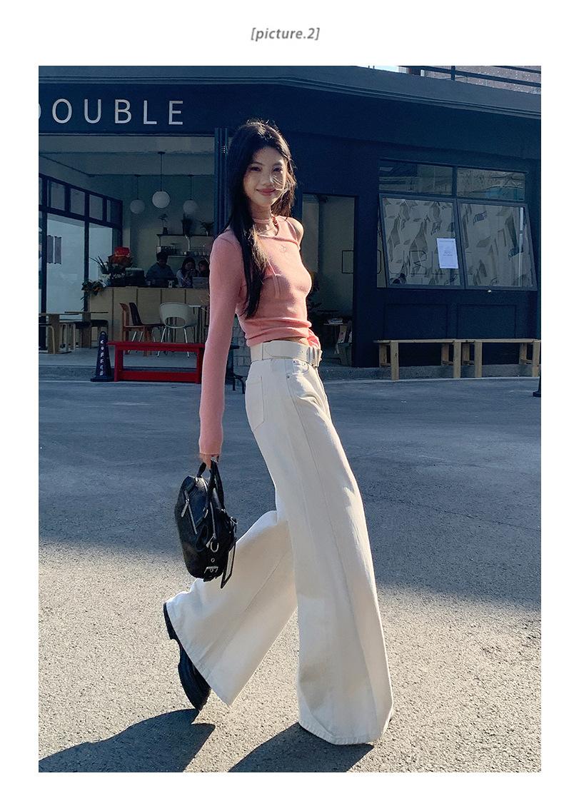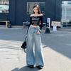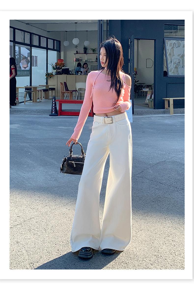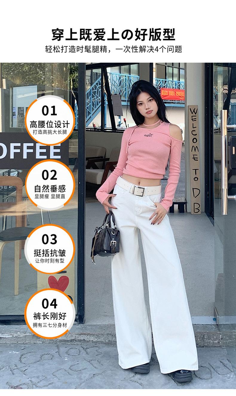 Albaricoque Jeans de Pierna Ancha para Mujer 2025 Primavera Nuevo Cintura Alta Adelgazantes Combinan con Todo Sueltos Rectos Tubo Pantalones Largos