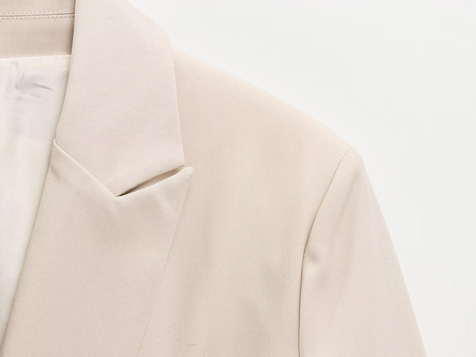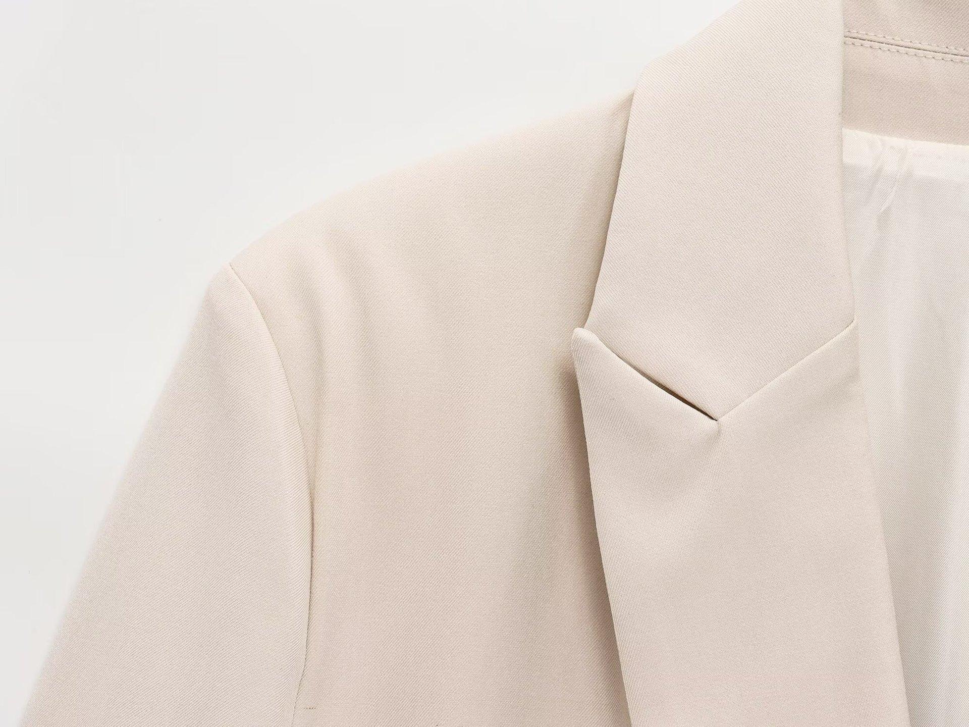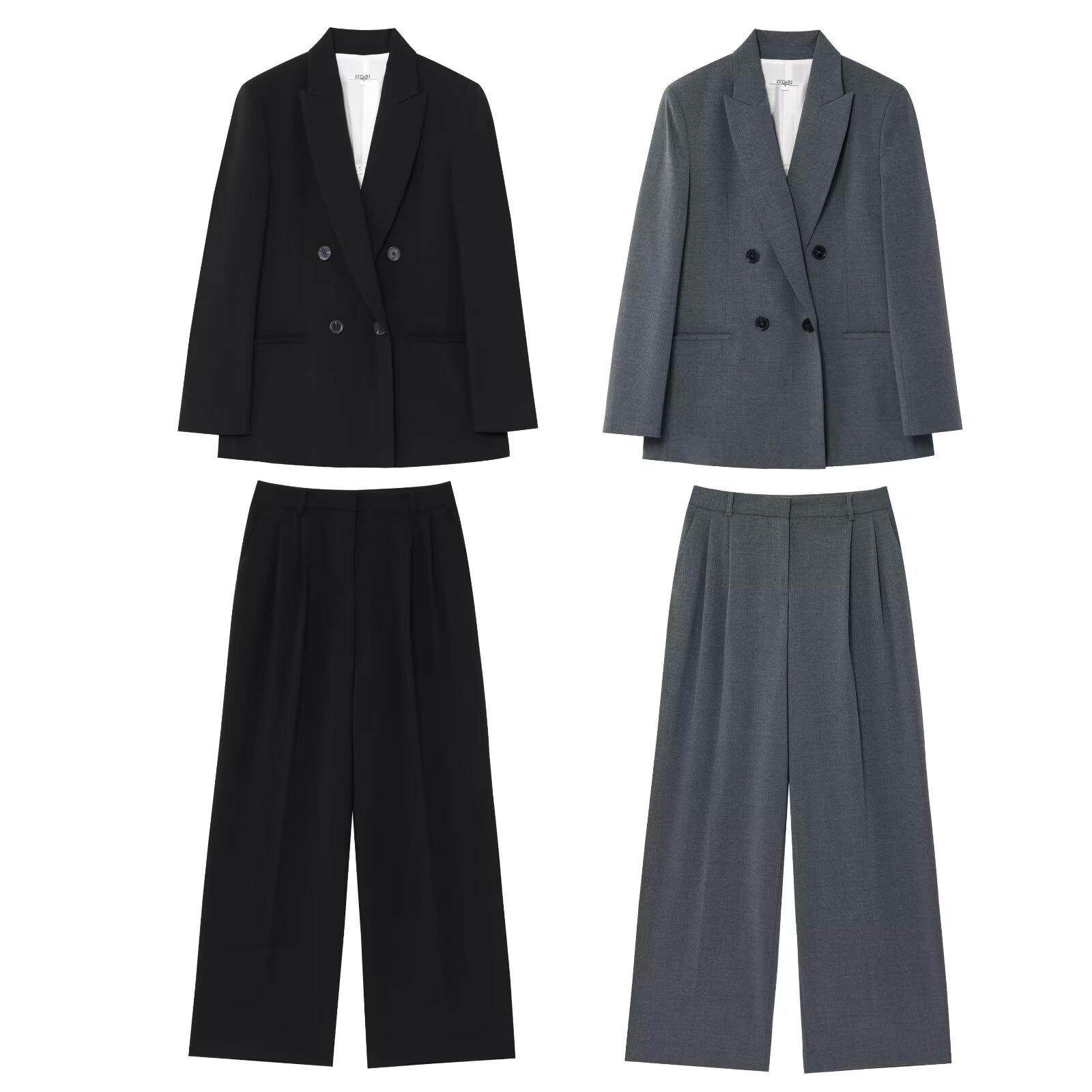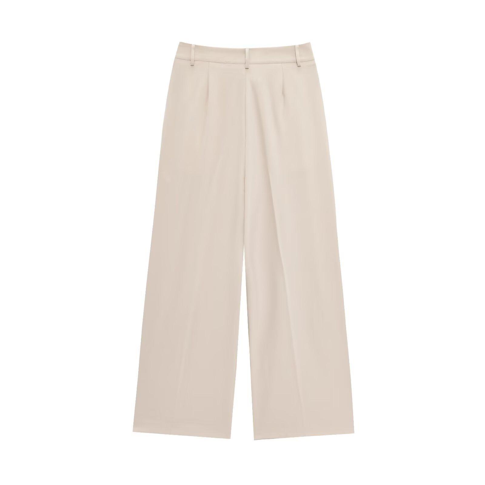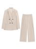 Conjunto de Blazer Cruzado con Hombros Acolchados Estilo Europeo y Americano de Verano 2025 + Pantalones Plisados de Pierna Ancha