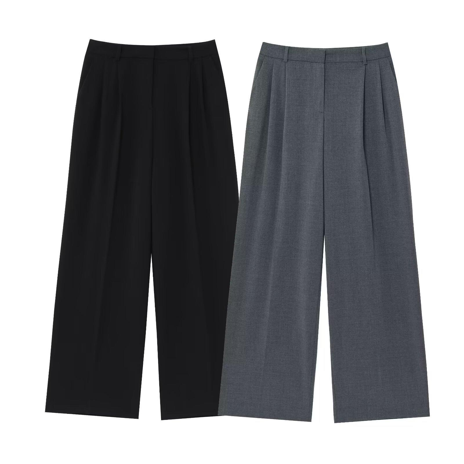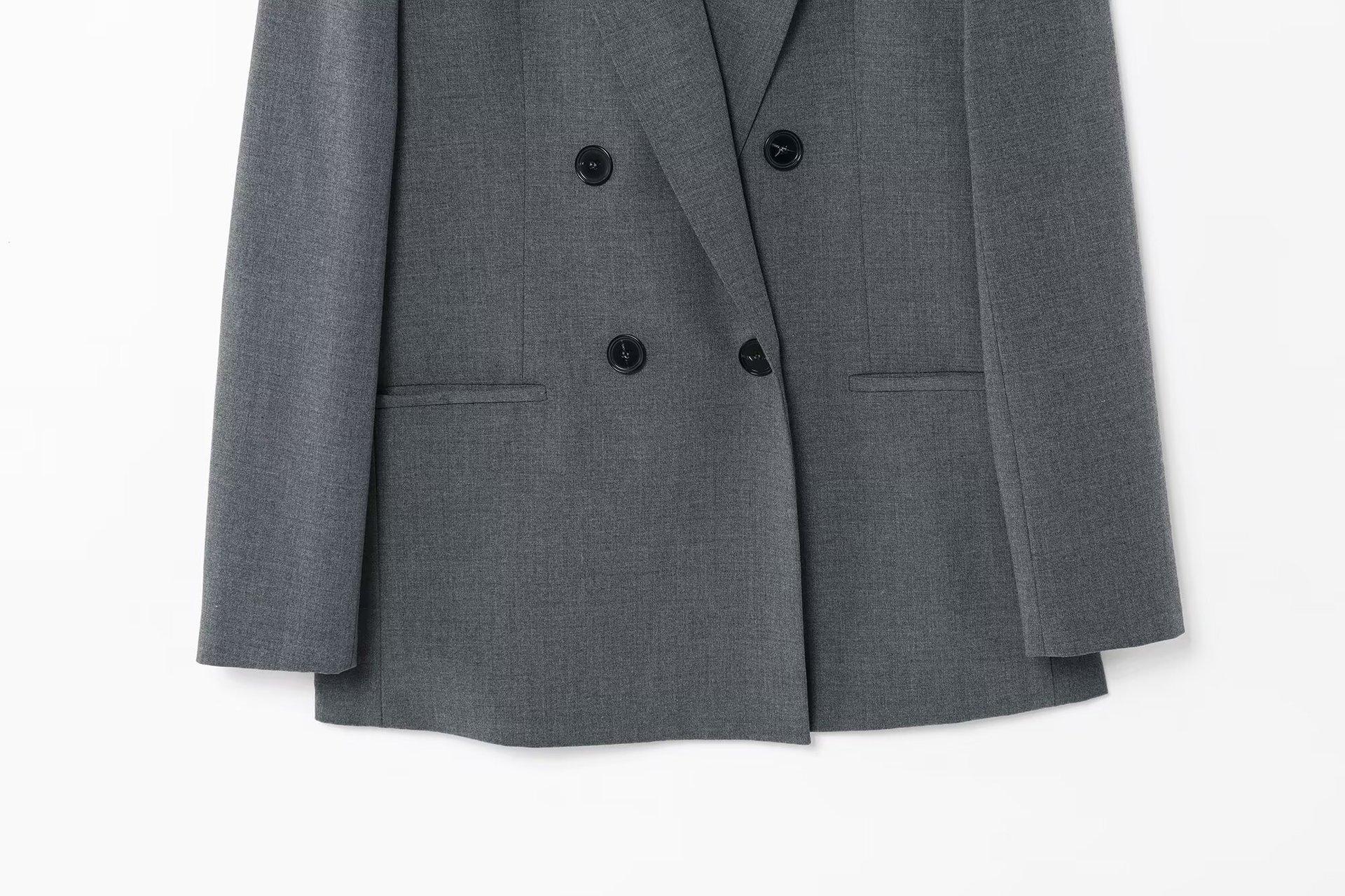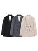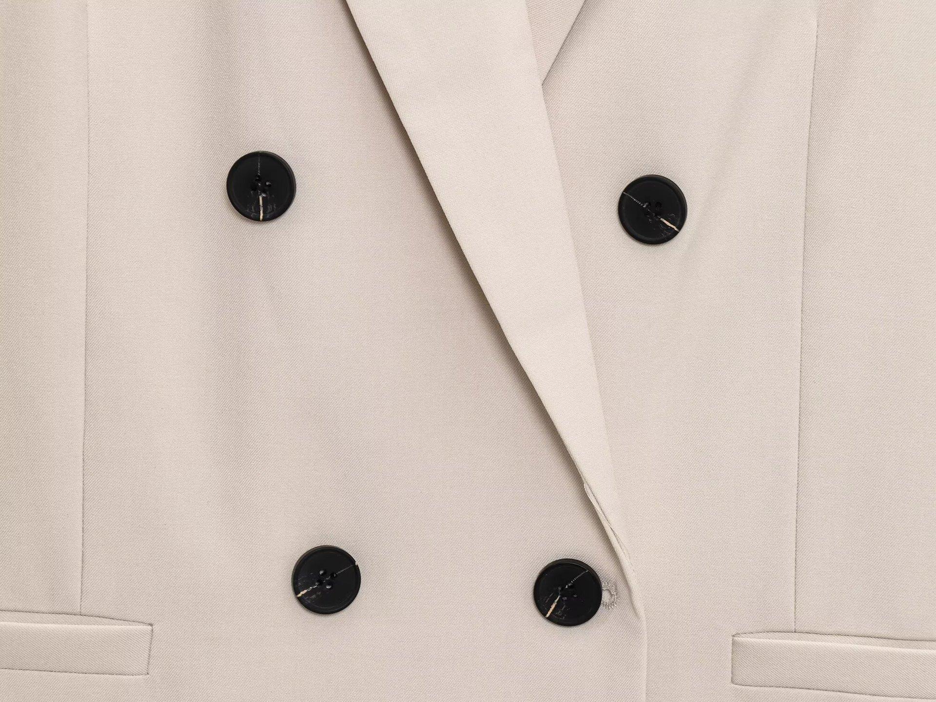 Conjunto de Blazer Cruzado con Hombros Acolchados Estilo Europeo y Americano de Verano 2025 + Pantalones Plisados de Pierna Ancha