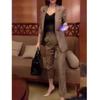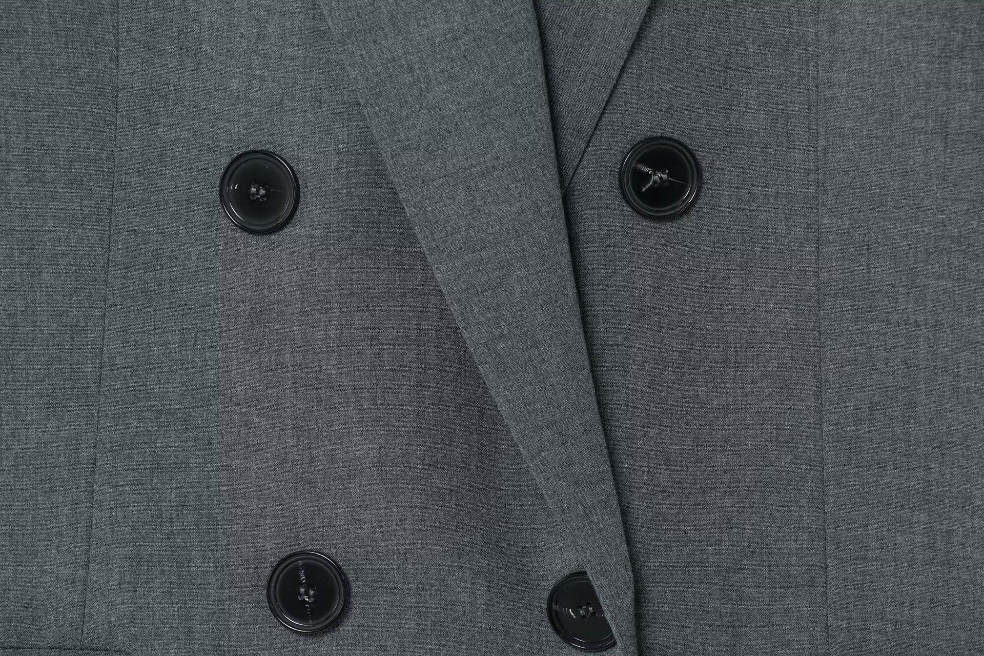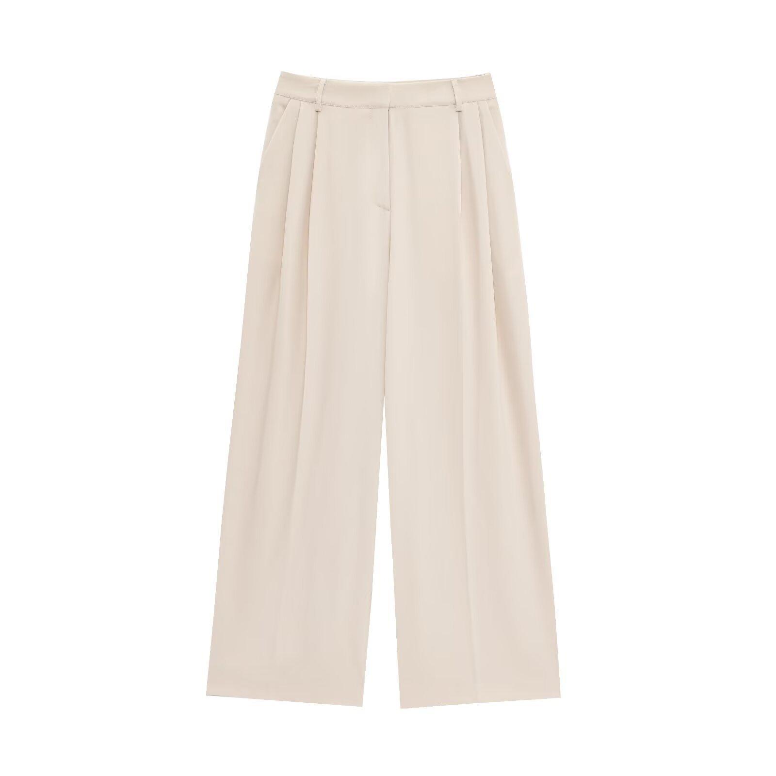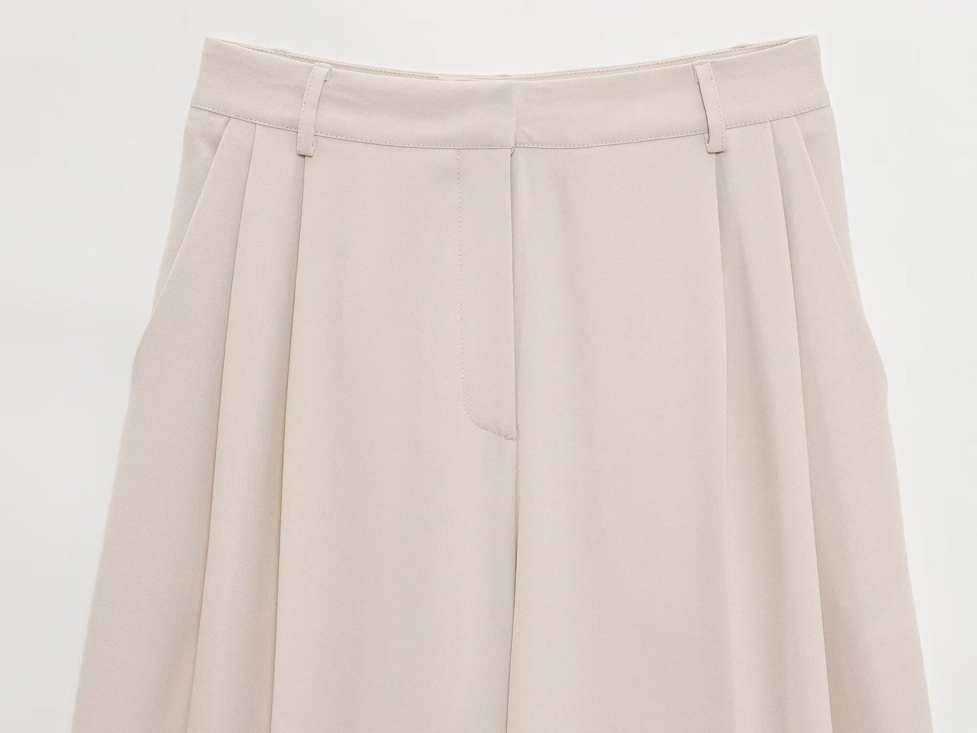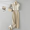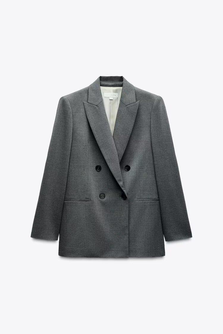 Conjunto de Blazer Cruzado con Hombros Acolchados Estilo Europeo y Americano de Verano 2025 + Pantalones Plisados de Pierna Ancha