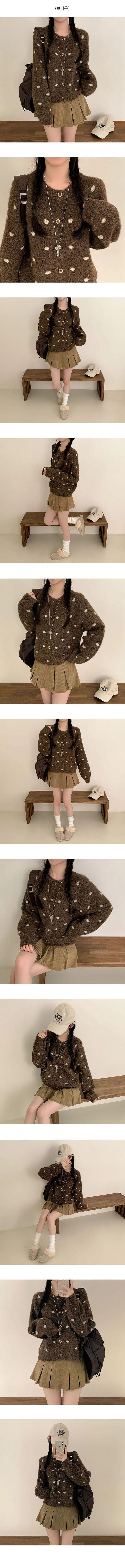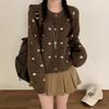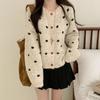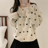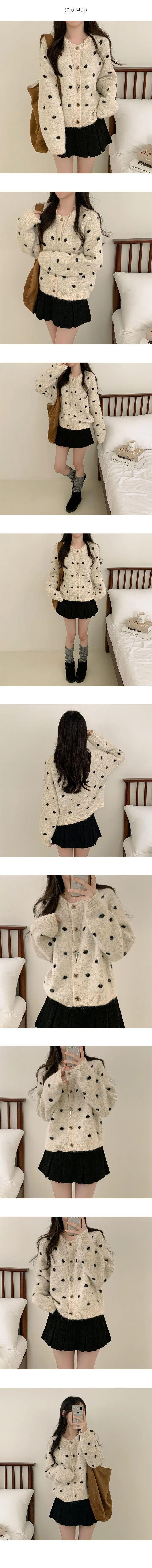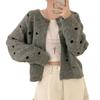 Temperamento chic coreano otoño e invierno nuevo bloque de color retro lunares cuello redondo tejido suelto versátil suéter abrigo mujeres