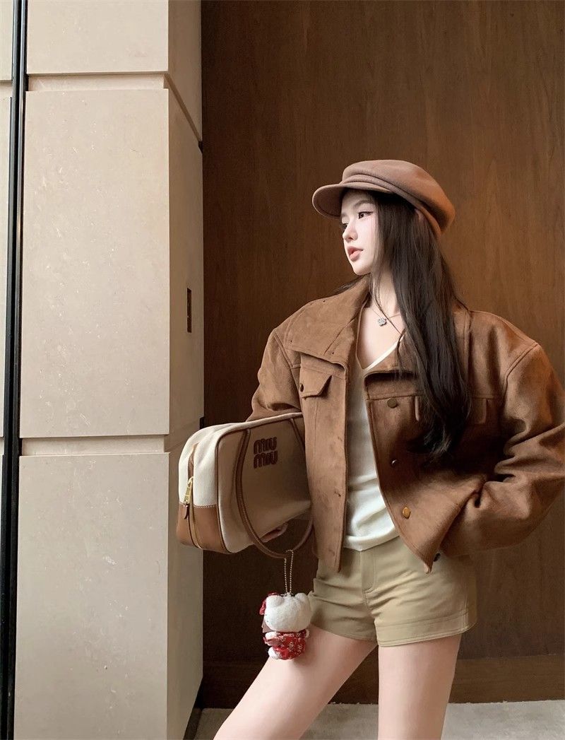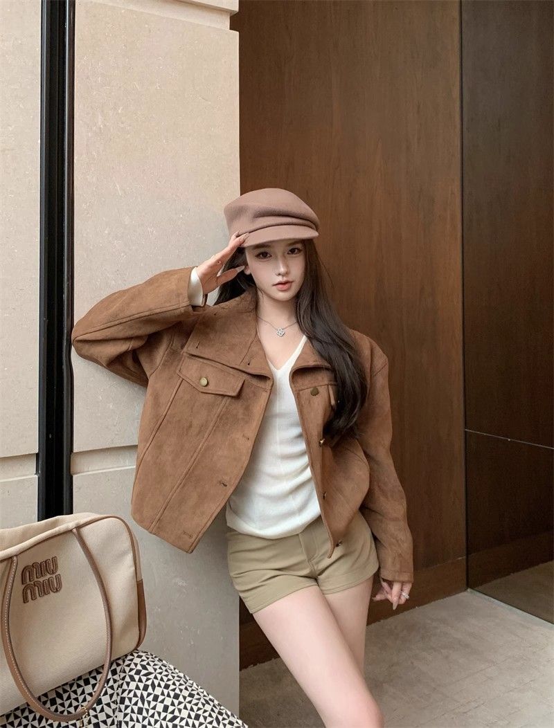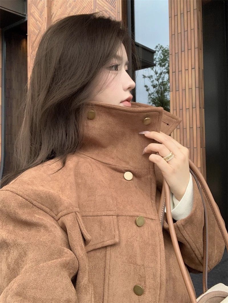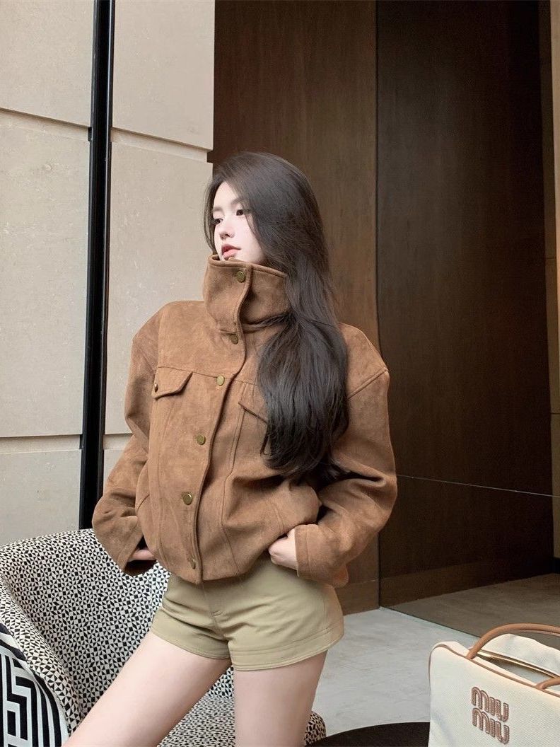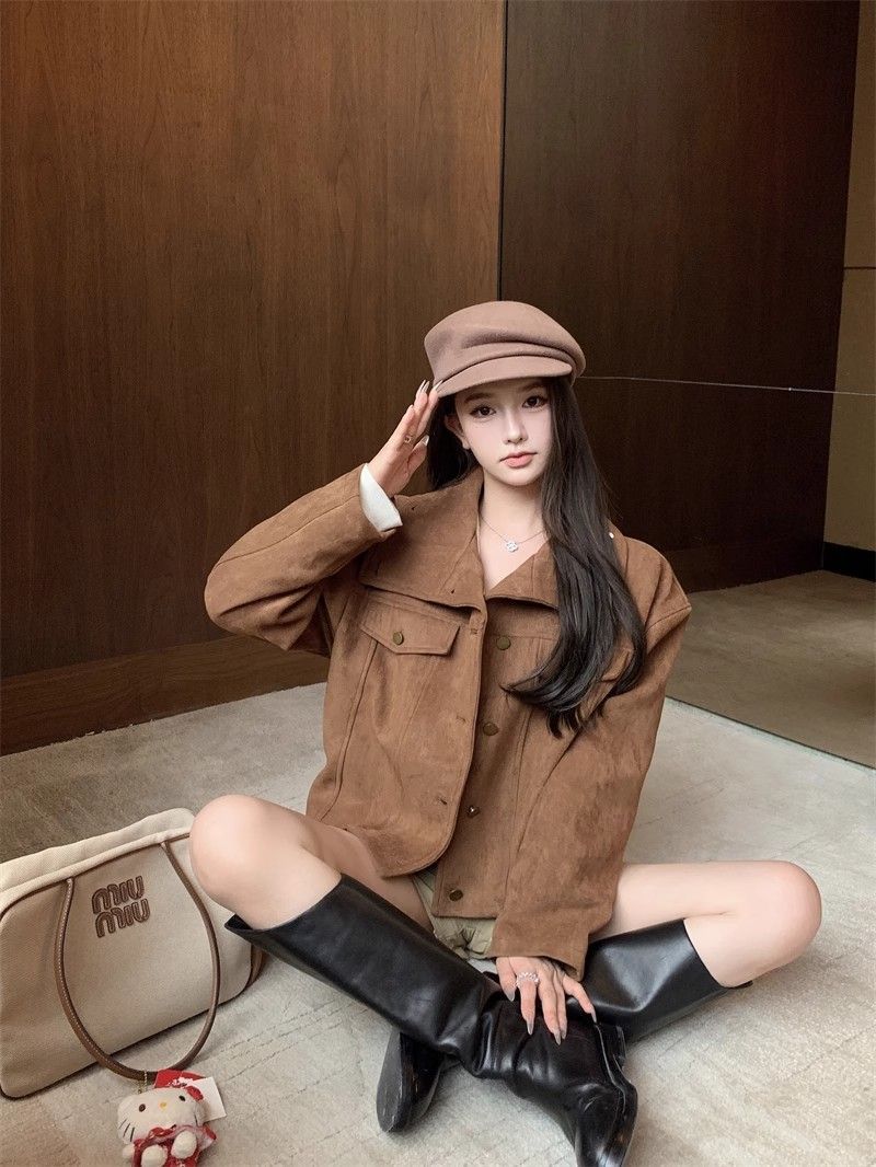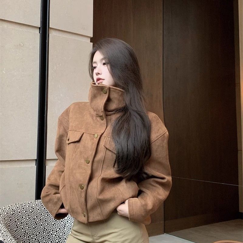 Chaqueta Retro Americana Myllard Manga Larga Abrigo de Gamuza Suelto para Viajar Primavera y Otoño Nuevo Top Casual Versátil