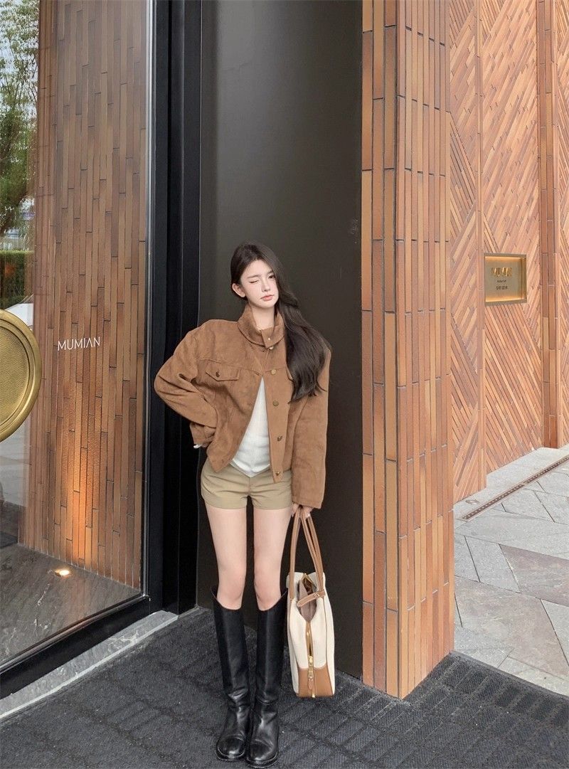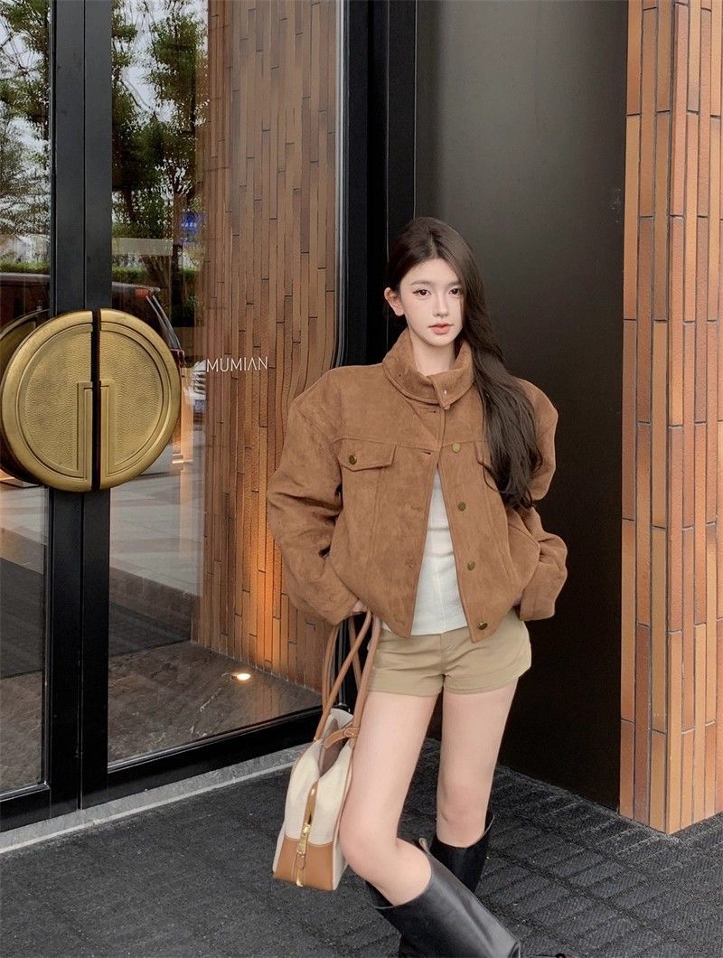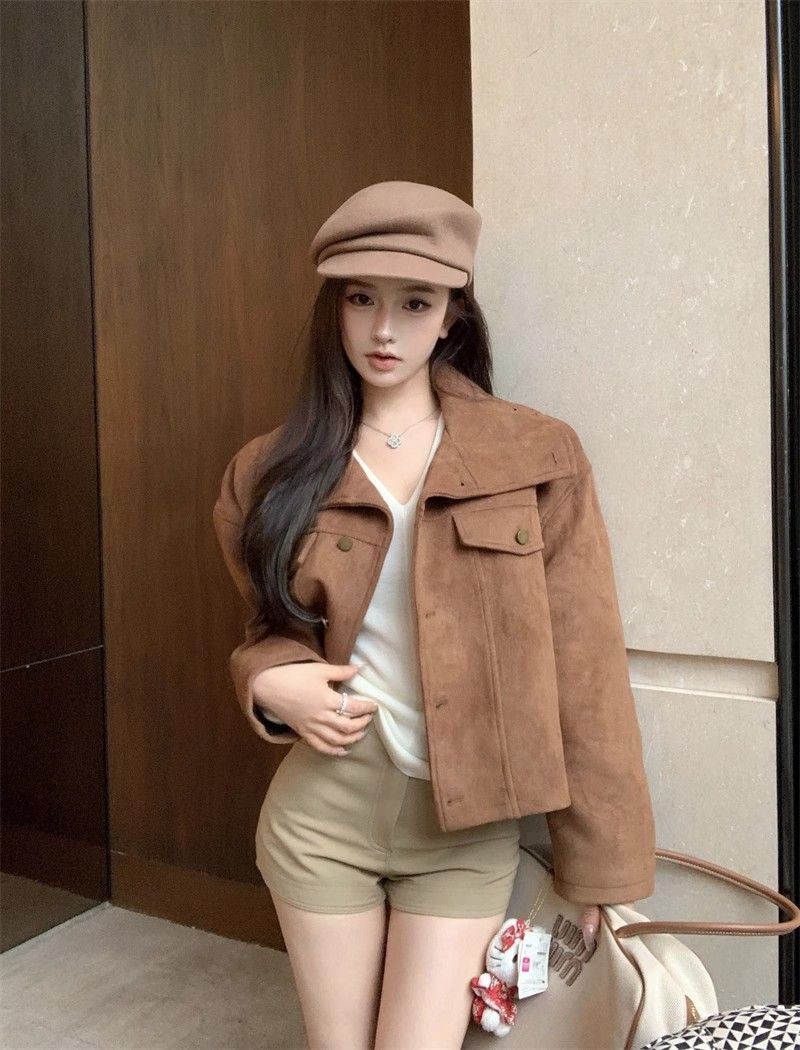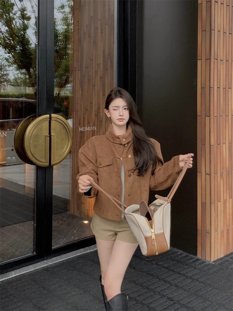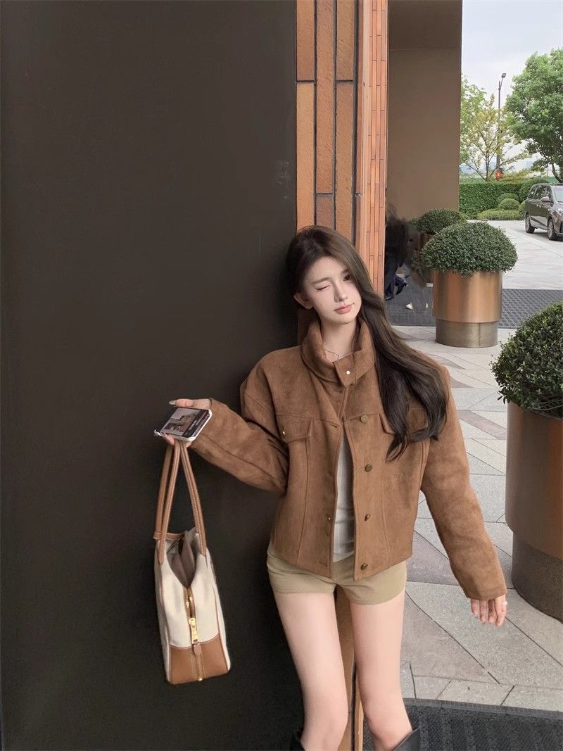 Chaqueta Retro Americana Myllard Manga Larga Abrigo de Gamuza Suelto para Viajar Primavera y Otoño Nuevo Top Casual Versátil