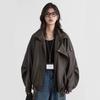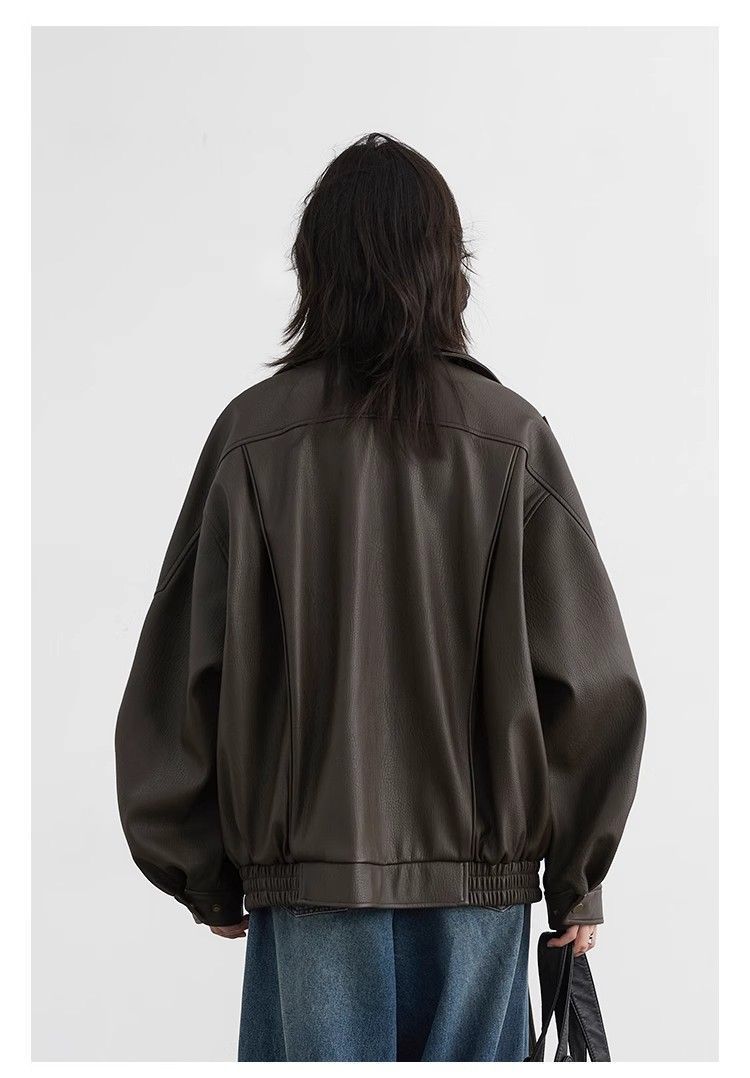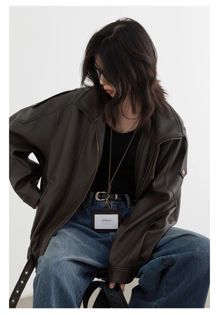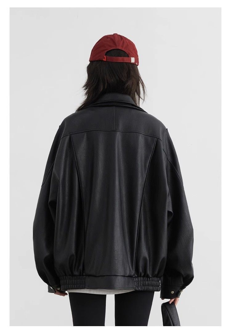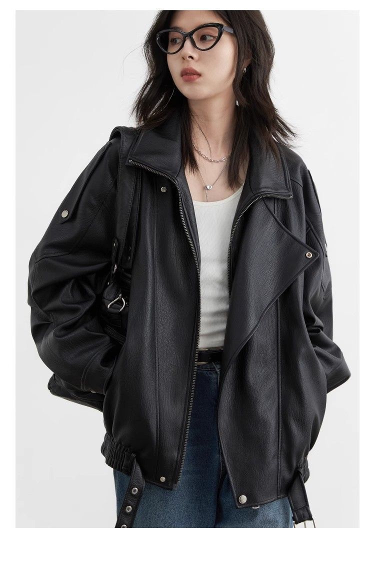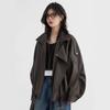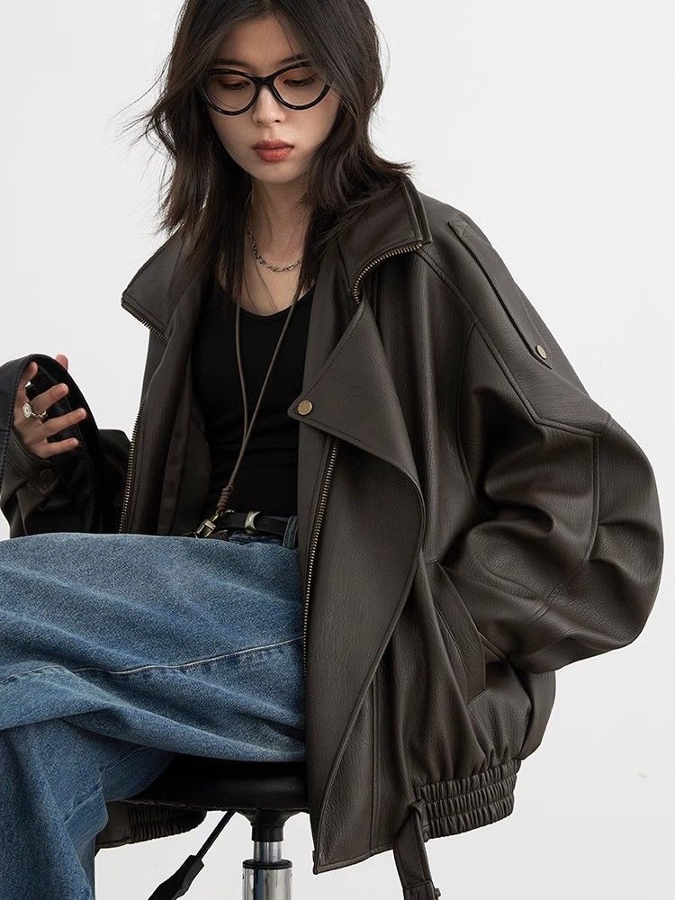 Chaqueta de Cuero Biker Retro de Moda con Cuello Mao para Mujer 2025 Primavera Nuevo Estilo Motociclista Chaqueta de PU