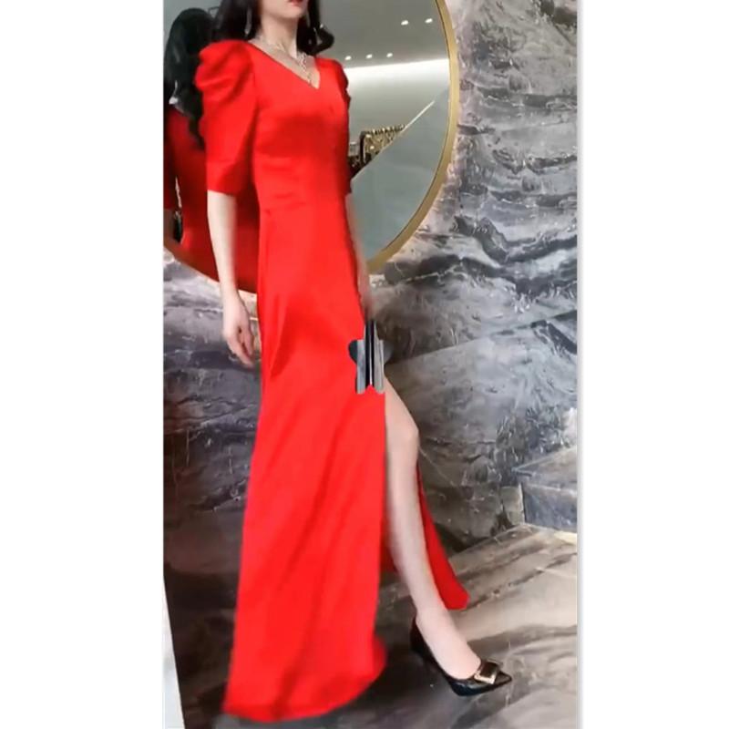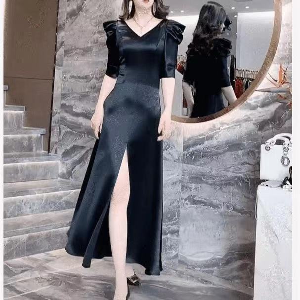 Cabello 9096 Gran Belleza Yiyuan 2023 Verano Nuevo Moda Coreana Vestido Ajustado Abertura Vestido Largo para Mujer Aspecto Delgado