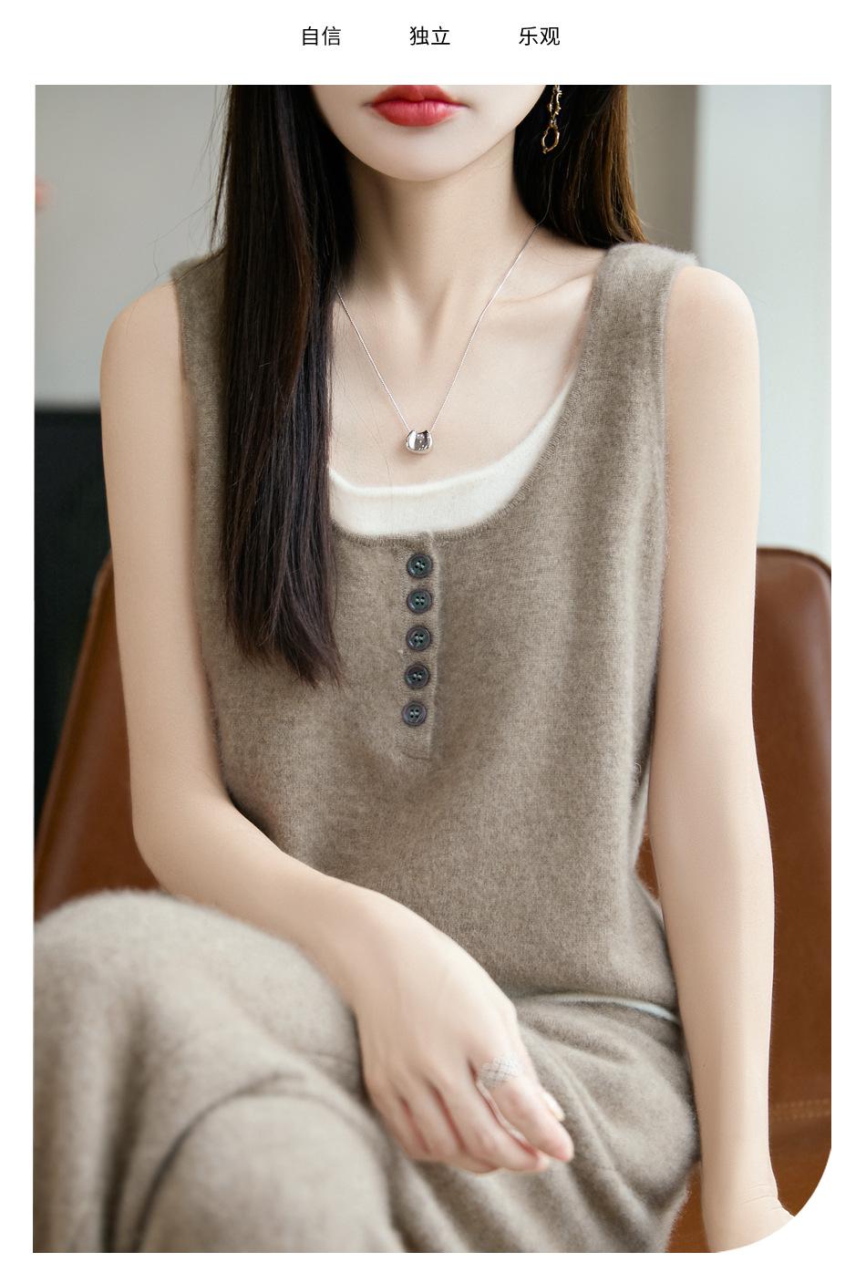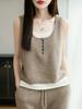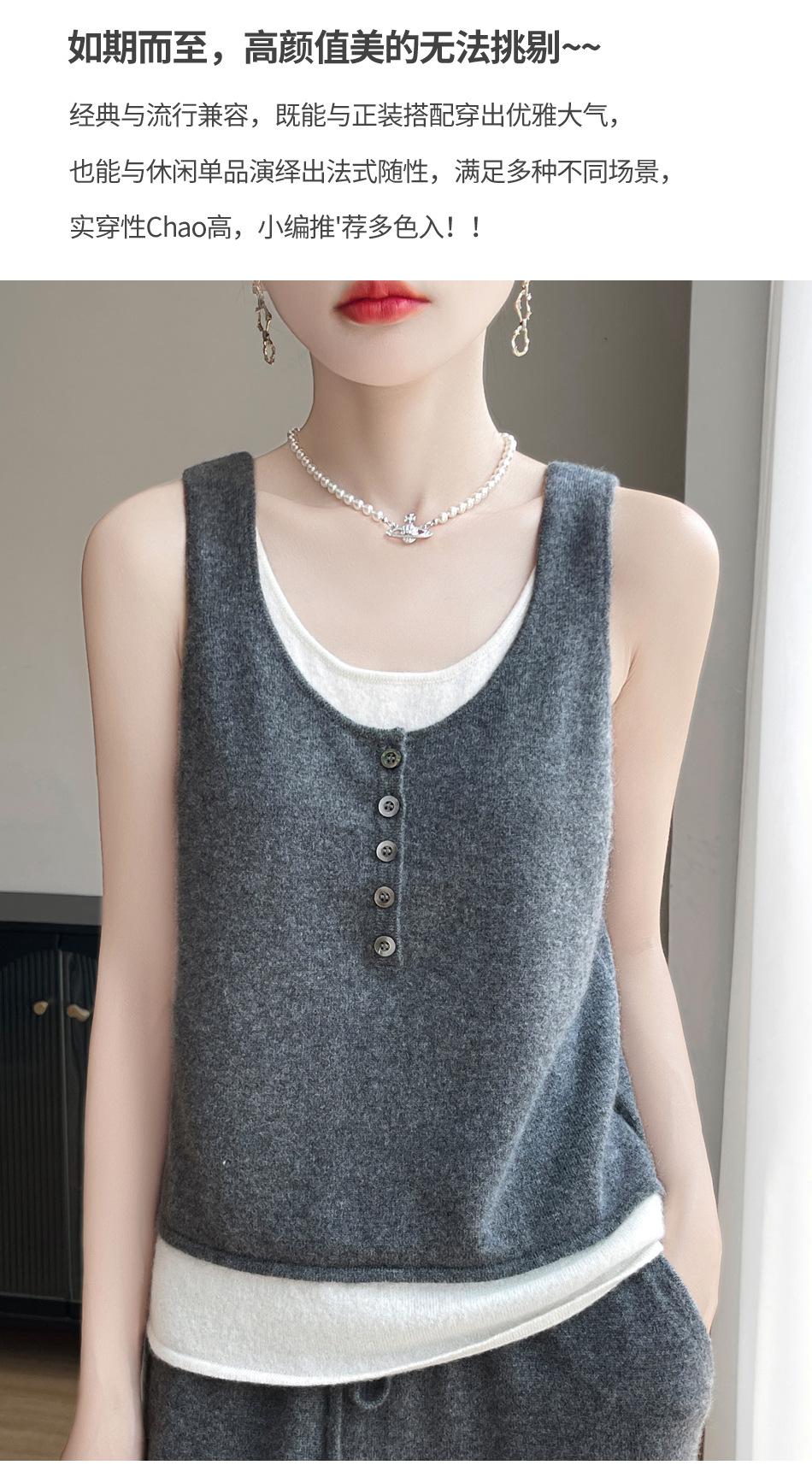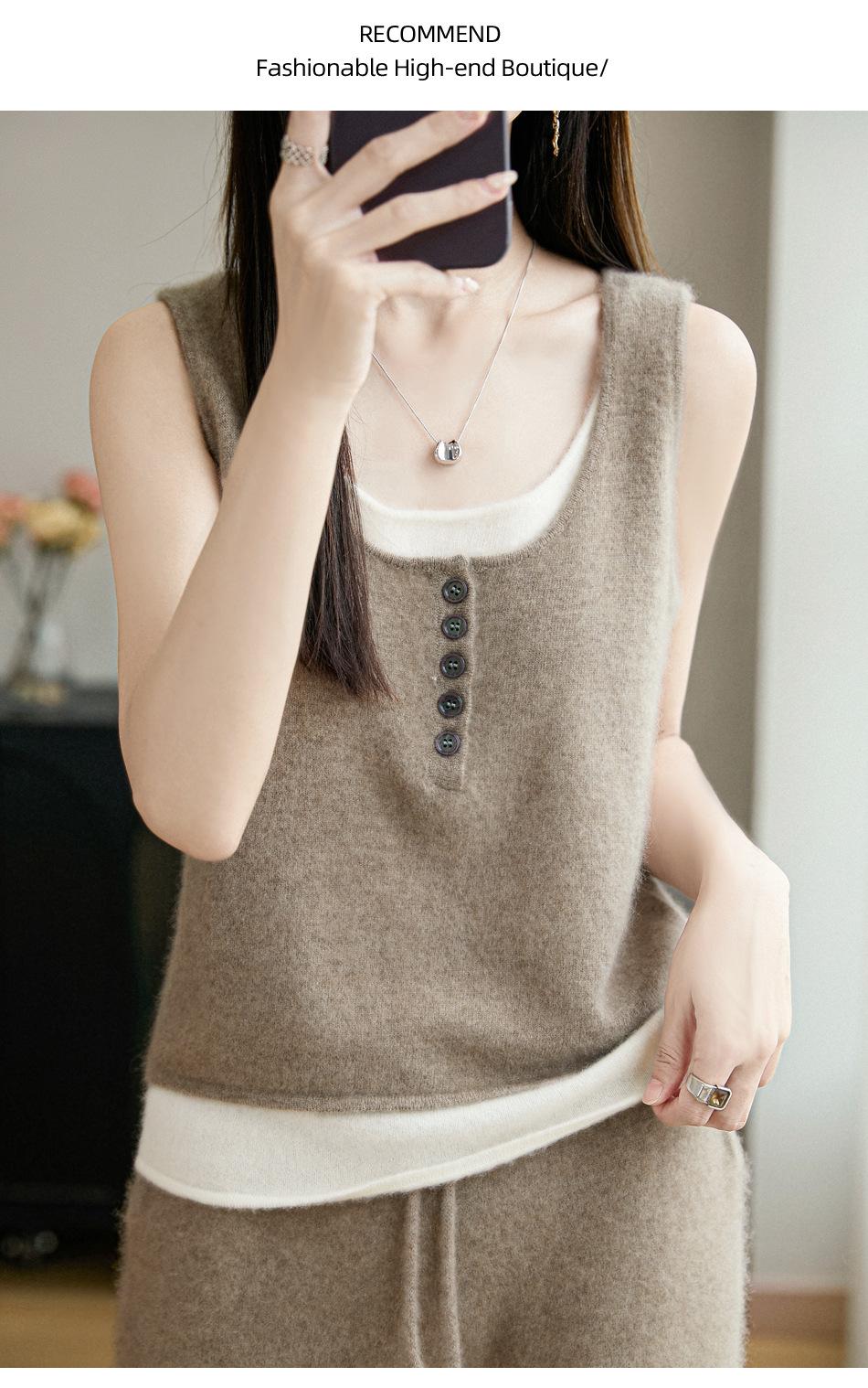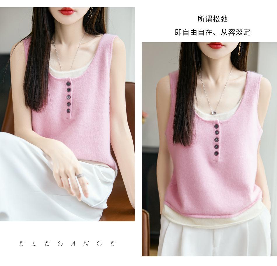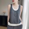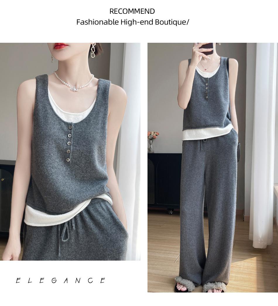 Chaleco de Lana 100% de Dos Piezas Falso para Mujer Otoño Invierno Doble Capa Tejido de Lana Capa Interior Versátil Adelgazante Suéter para Exterior