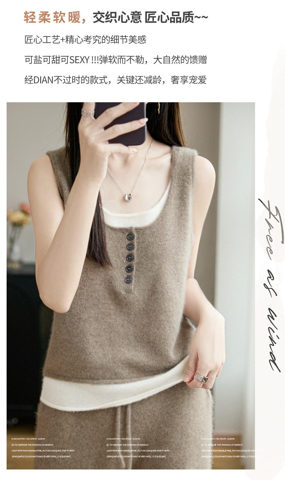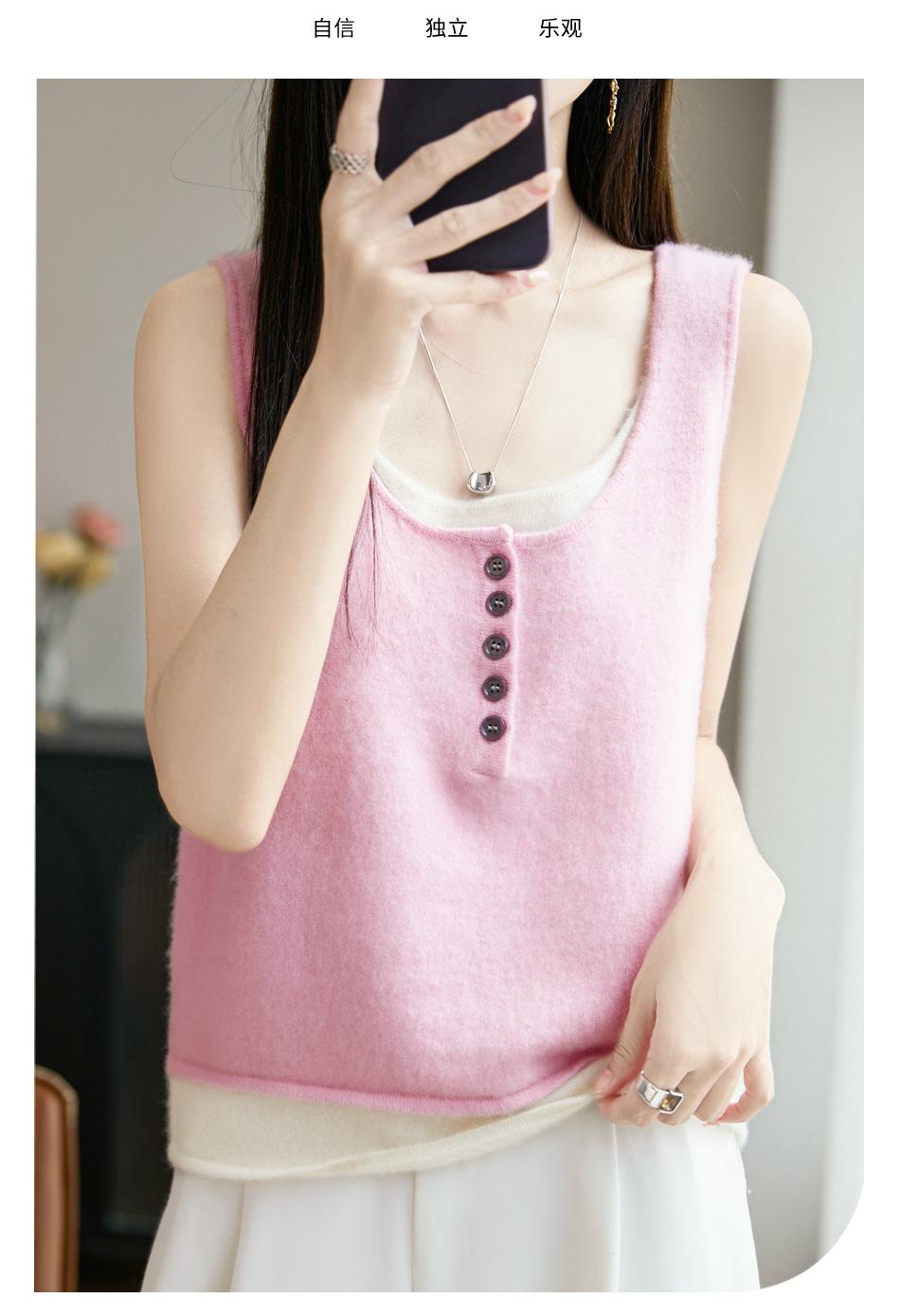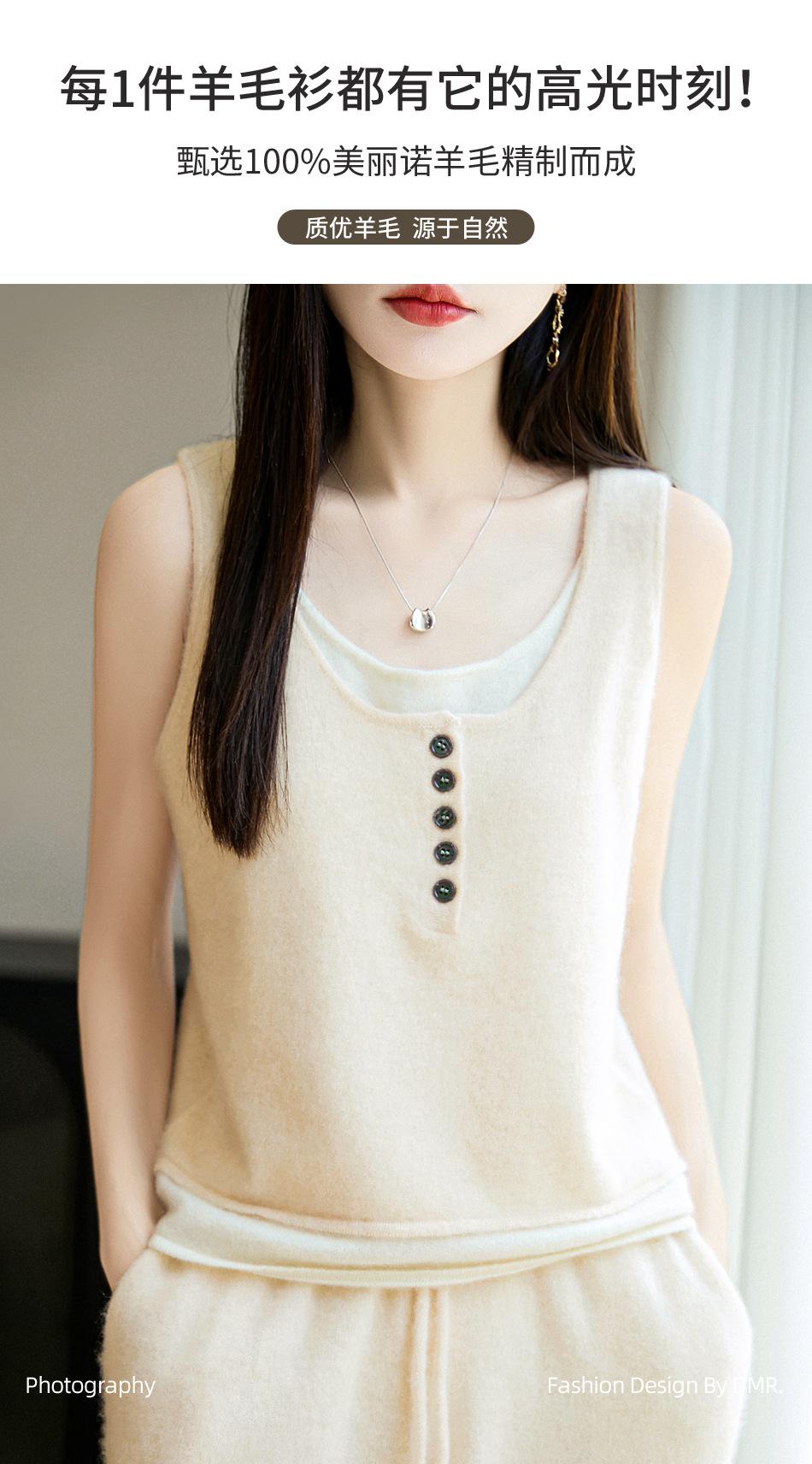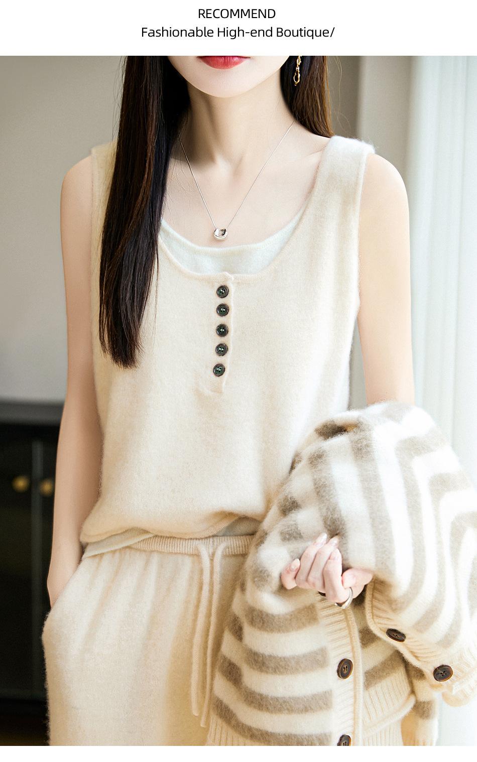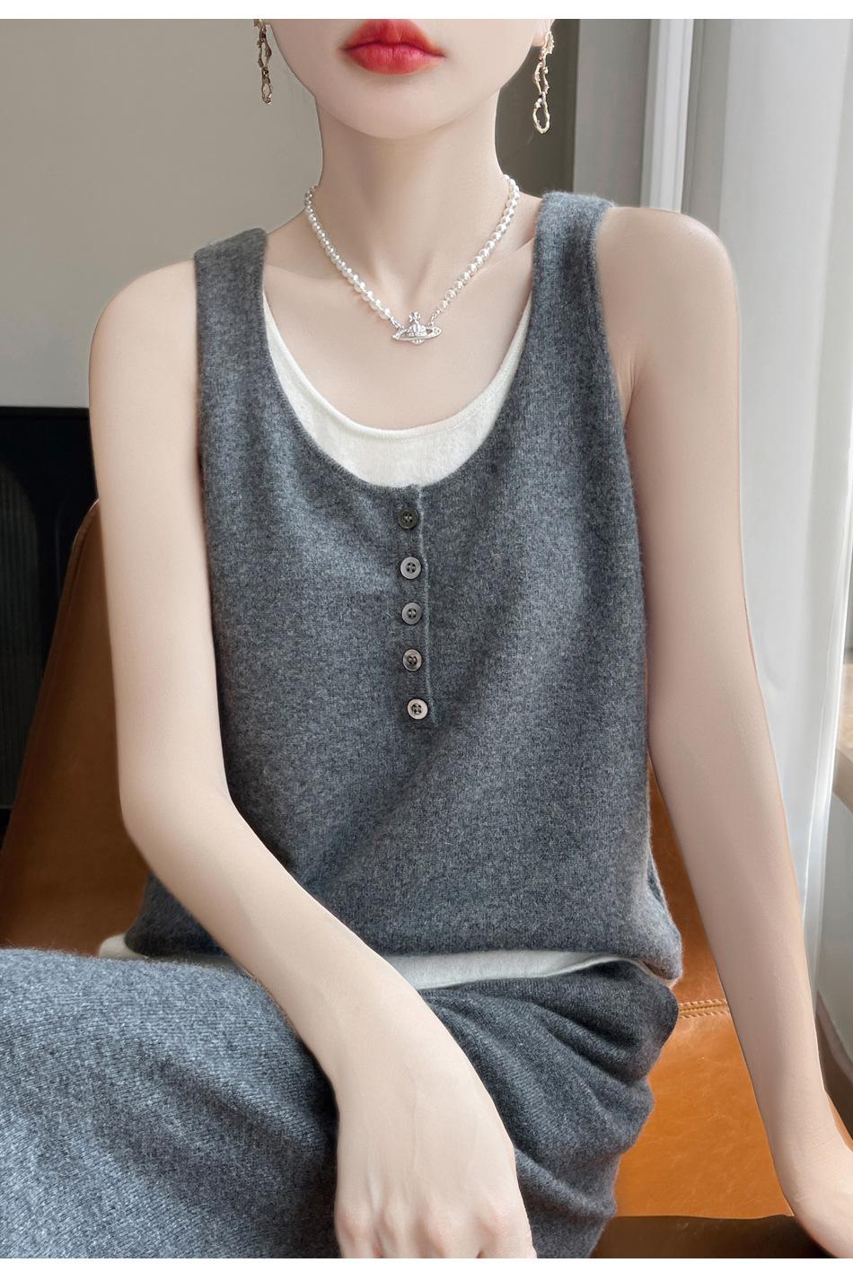 Chaleco de Lana 100% de Dos Piezas Falso para Mujer Otoño Invierno Doble Capa Tejido de Lana Capa Interior Versátil Adelgazante Suéter para Exterior