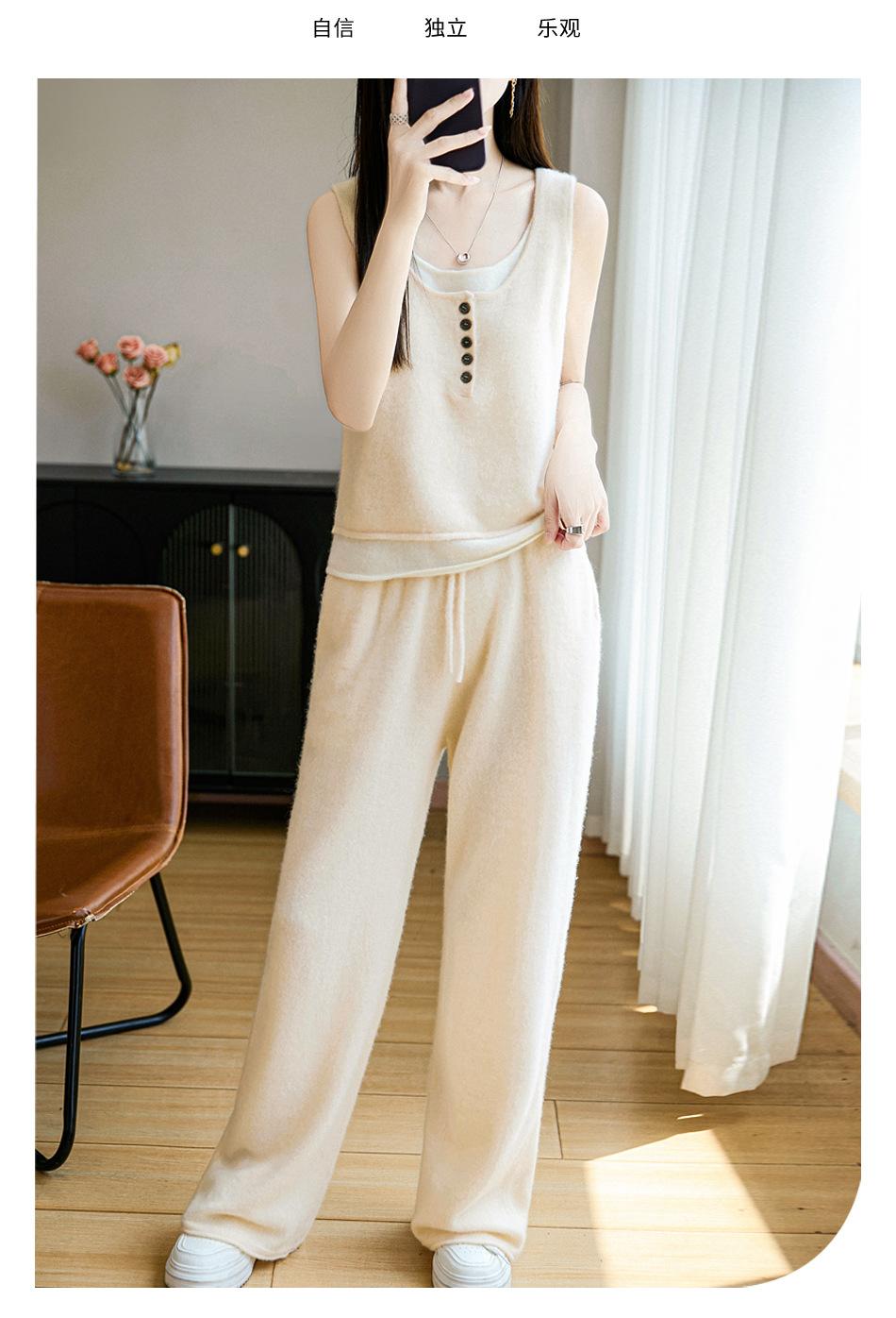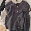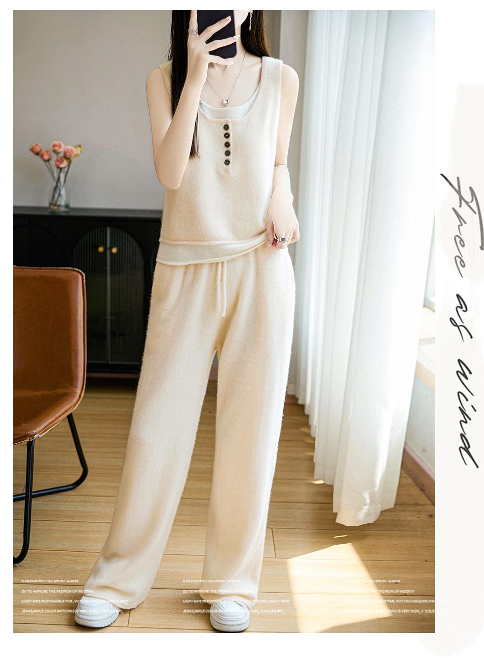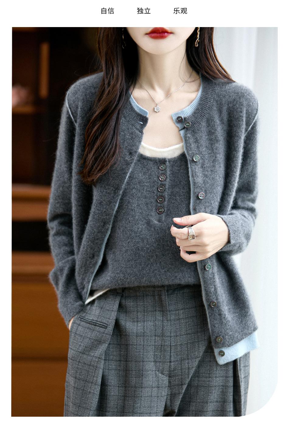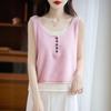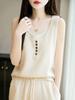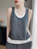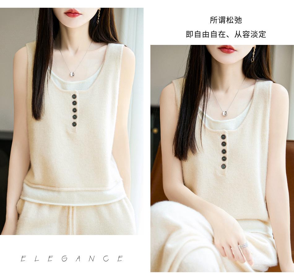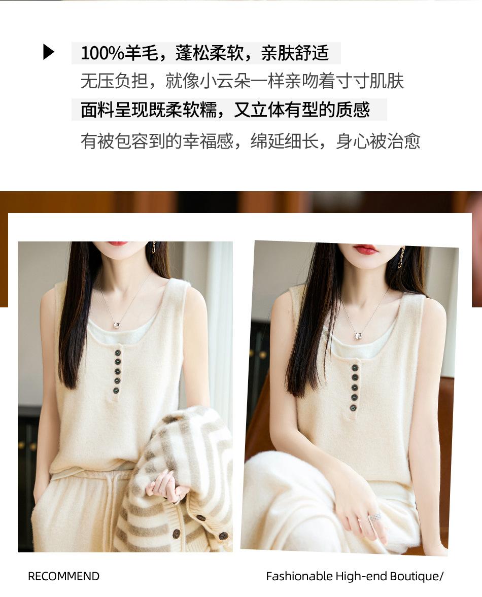 Chaleco de Lana 100% de Dos Piezas Falso para Mujer Otoño Invierno Doble Capa Tejido de Lana Capa Interior Versátil Adelgazante Suéter para Exterior