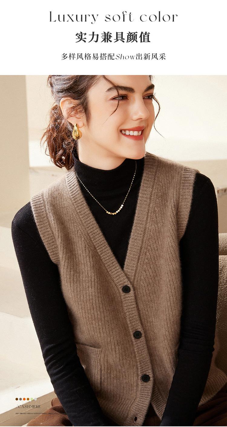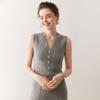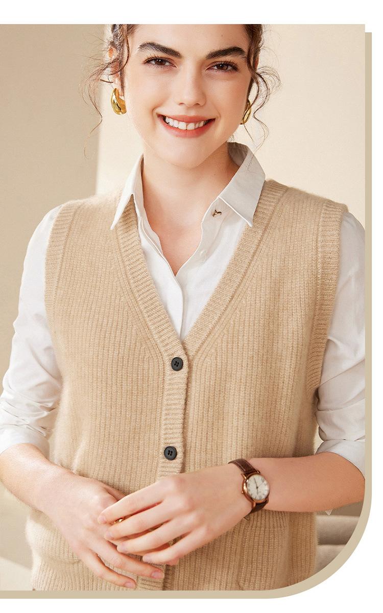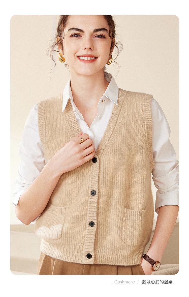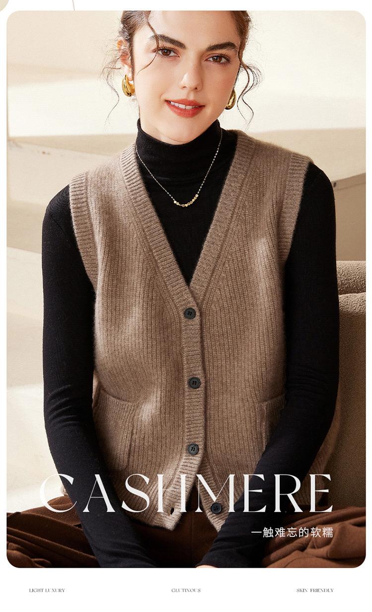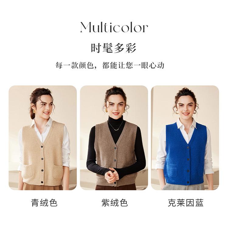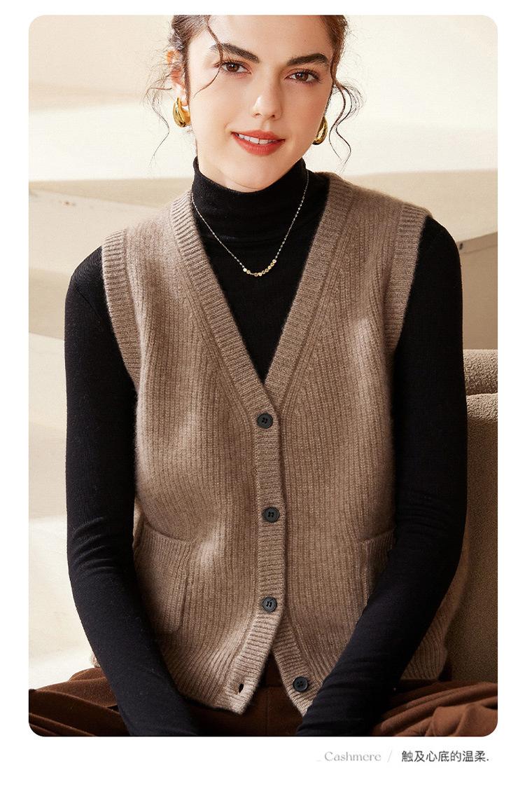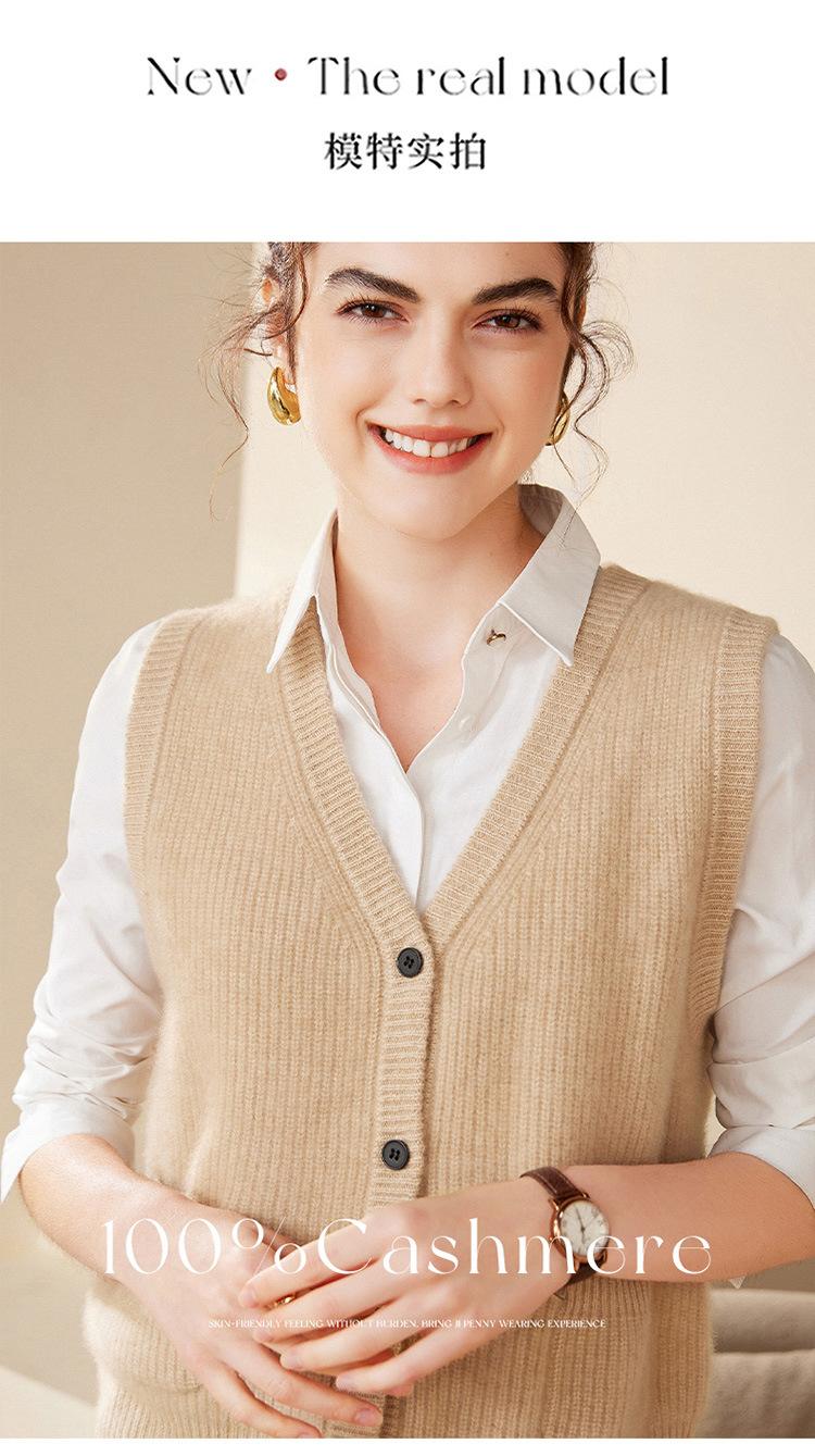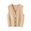 Nuevo Otoño/Invierno Chaleco de Punto 100% Cachemira Moda Color Sólido con Hebilla Camiseta sin Mangas para Capas Color Sólido Top de Mujer