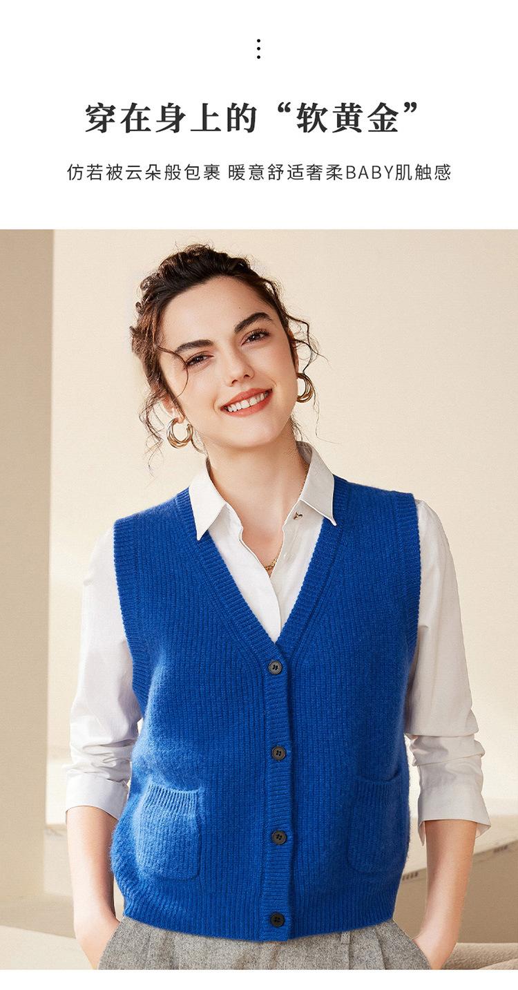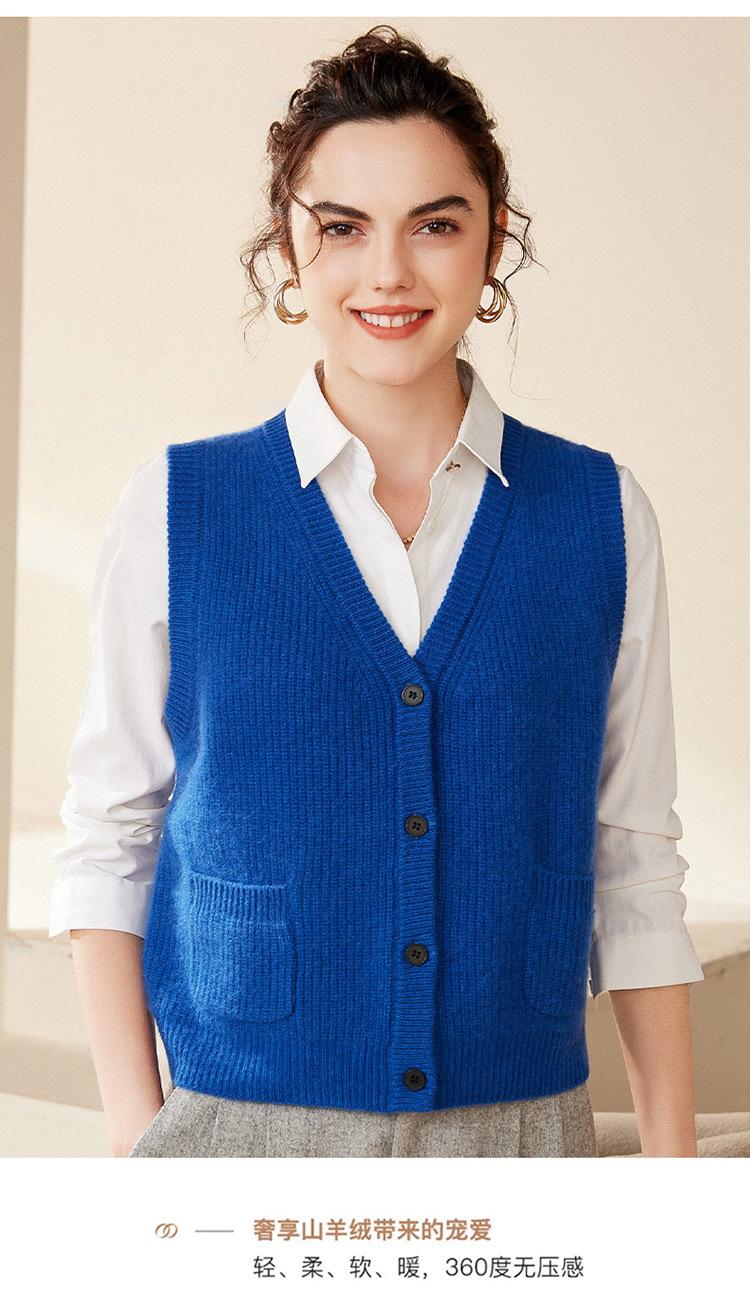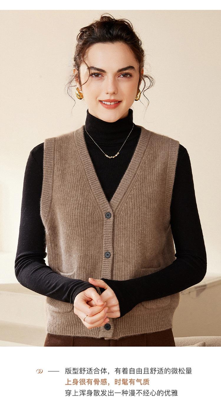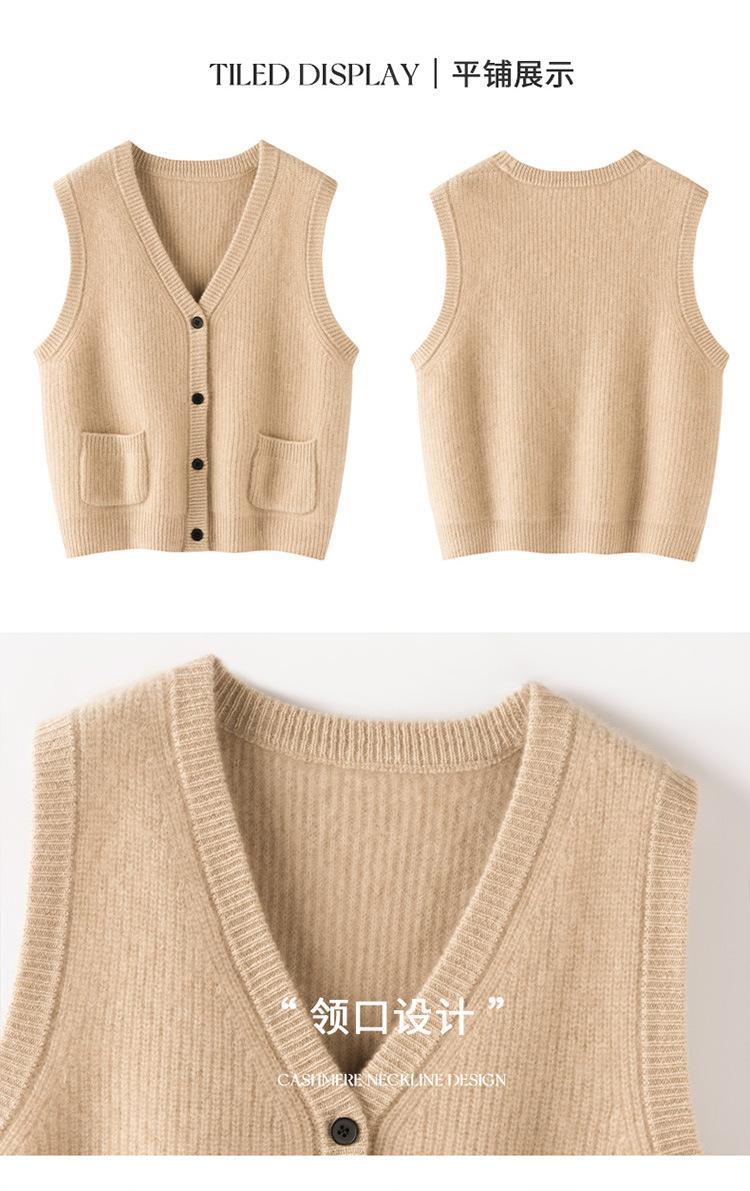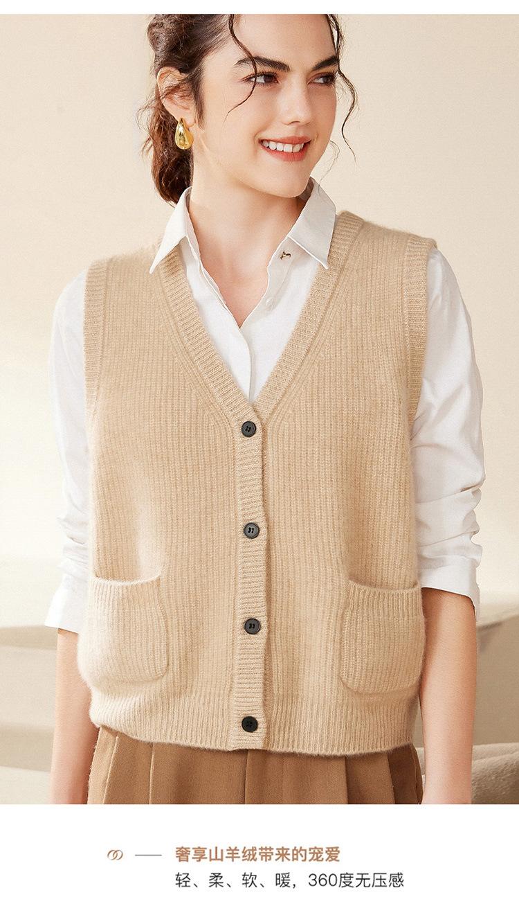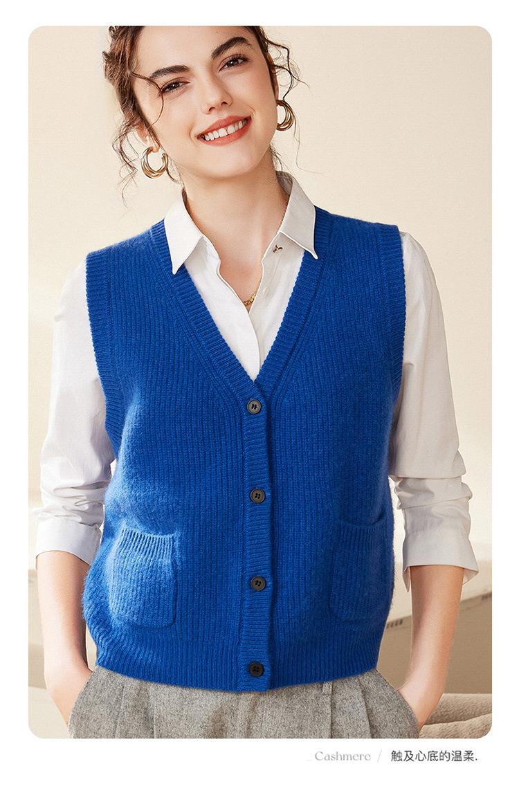 Nuevo Otoño/Invierno Chaleco de Punto 100% Cachemira Moda Color Sólido con Hebilla Camiseta sin Mangas para Capas Color Sólido Top de Mujer