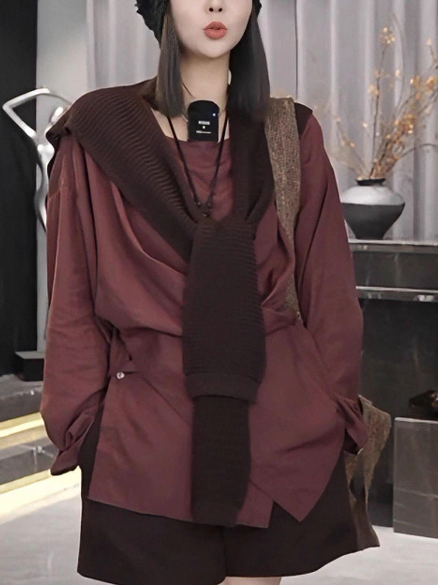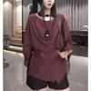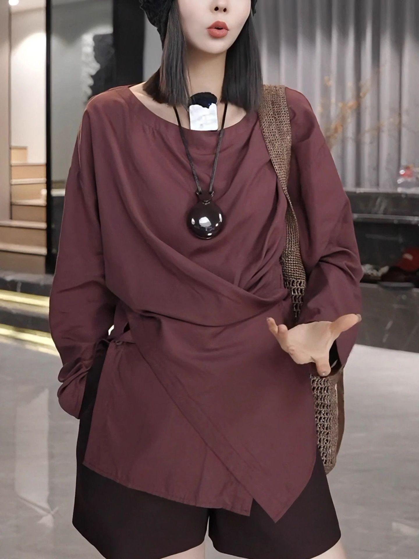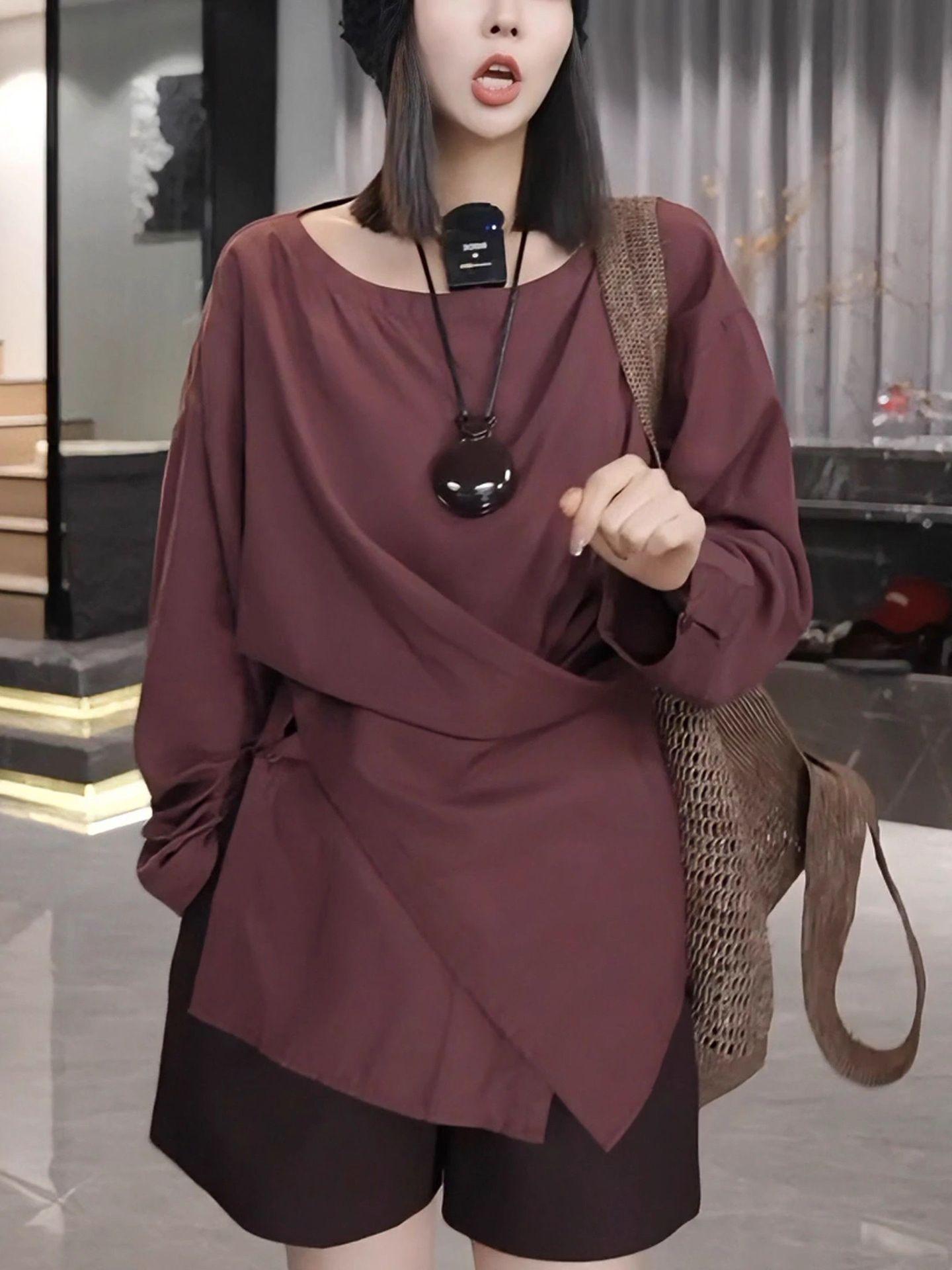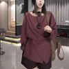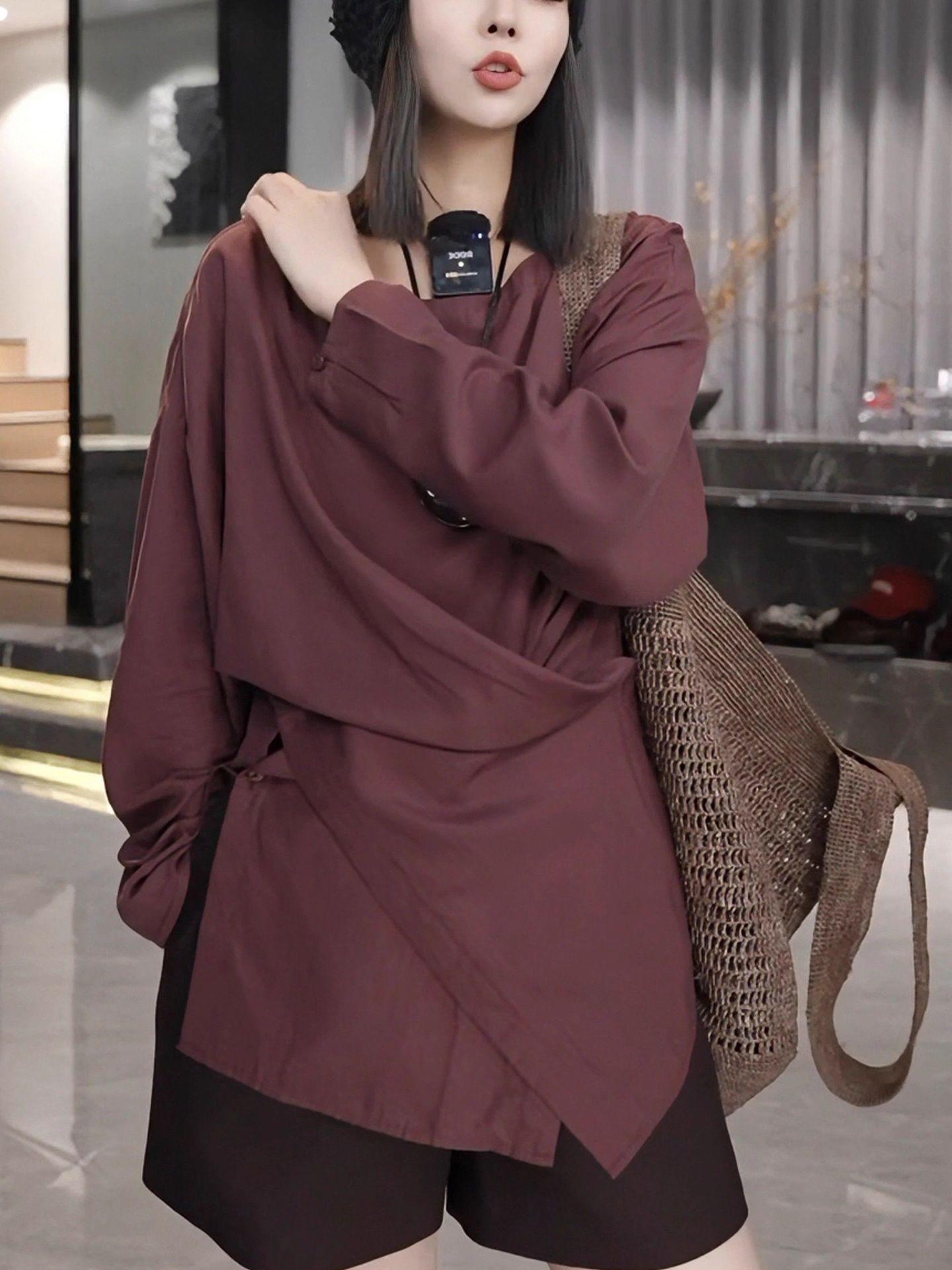 Temperamento de estilo ligeramente maduro irregular principios de otoño camisa pequeña de manga larga para mujer versión coreana nuevo diseño ajustado sentido del diseño estilo extranjero temperamento top