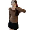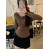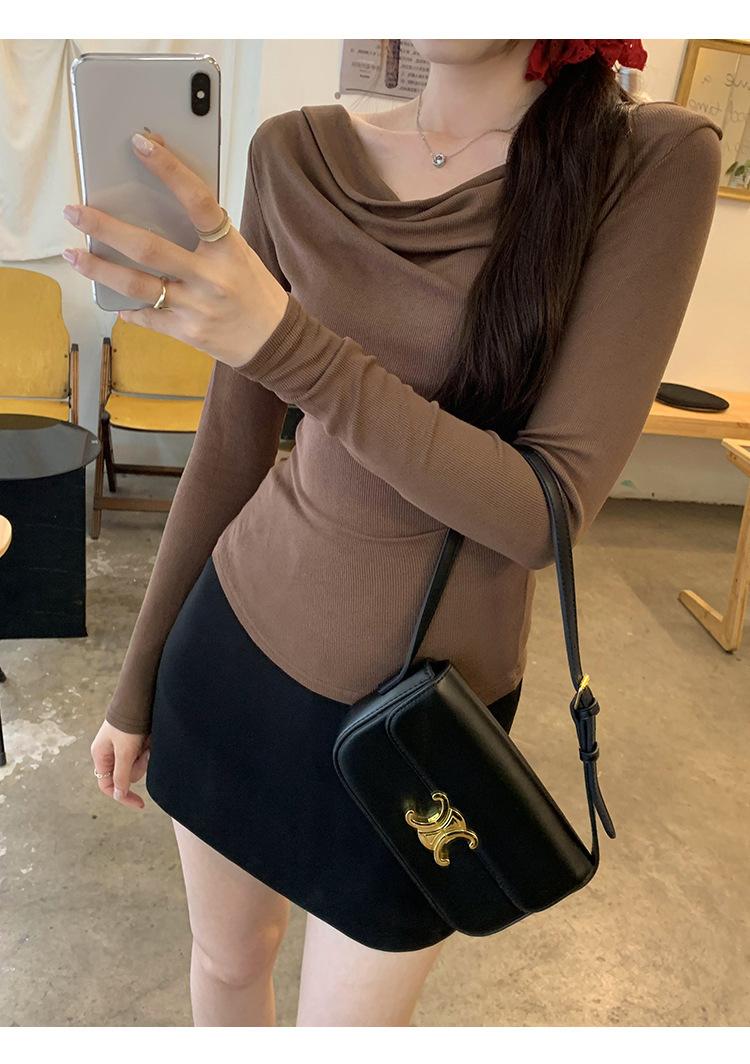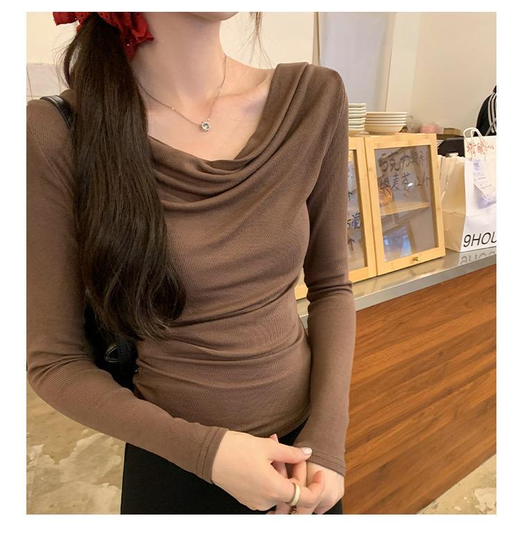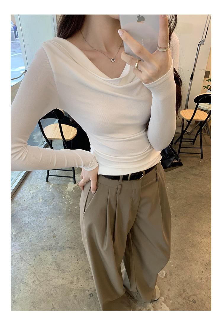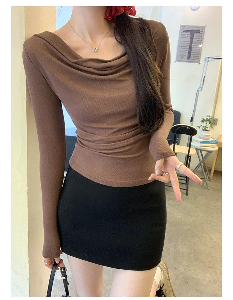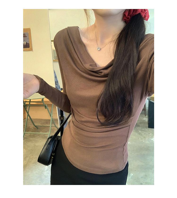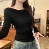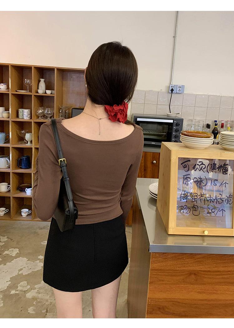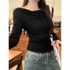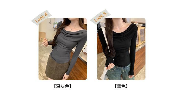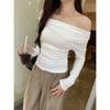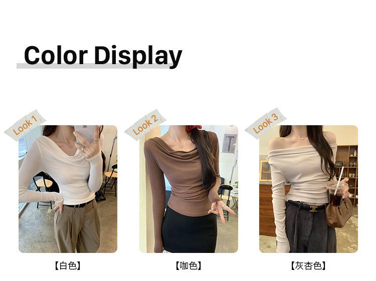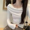 Playera de Manga Larga con Hombros Descubiertos, Cuello Caído, Hombros Fríos, Ajuste Ceñido, Pura y Sexy para Mujer, Primavera Otoño, Temperamento, Top Básico para Chica Hot