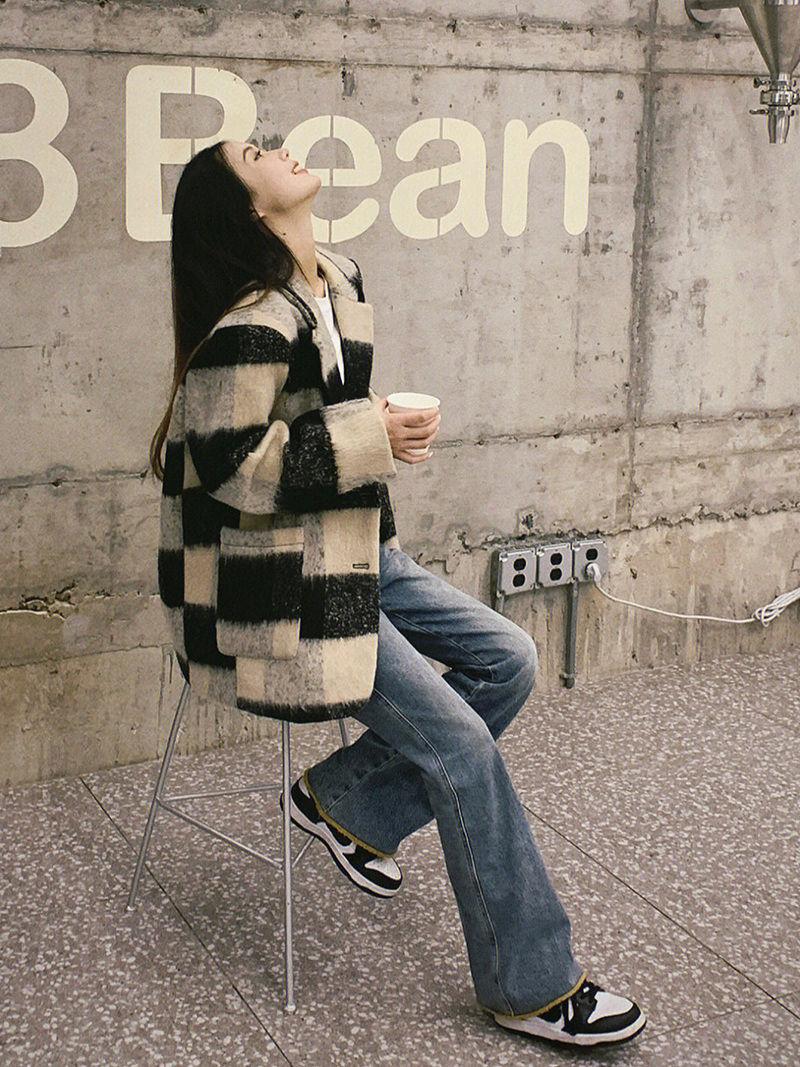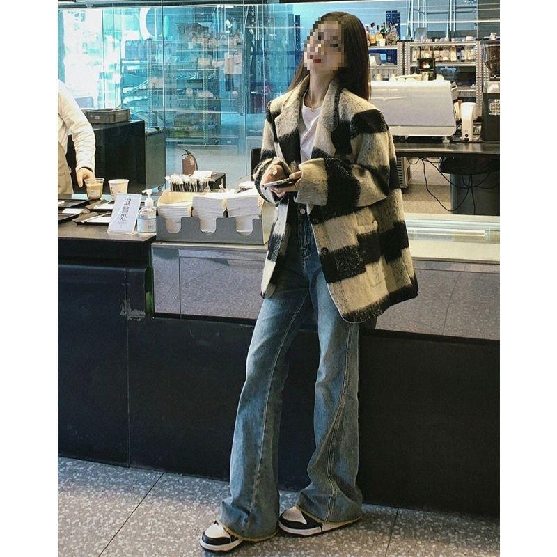 Traje Suelto Americano Retro Lana Tweed Chaqueta Estilo Chanel Mujer Otoño Invierno Grueso 2025 Nuevo Abrigo Blazer Holgado