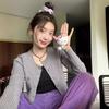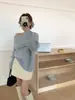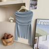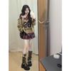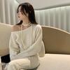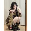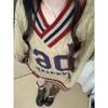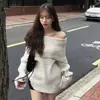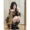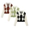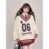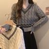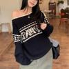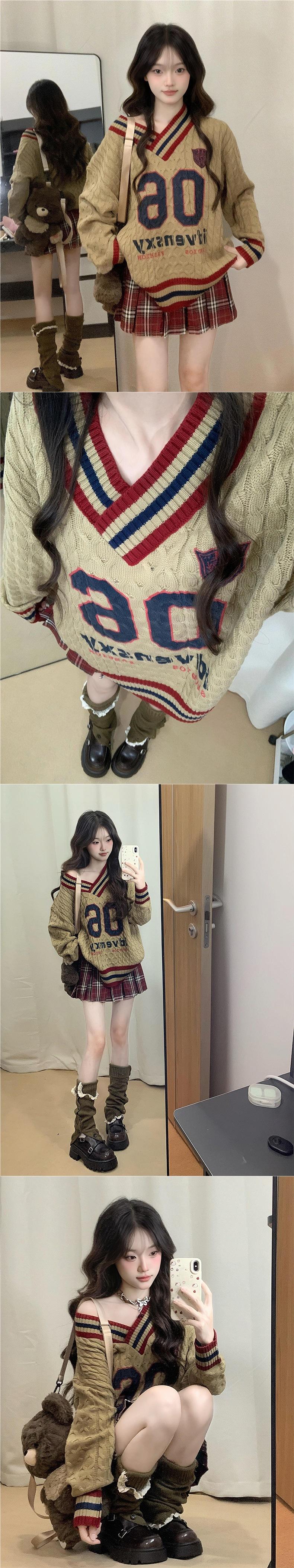 Suéter holgado estilo preppy perezoso con hombros descubiertos de punto grueso de cable para mujer otoño e invierno retro americano holgado cuello en V bloque de color punto