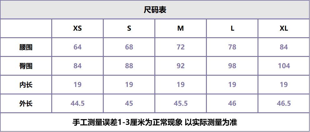 XS, S, M, L, XL