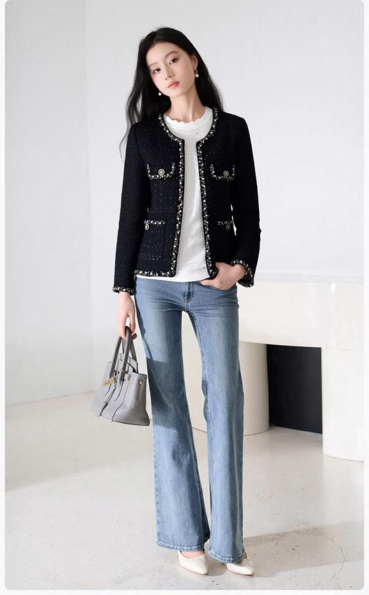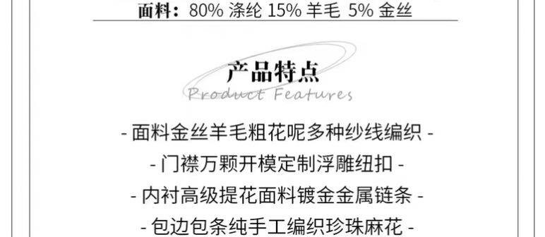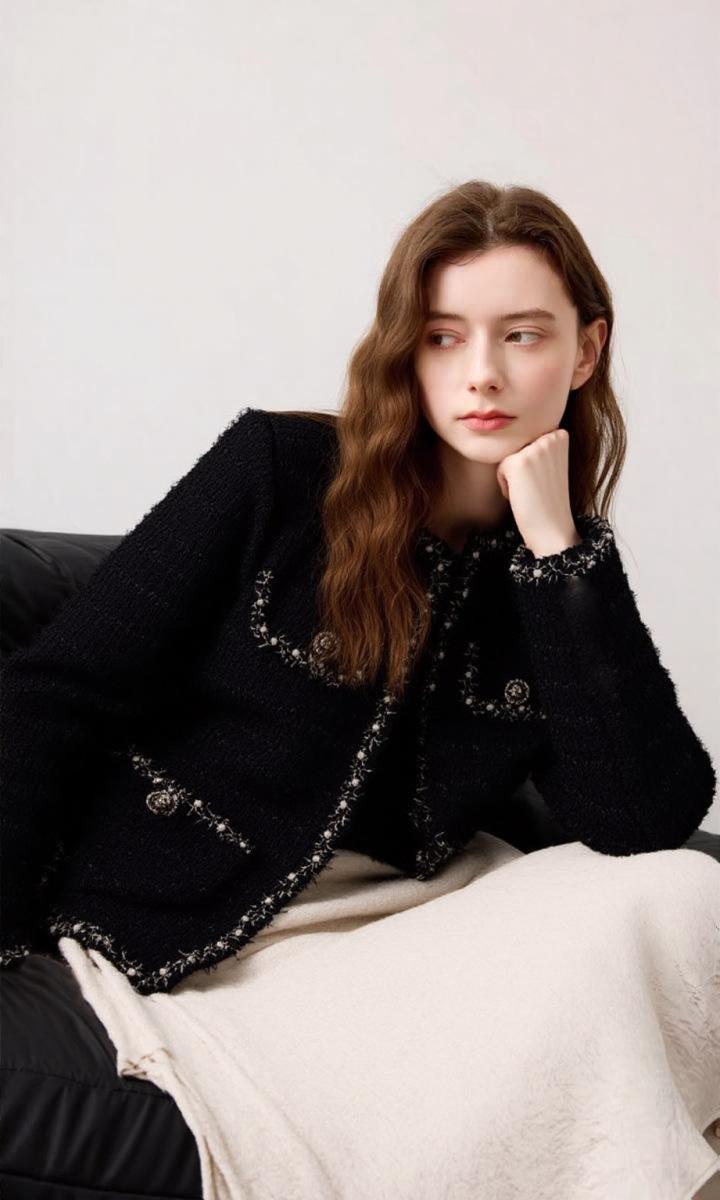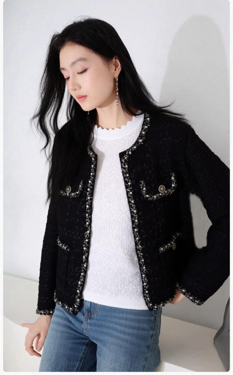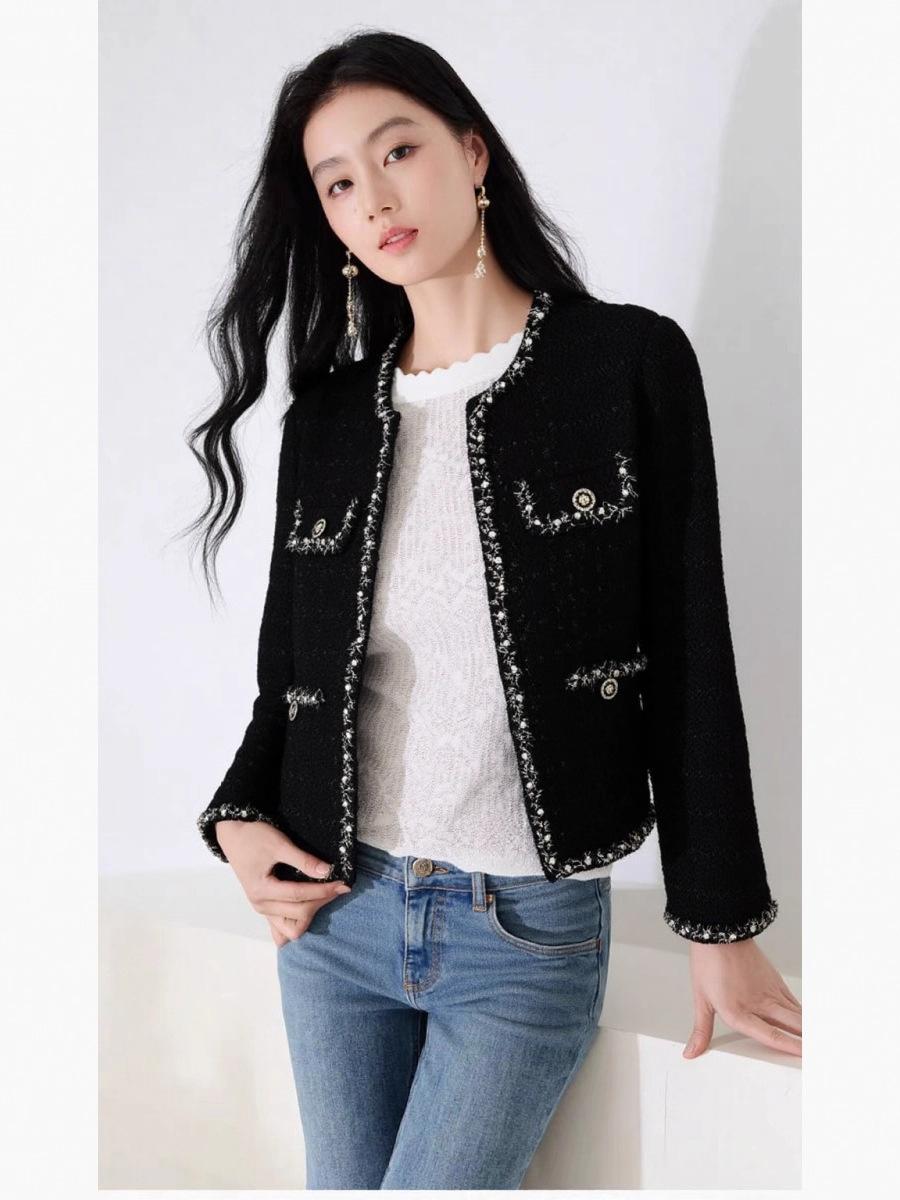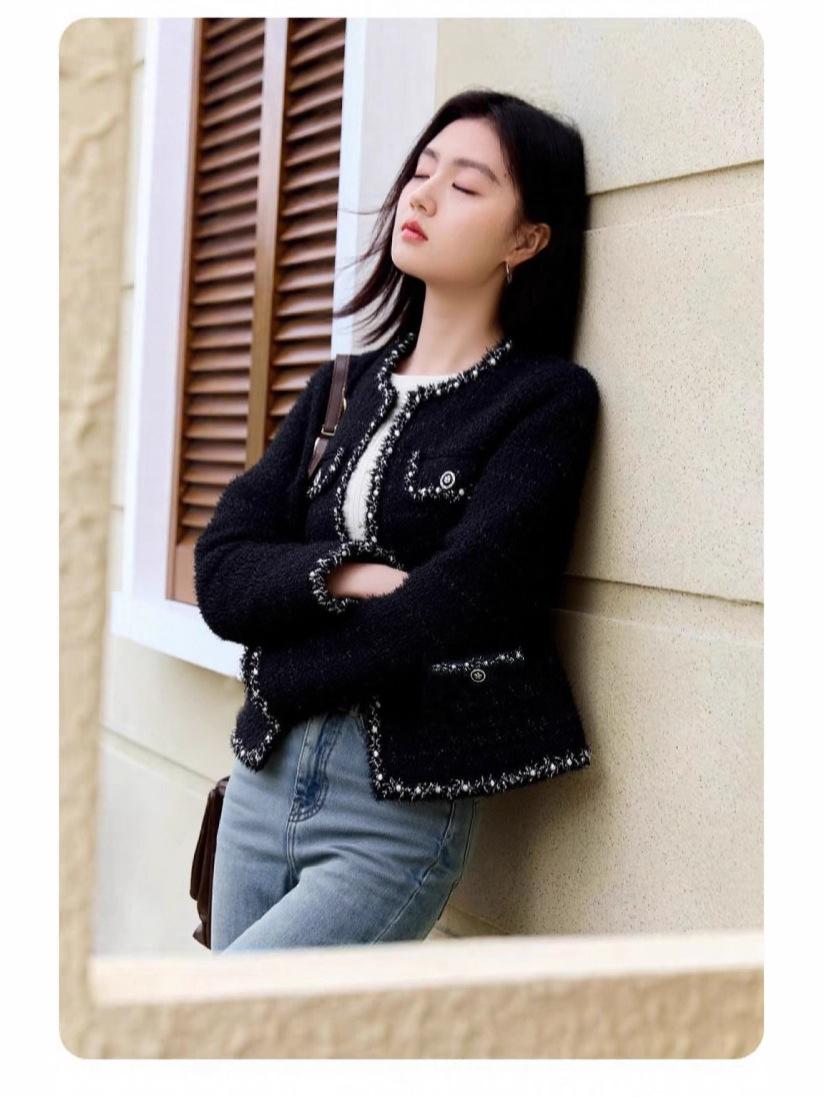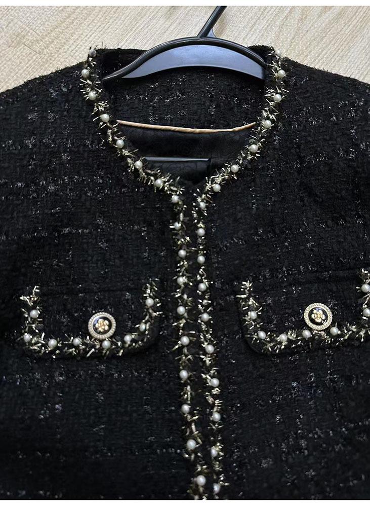 Marca Boutique 2025 Otoño/Invierno Nuevo Abrigo Corto de Tweed de Lana Lurex Estilo Pequeño Fragante