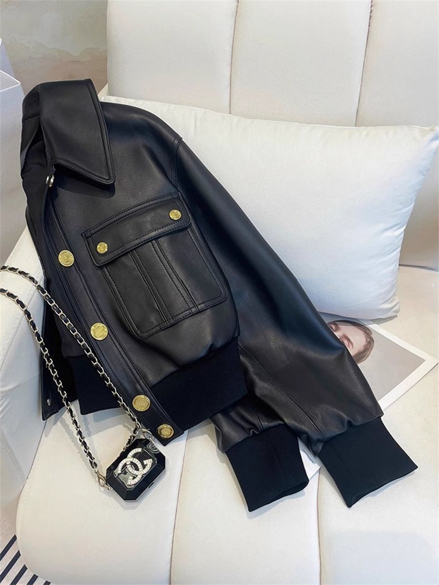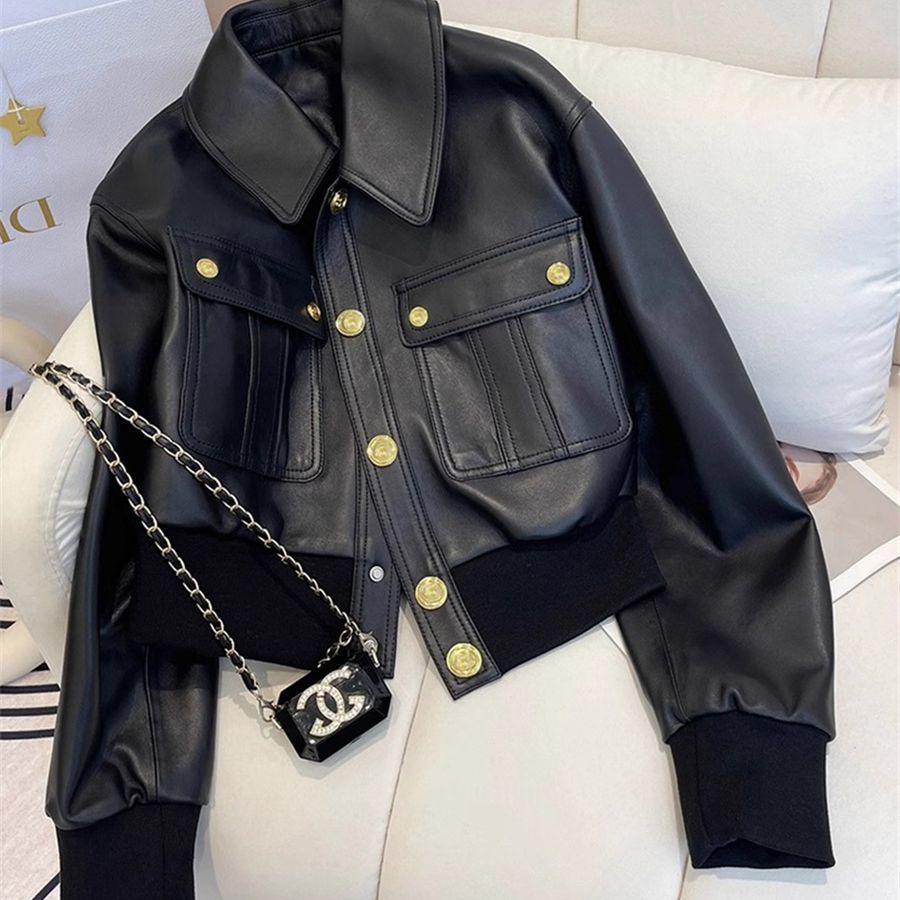 Sin chaqueta superior traje de motocicleta chaqueta de cuero pu negro solapa diseño estilo pequeña fragancia 2025 abrigo corto mujer primavera otoño spandex