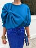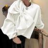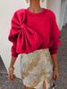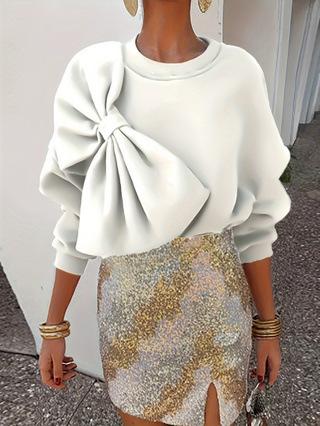Ropa de Mujer Europea y Americana Talla Exterior Transfronteriza Amazon Sudadera de Lazo de Manga Larga Casual Holgada de Cuello Redondo